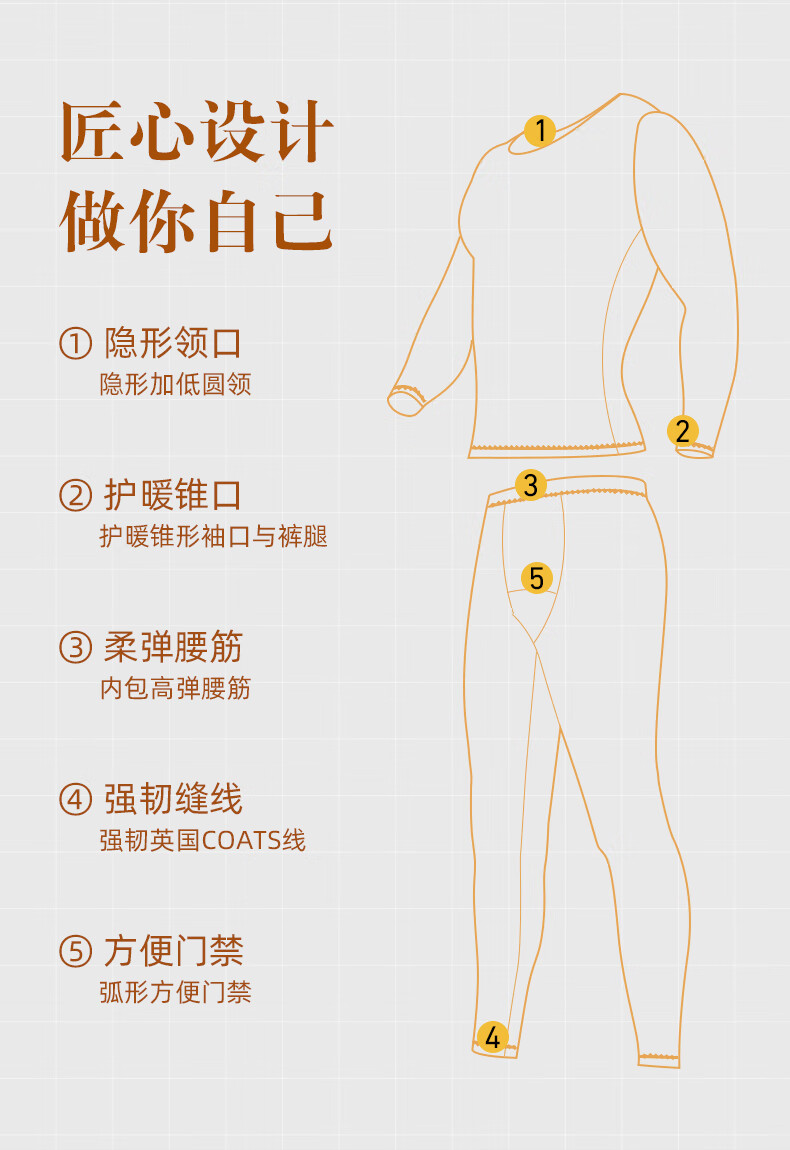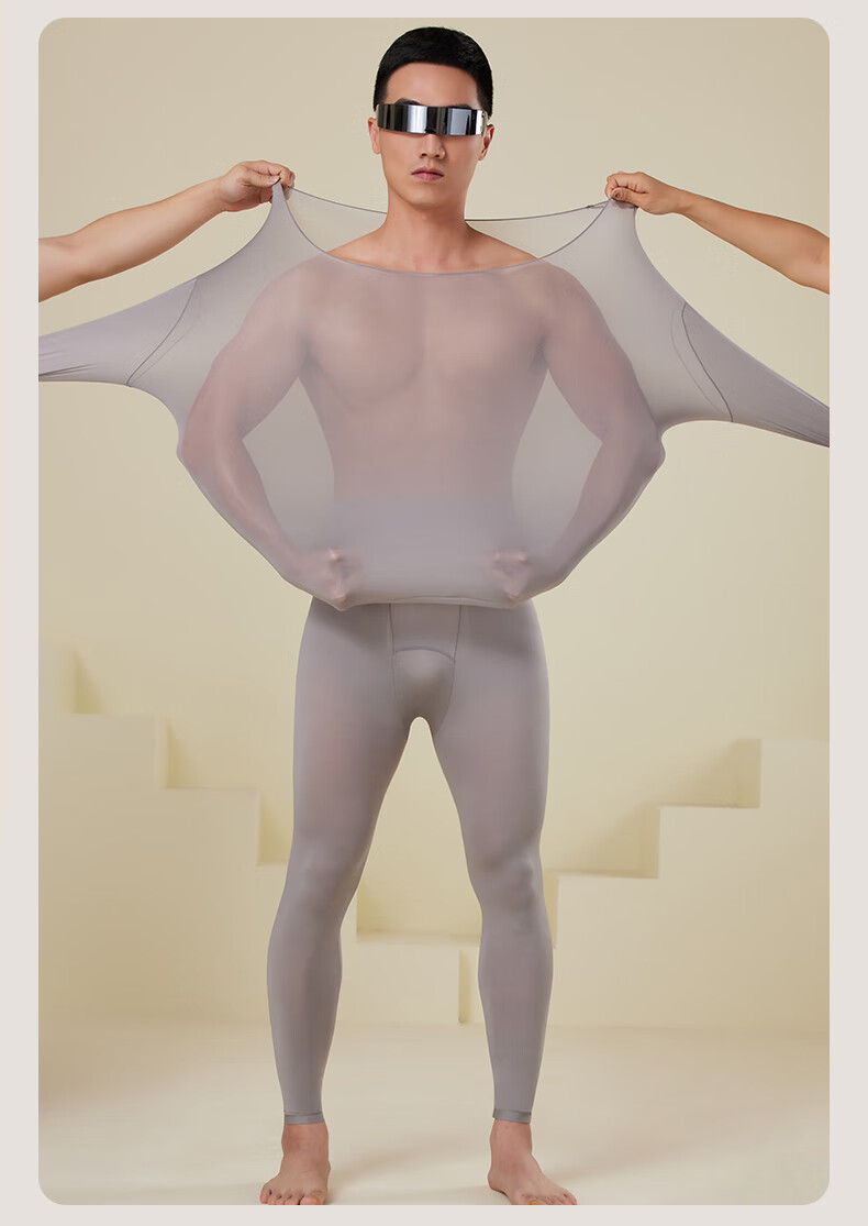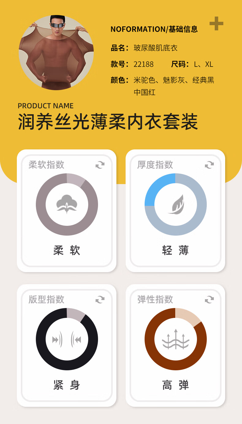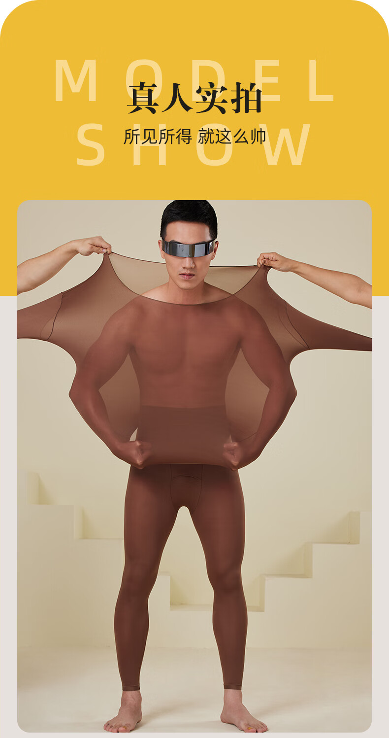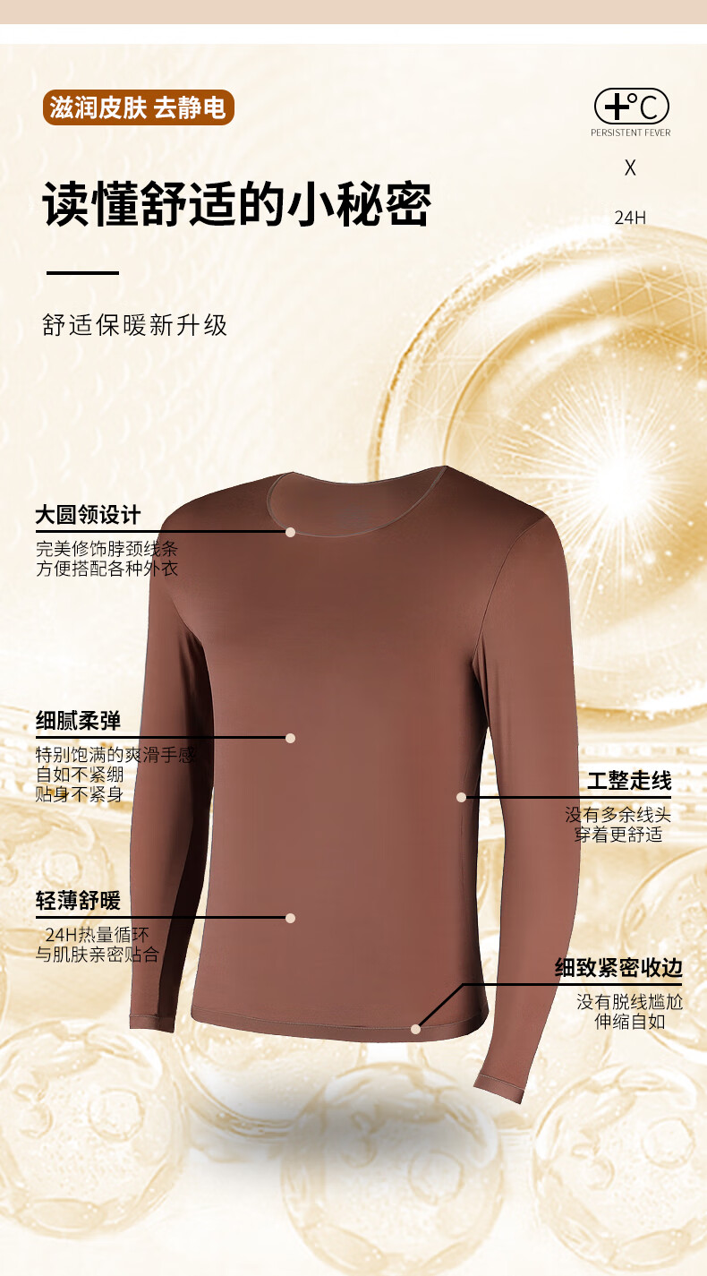 芙丹琪男士保暖套装美肤衣秋衣秋裤打底衫超轻薄高弹隐形面膜内衣养肤衣 米驼色 XL 建议150-200斤