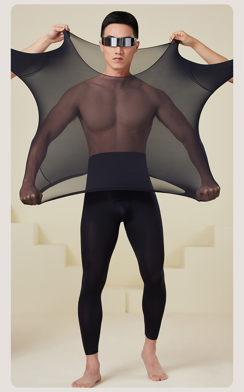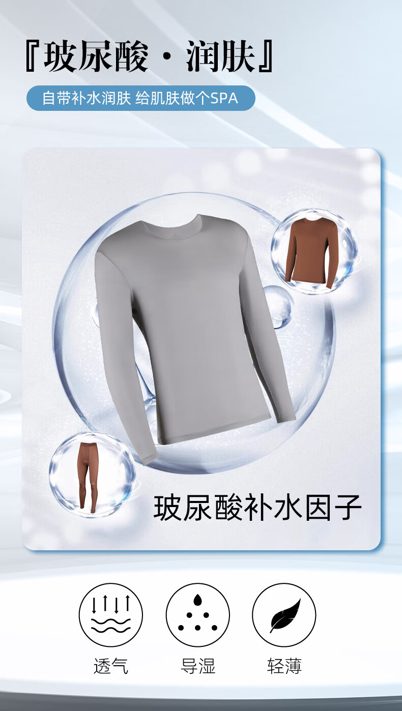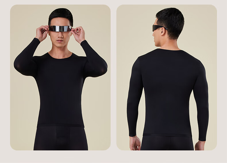 顶瓜瓜玻尿酸秋冬男士保暖内衣打底套装长袖透气薄款无痕裸感修身显瘦 经典黑(套装) XL