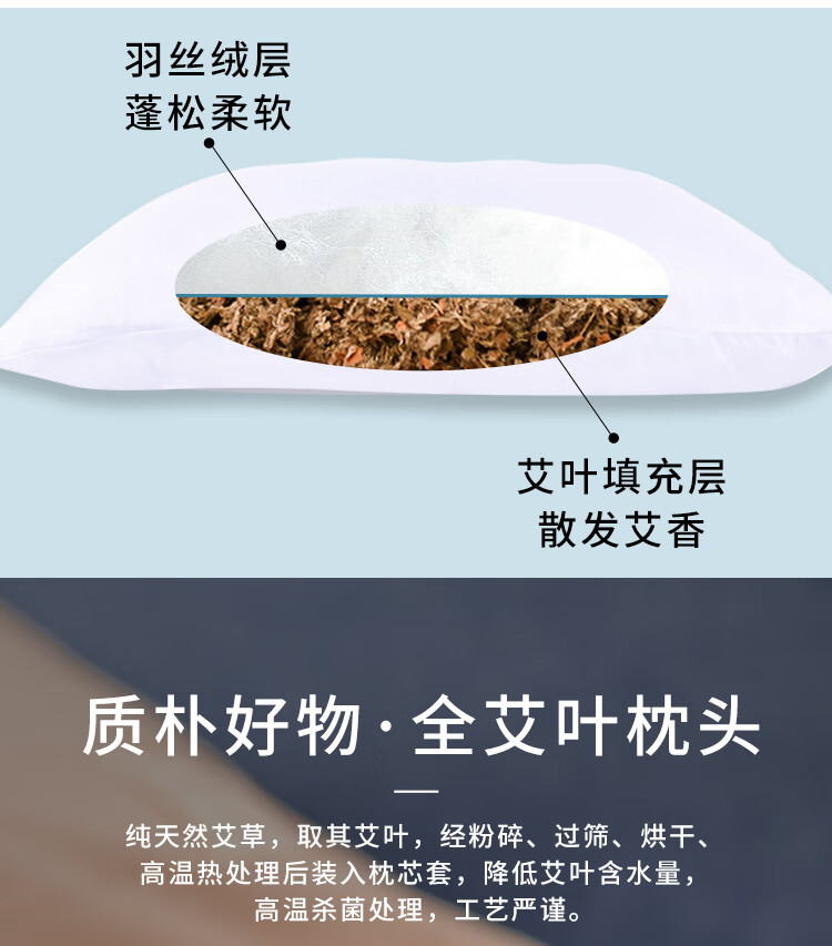 梦晚香艾草枕头送长辈中老年人深度睡眠实用睡觉礼物艾叶香草护颈中药枕 浅灰色- 单只 60cm*40cm (中号)