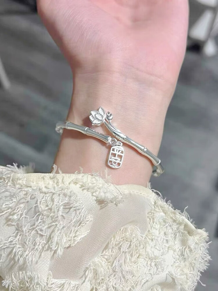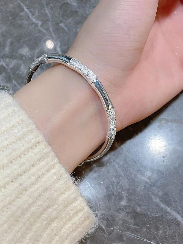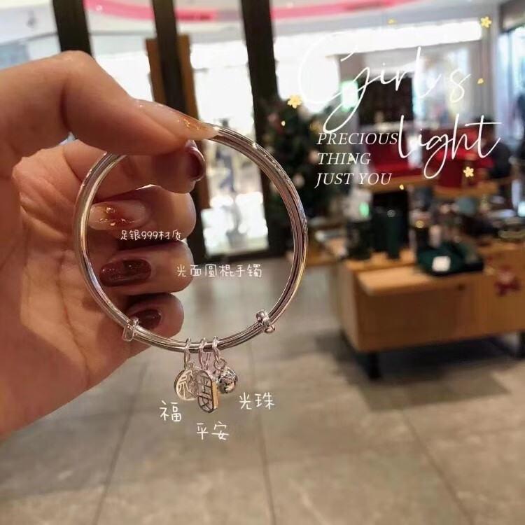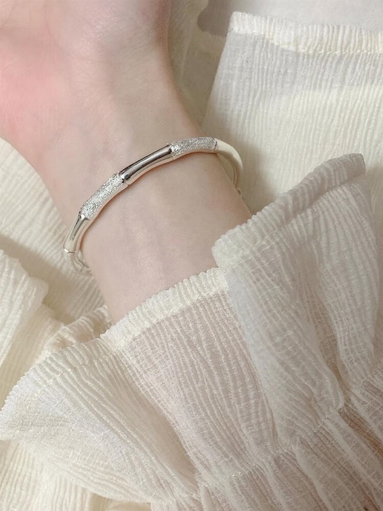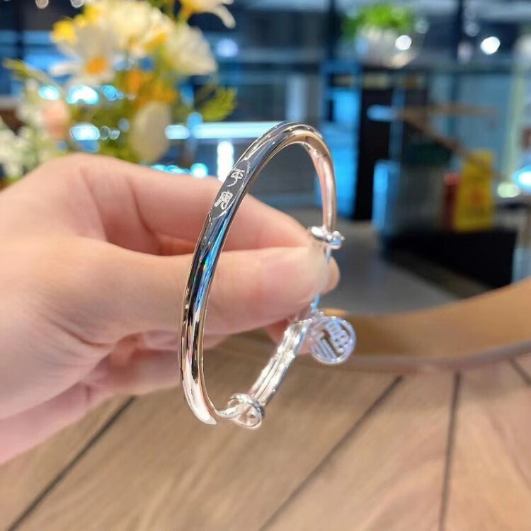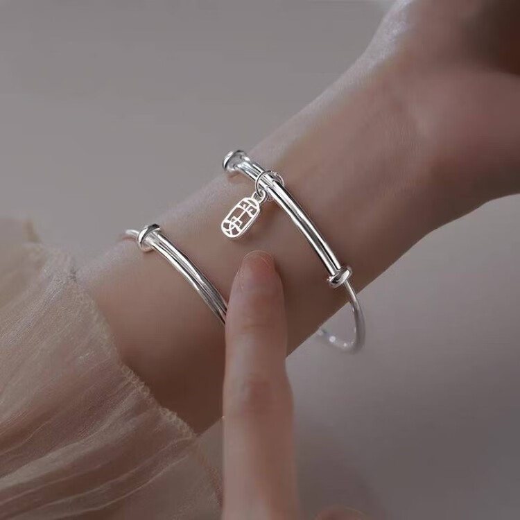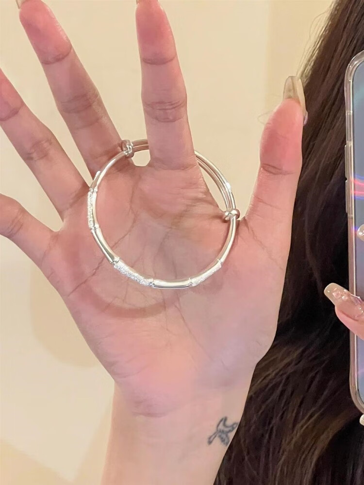 胖东来同款老人纯银手镯平安竹节女9999实心足银镯子手链送老婆女 25克 竹报平安 【附国检证书+礼