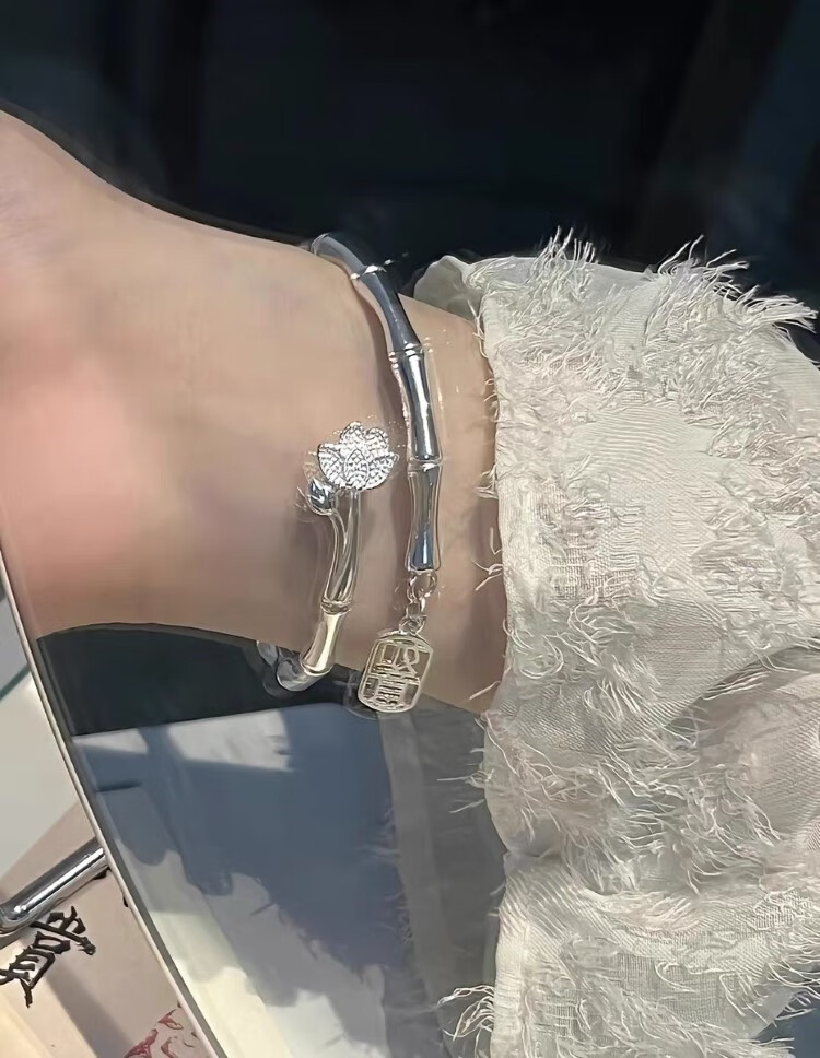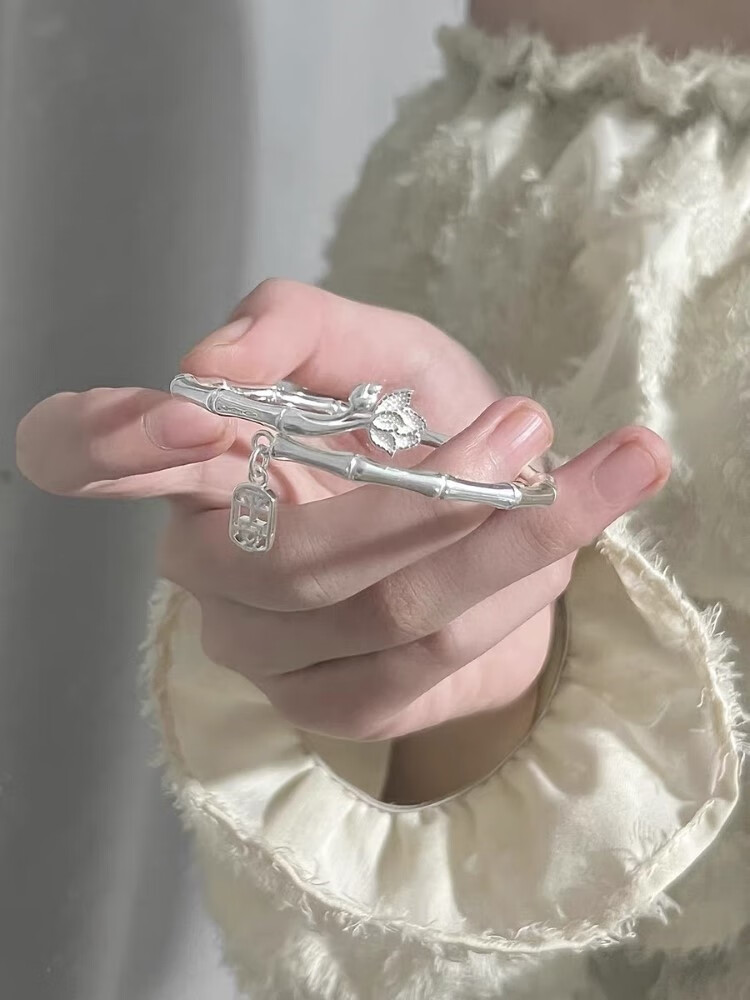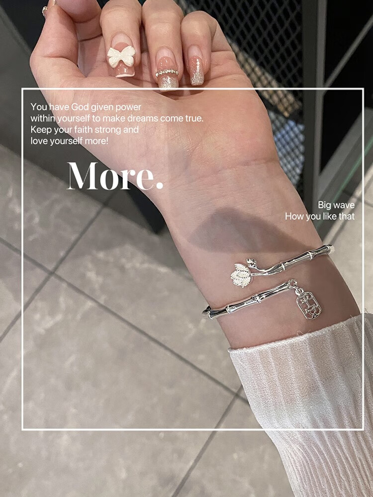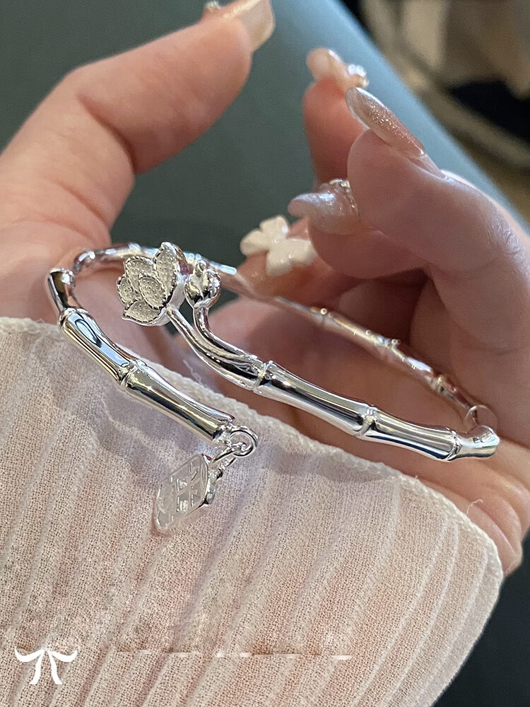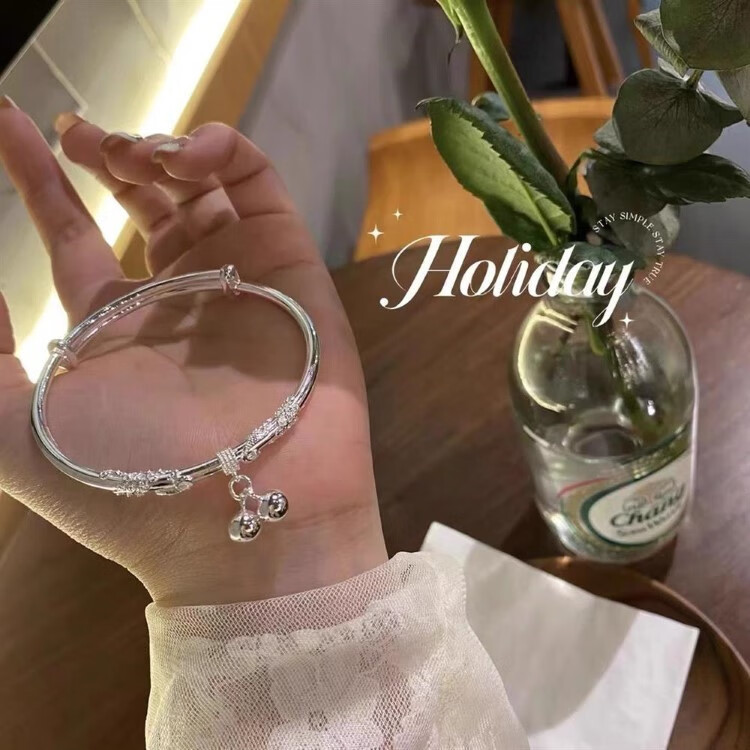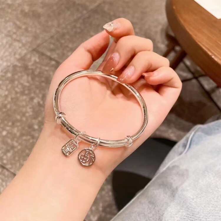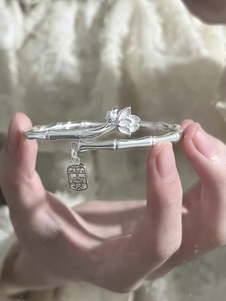 胖东来同款老人纯银手镯平安竹节女9999实心足银镯子手链送老婆女 25克 竹报平安 【附国检证书+礼