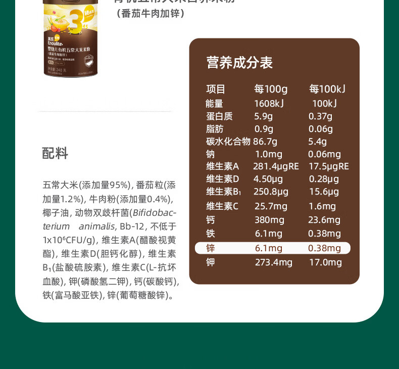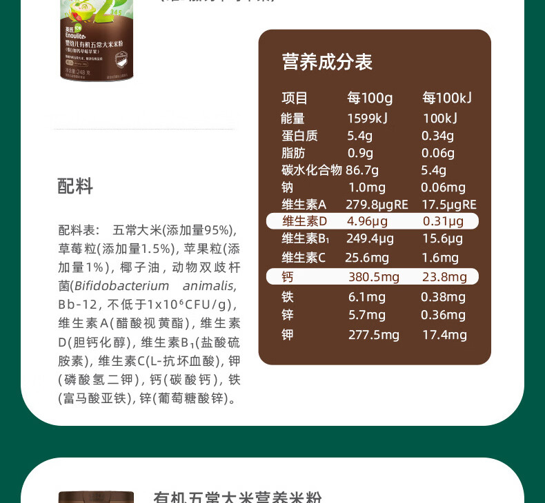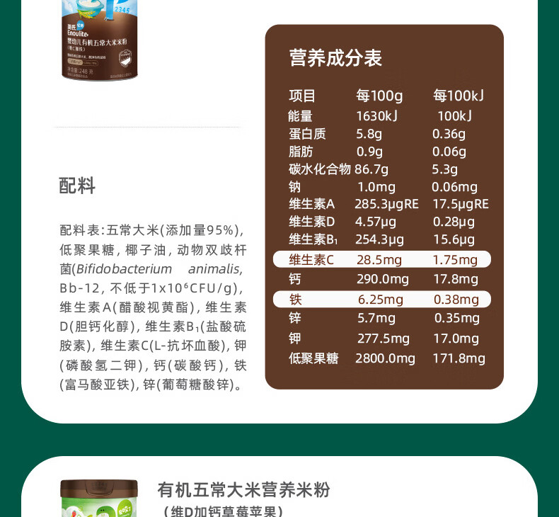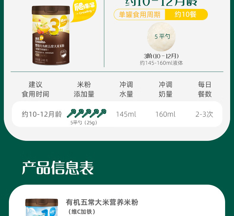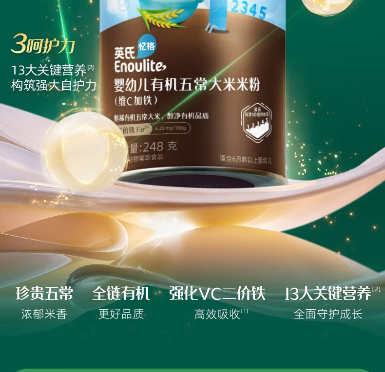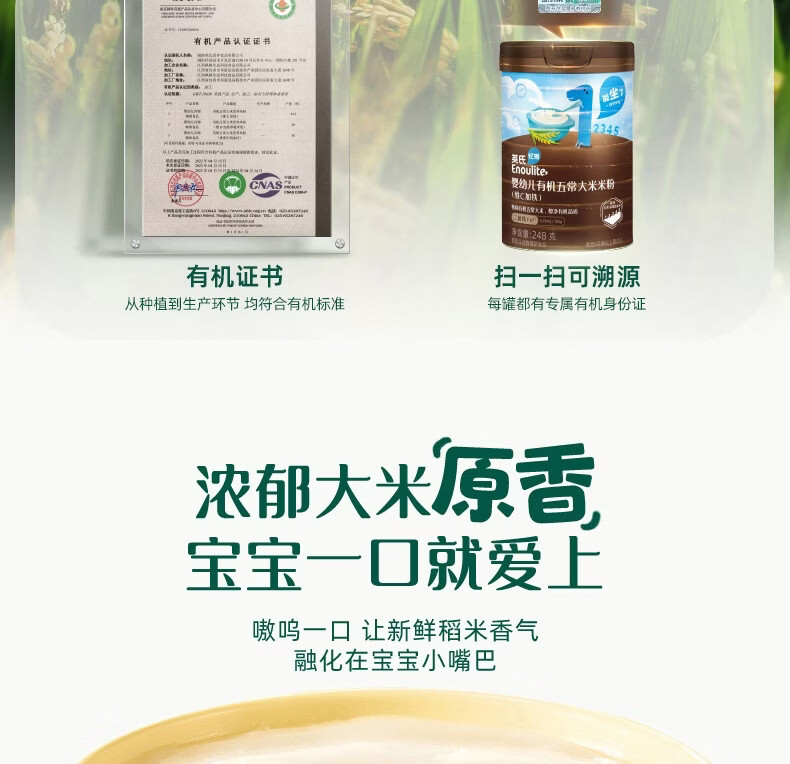 英氏婴幼儿有机米粉【主食组合】 宝宝辅食营养米糊 科学分阶喂养 【7月+】有机2阶米粉 248g*3罐