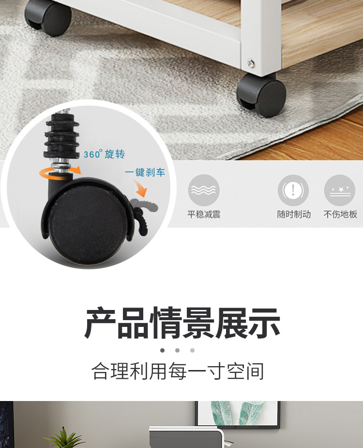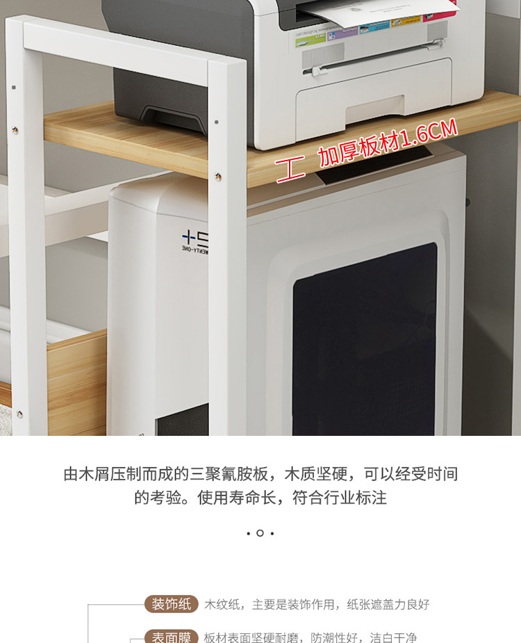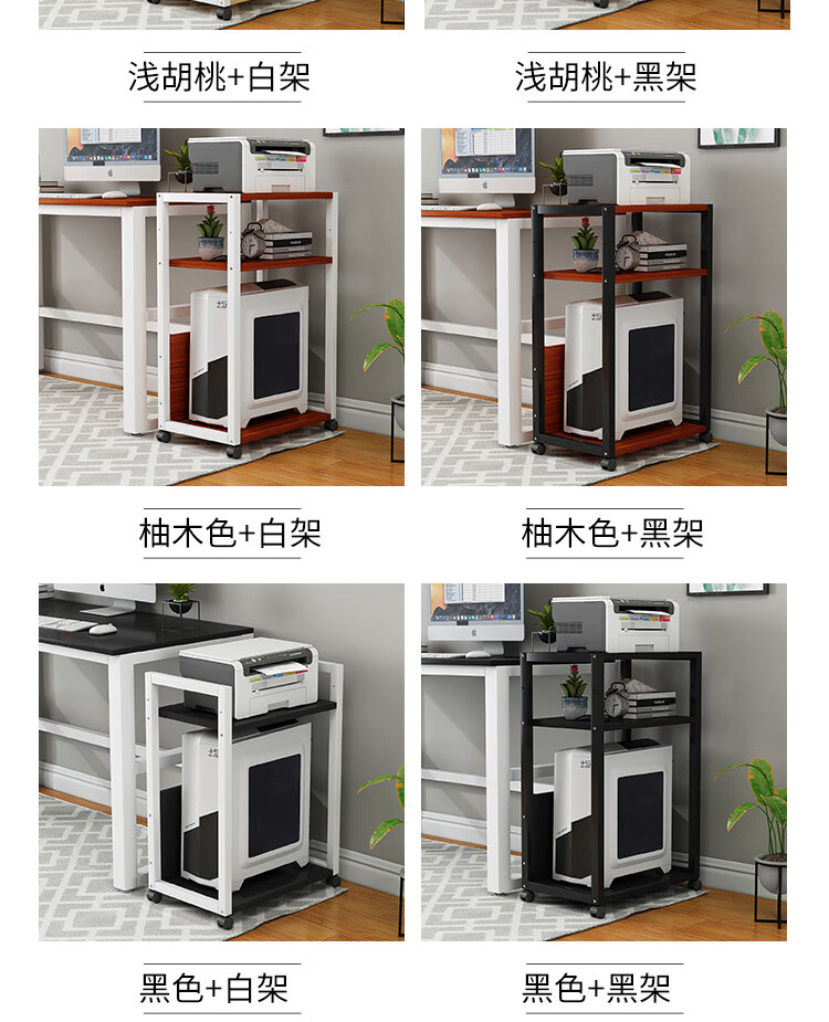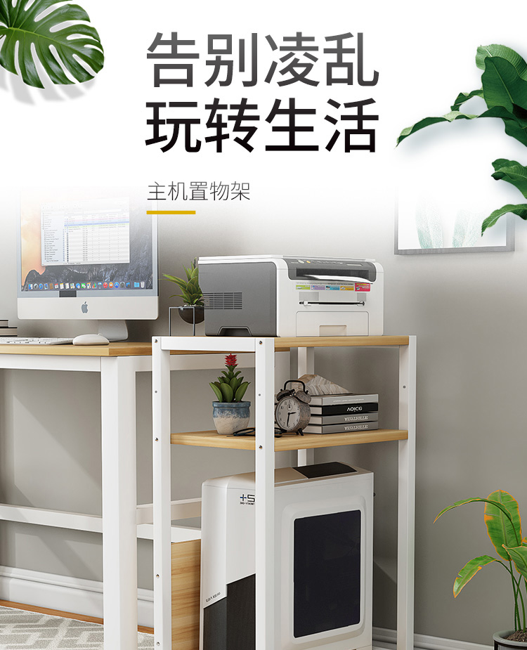 元良电脑主机托架双层 台式机箱放置架办公室置物架拖架可移动打印机落地架 A款【白架+暖白色】55*30*75