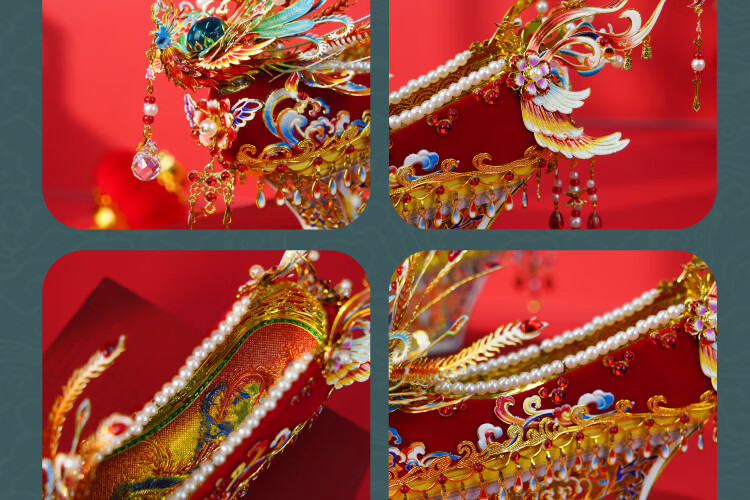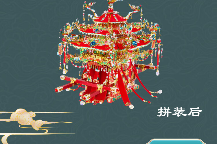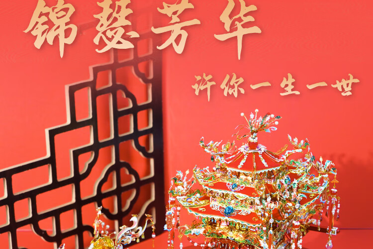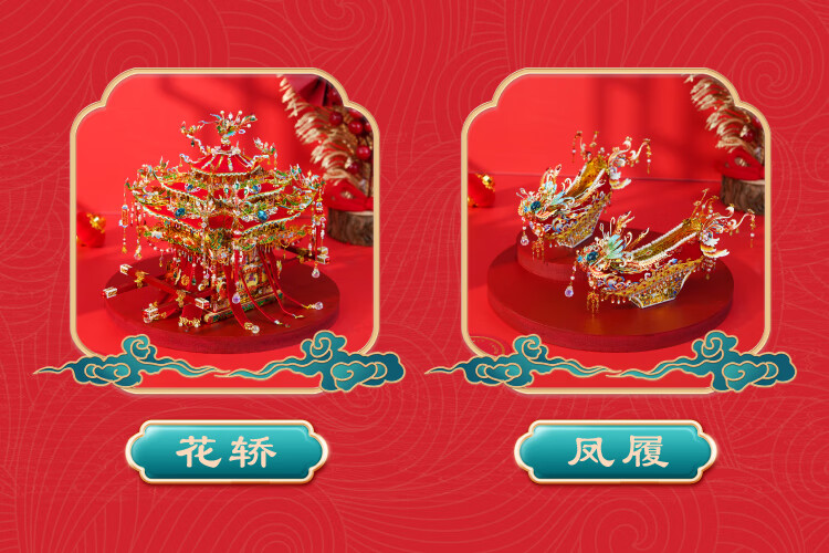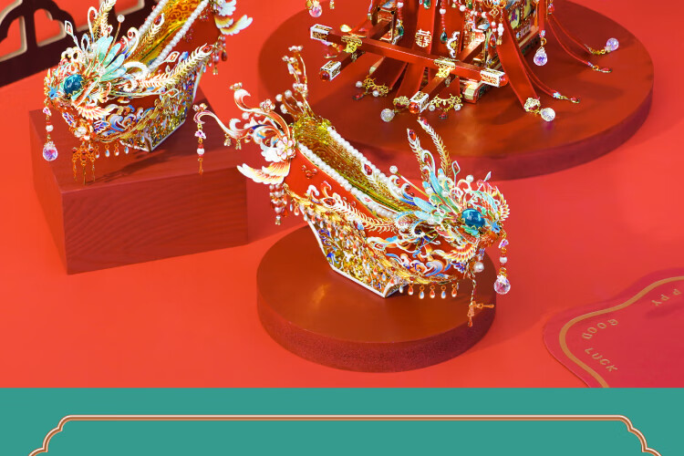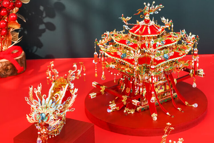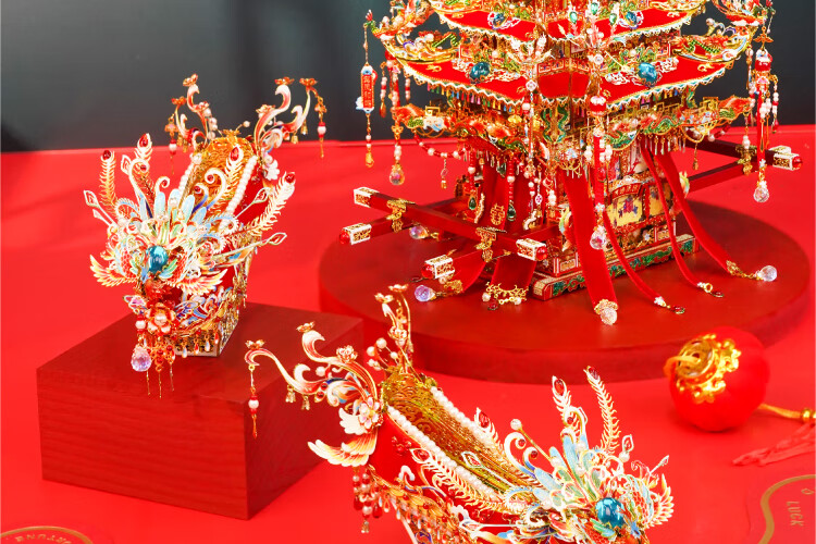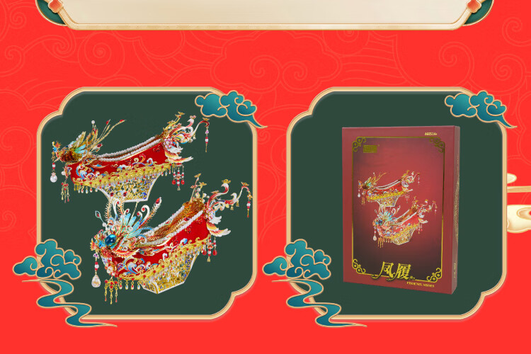 鋼達十里红妆凤冠喜灯3d立体金属拼图霞披花轿送闺蜜朋友结婚礼物 凤冠(带支架)