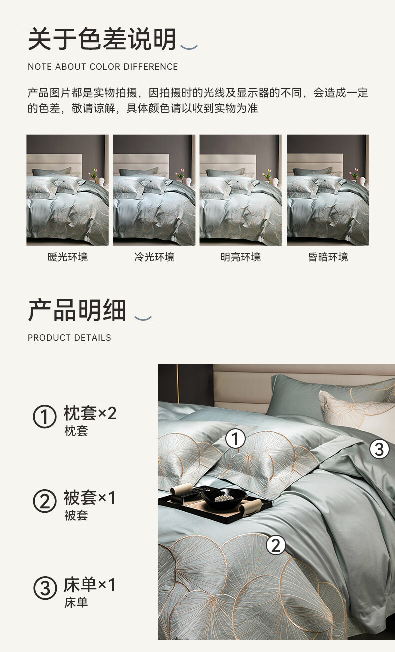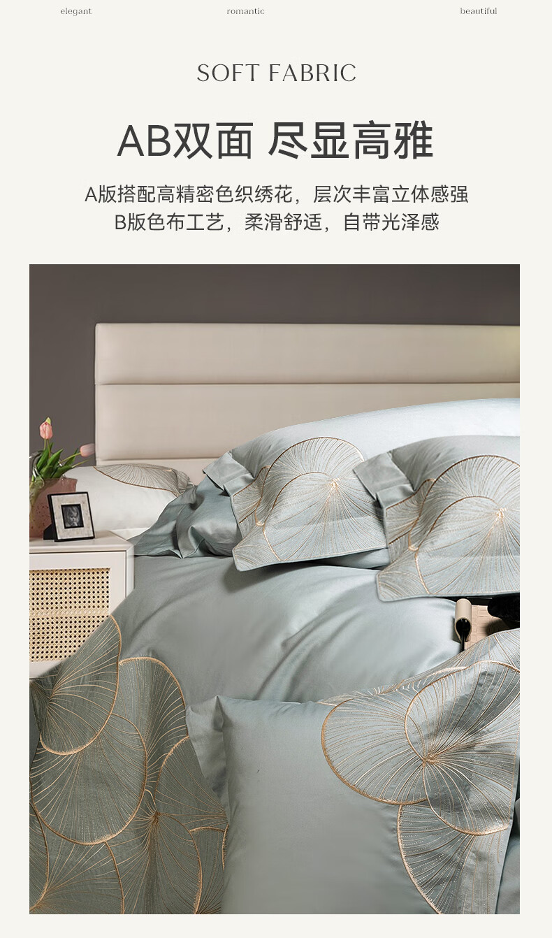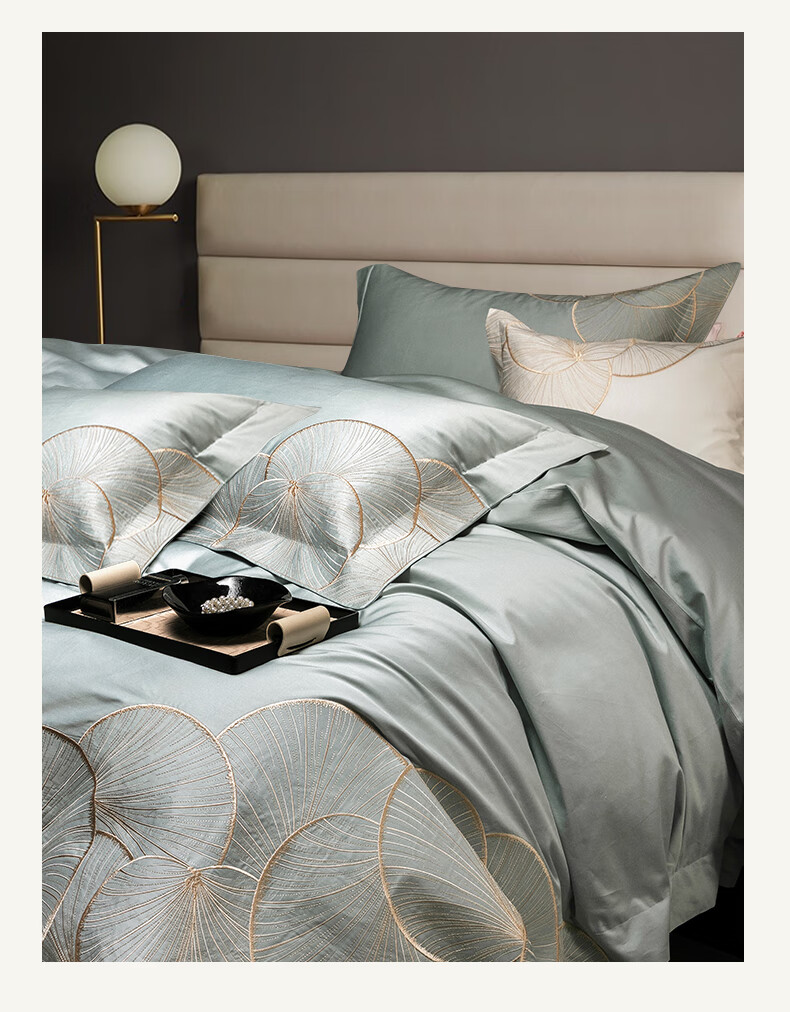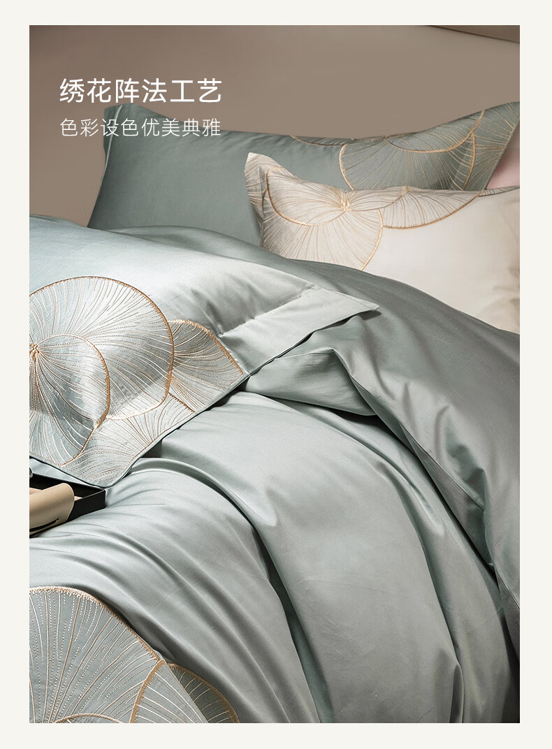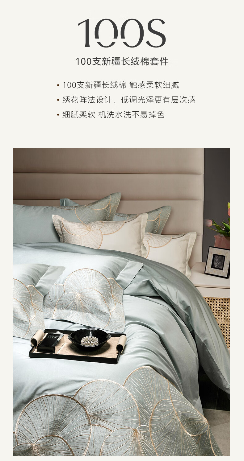 黛富妮100支匹马棉提花四件套纯棉长绒棉混纺高端宽边被套床上用品套件 匹马棉提花- 涟漪 1.8m四件套 床单款 (被套220*240cm)