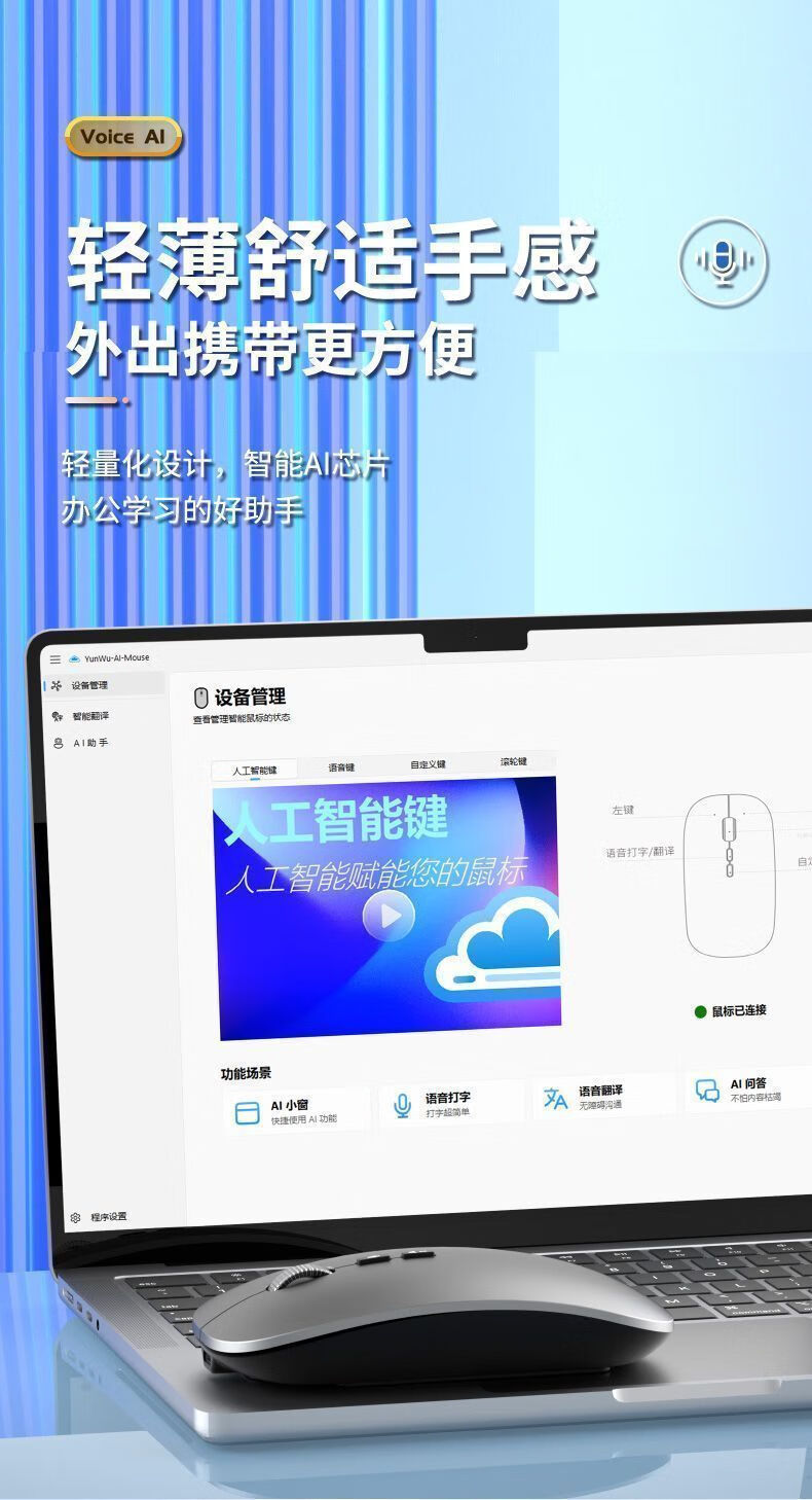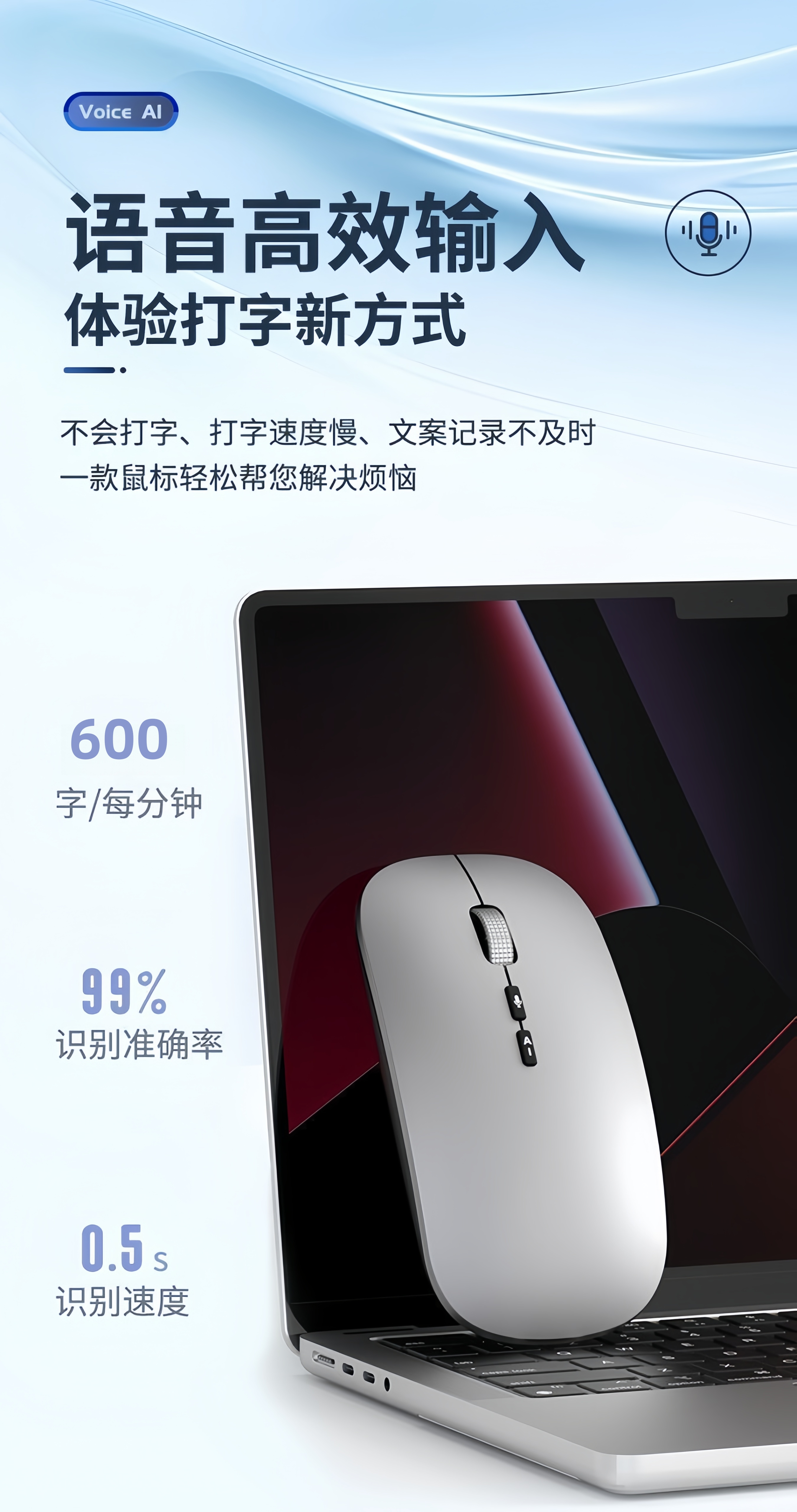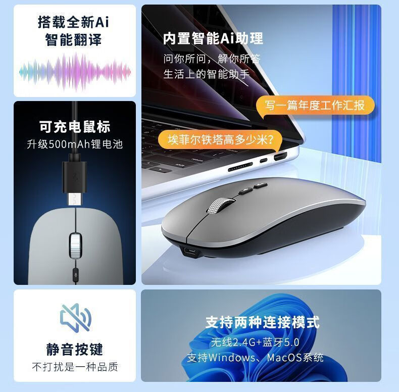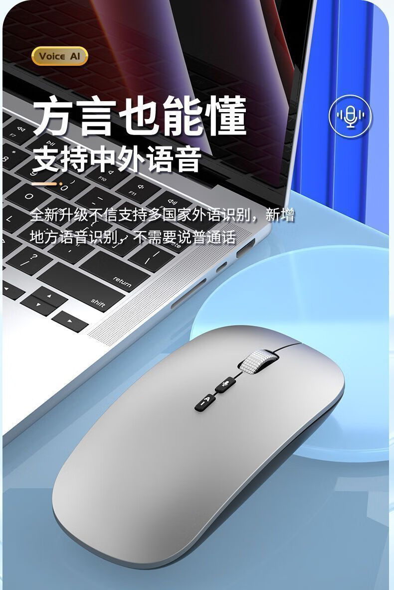 迪恪TOP榜热销/ AI智能语音无线鼠标2.4G+蓝牙+有线+声控打字+翻译+写作PPT 纯净白-语音+会议记录+方言+PPT+搜索 专业版:1600字/分钟(99%识别率)赠送鼠标垫