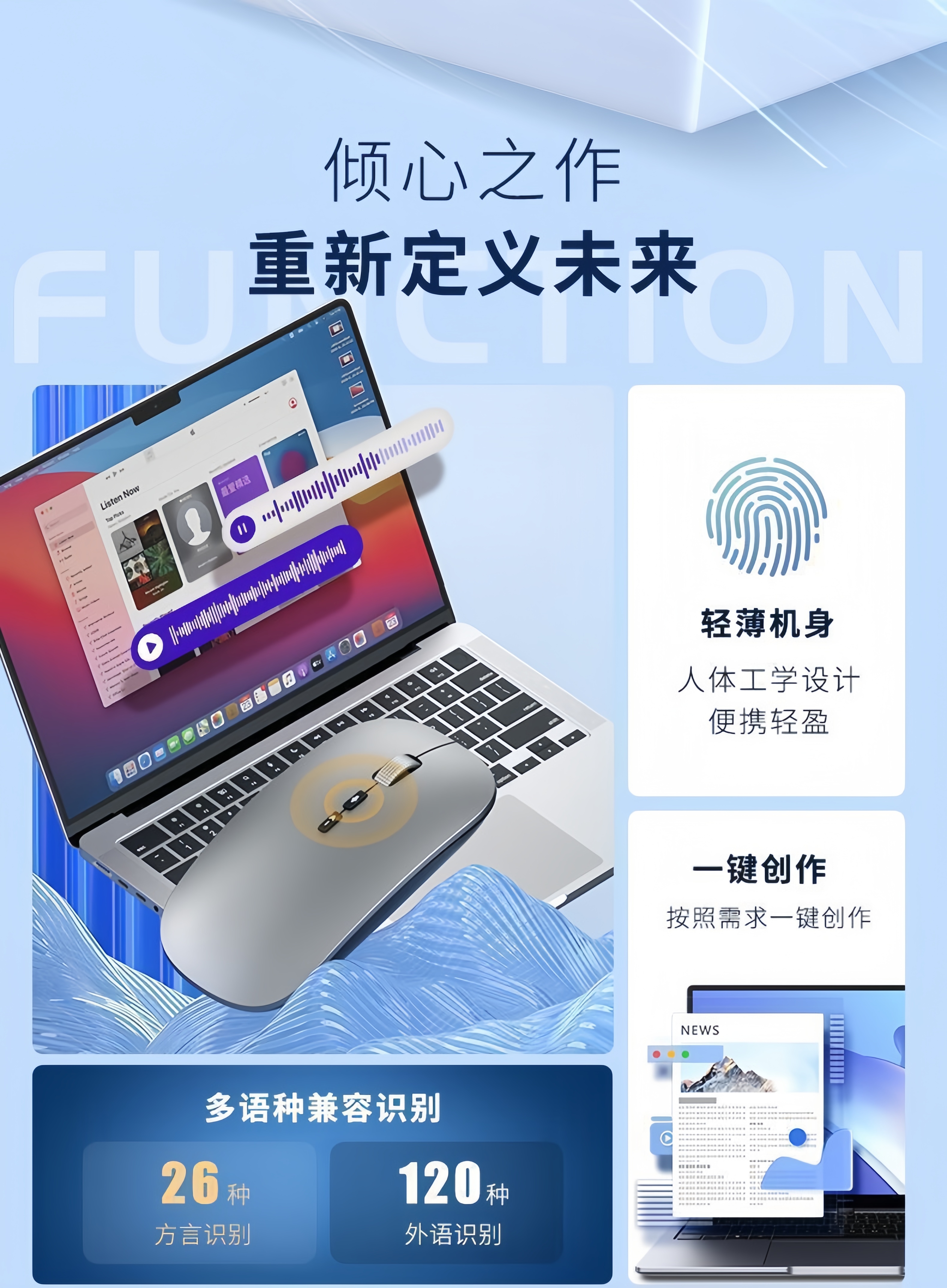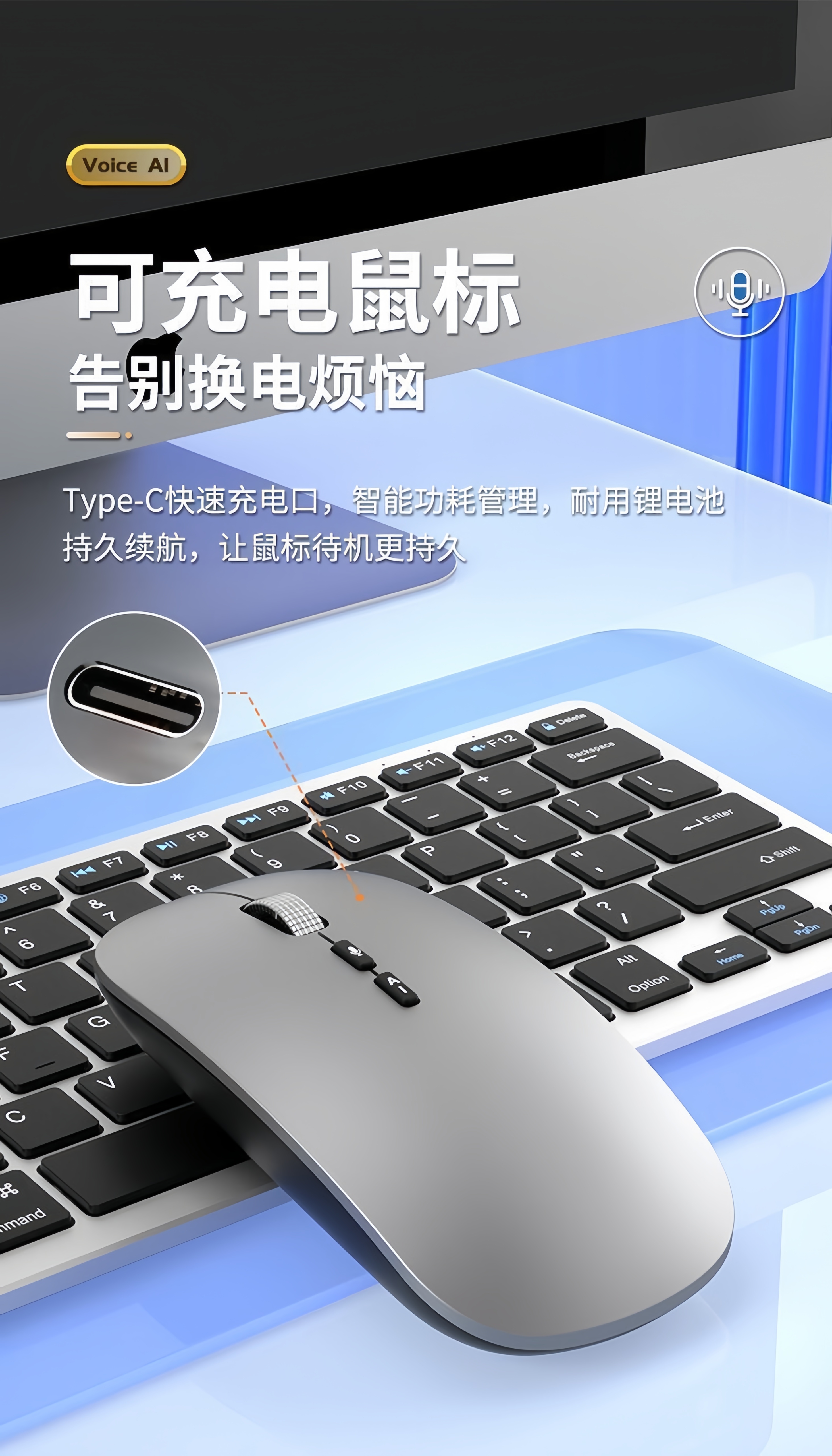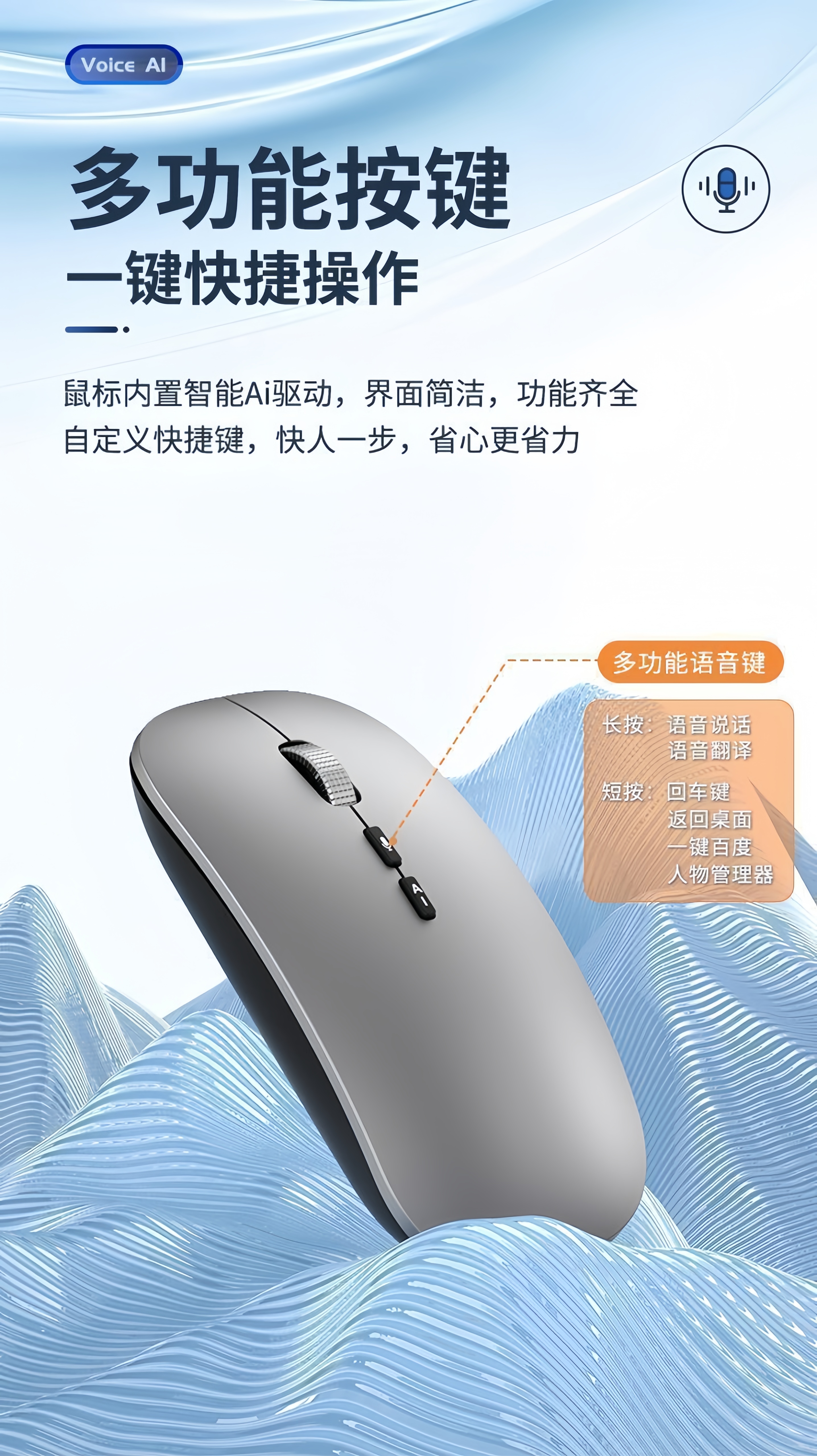 迪恪TOP榜热销/ AI智能语音无线鼠标2.4G+蓝牙+有线+声控打字+翻译+写作PPT 纯净白-语音+会议记录+方言+PPT+搜索 专业版:1600字/分钟(99%识别率)赠送鼠标垫