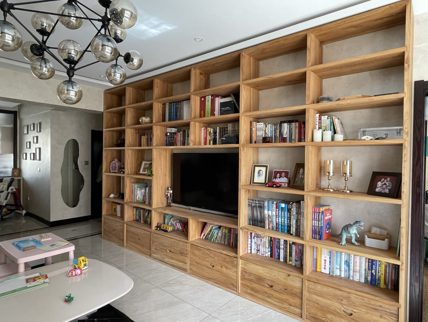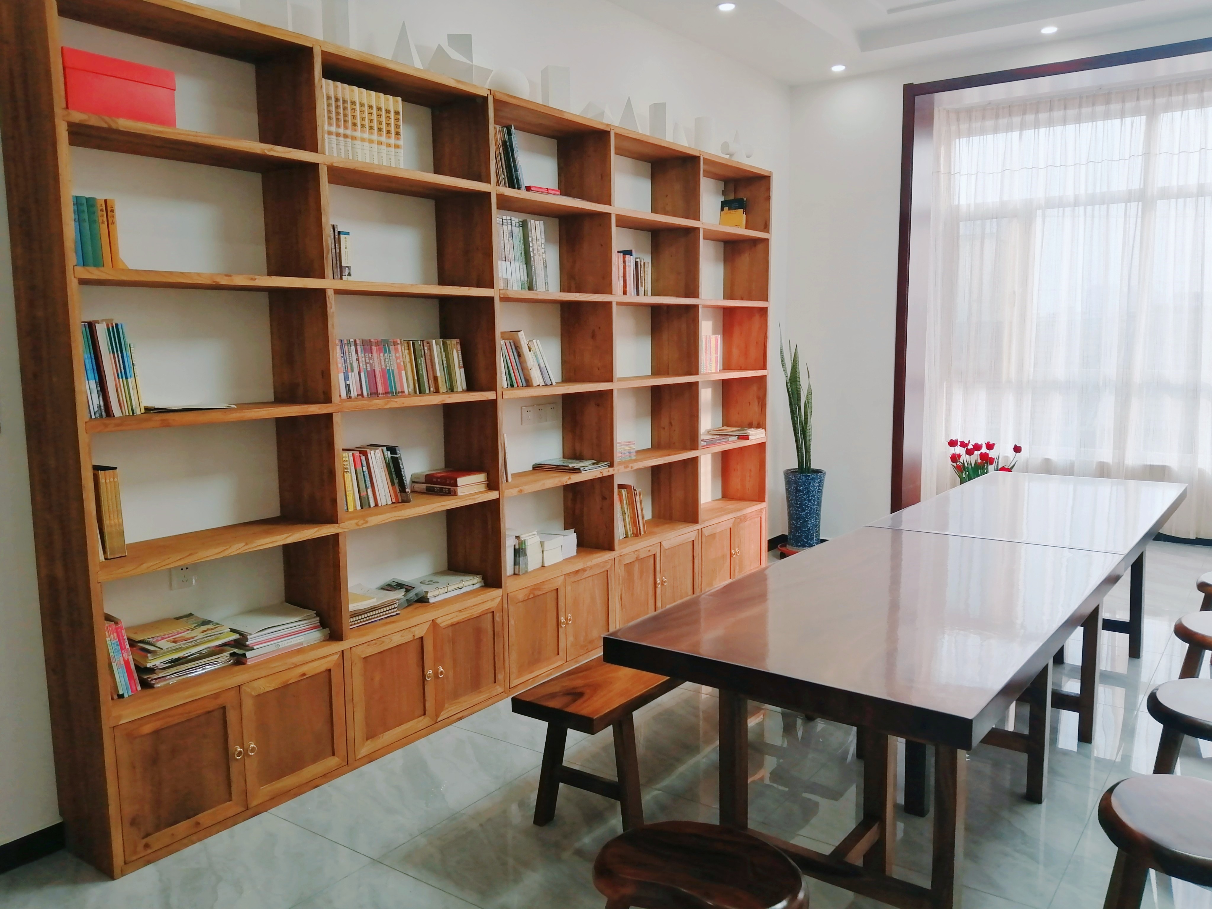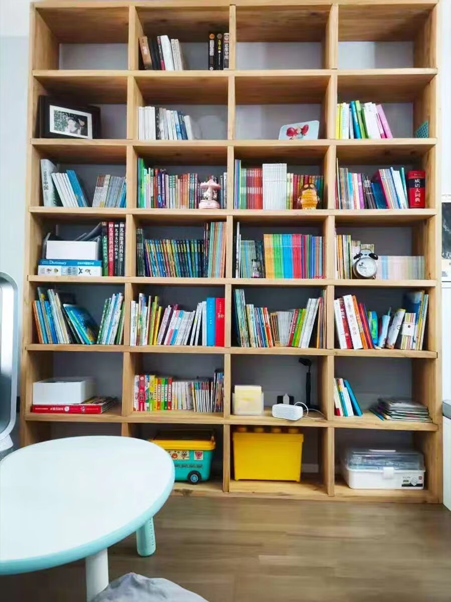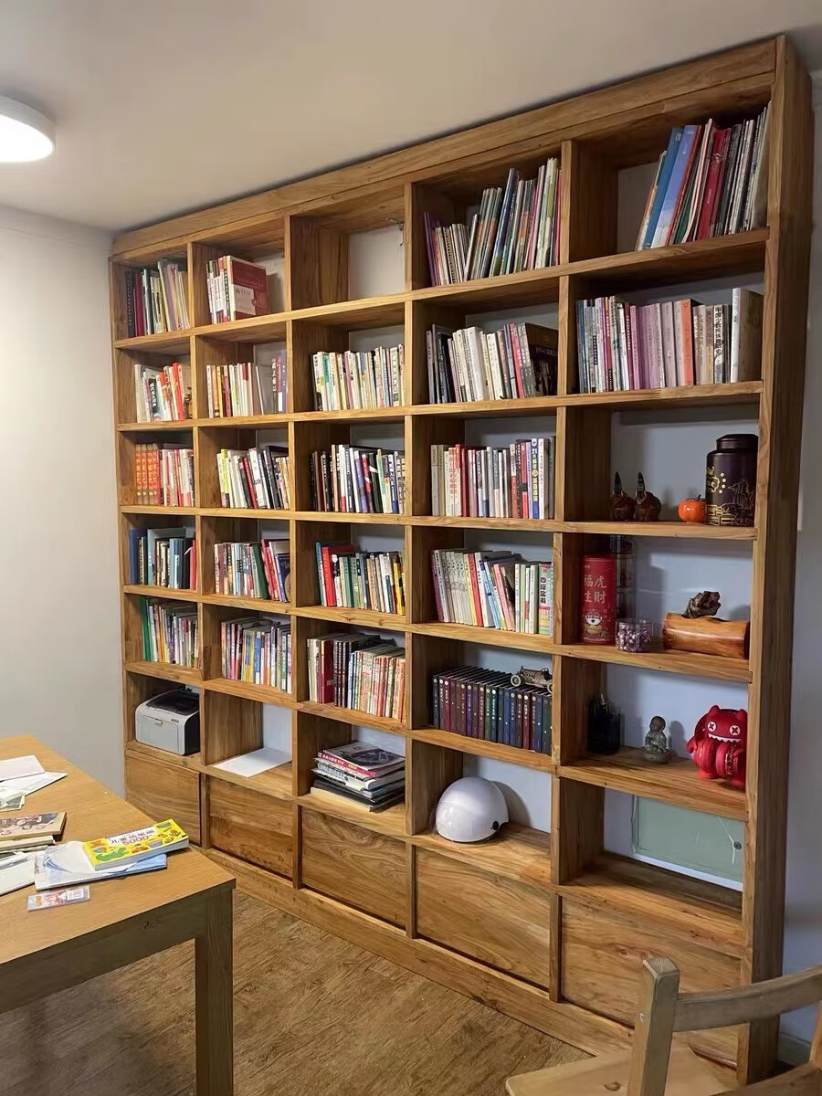 定制老榆木书架 实木置物架 原木落地收纳书柜隔断整墙满墙格子架 3cm厚老榆木板每平定制