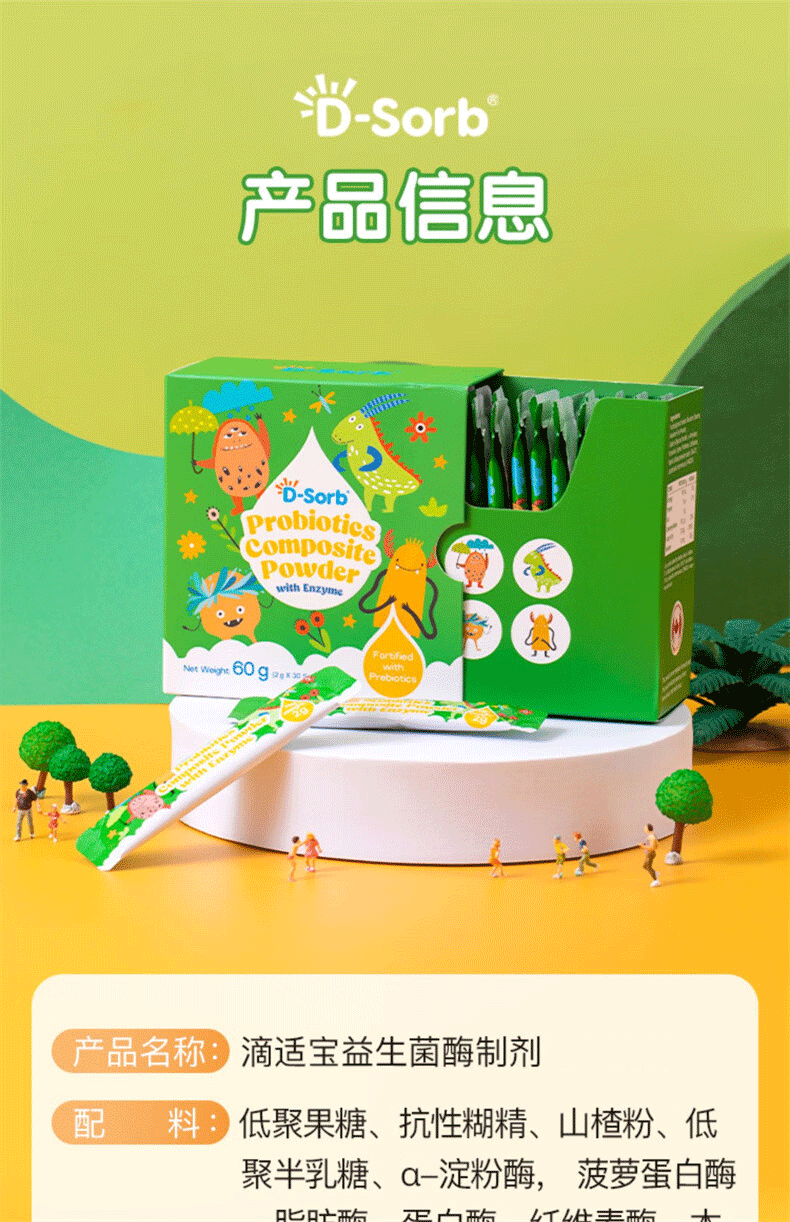 D-Sorb滴适宝多种复合消化酶+双益生菌+双益生元 益生菌酶制剂 60g(2gx30袋)