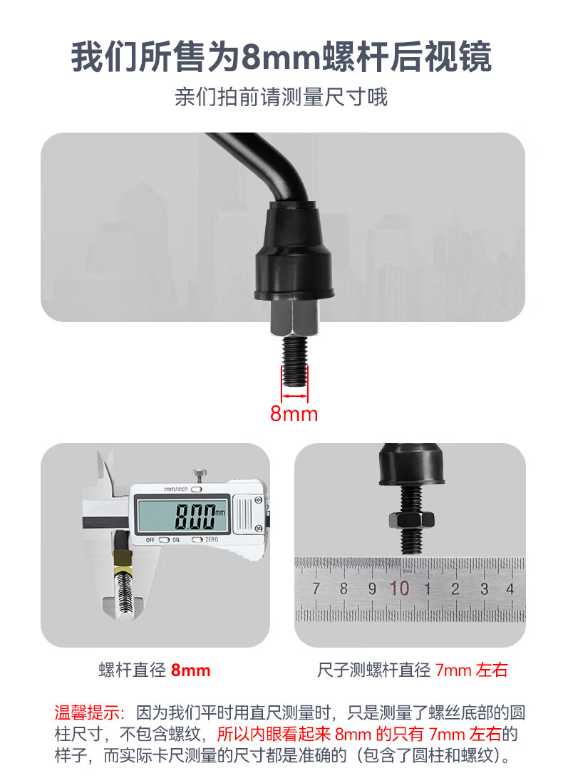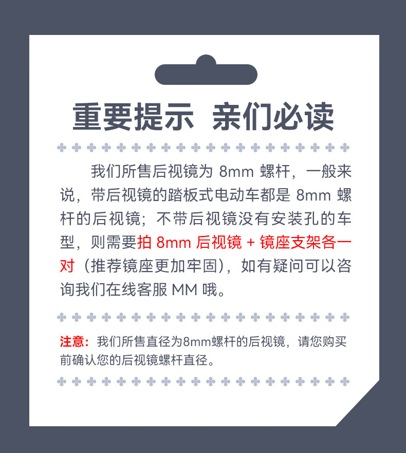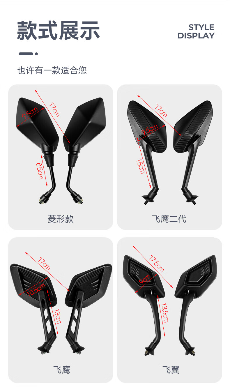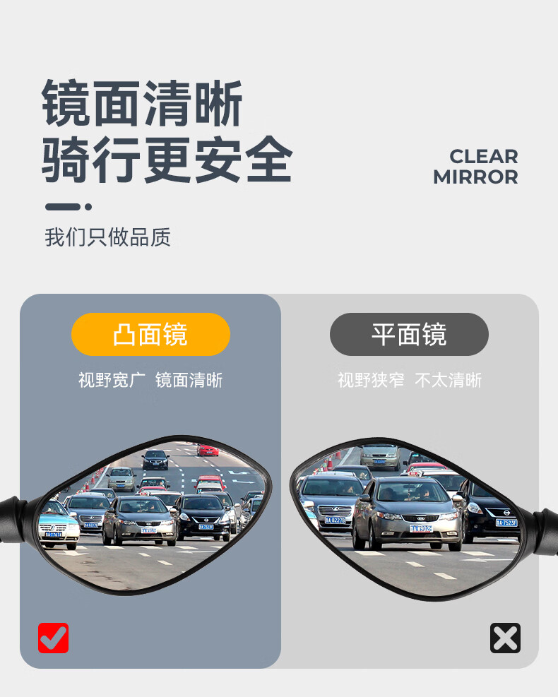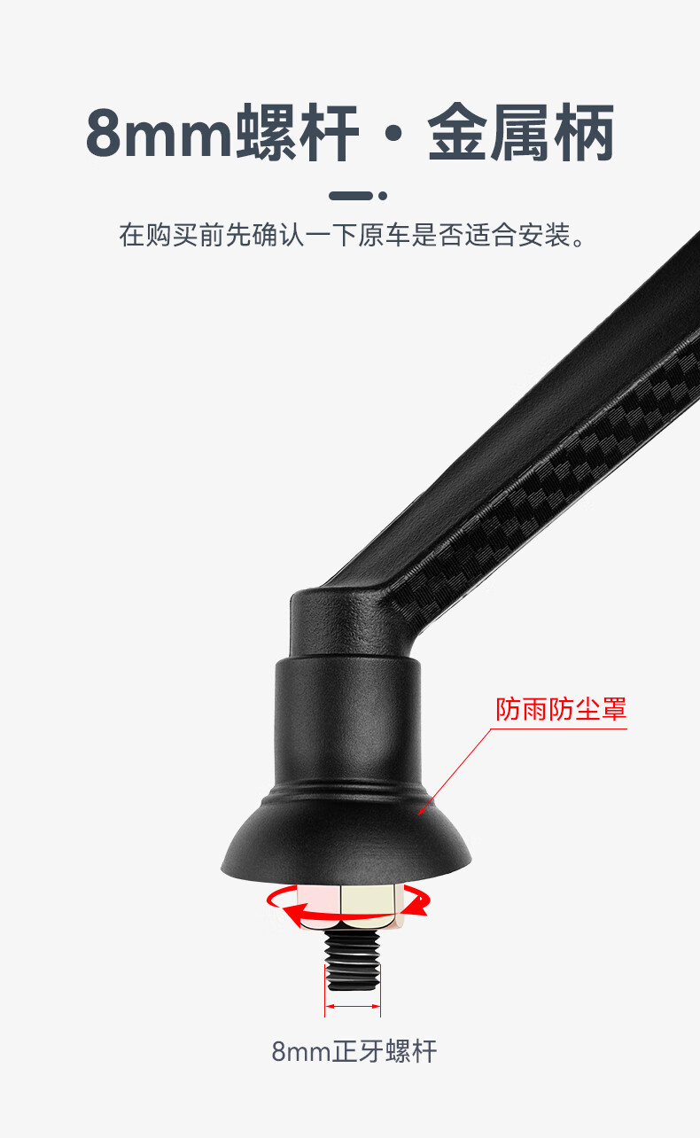 酷改(Coolchange)电动车后视镜反光镜通用电瓶三轮摩托车倒后镜倒车镜小圆镜子改装 飞鹰款凸面镜8mm+配套镜座一对