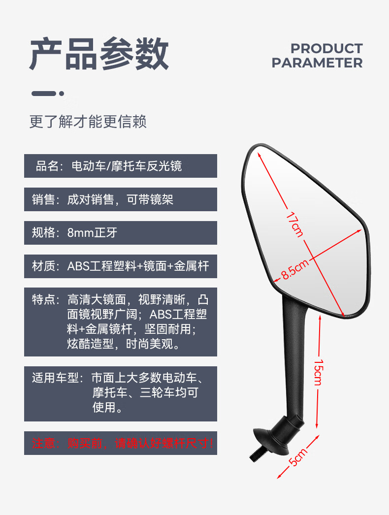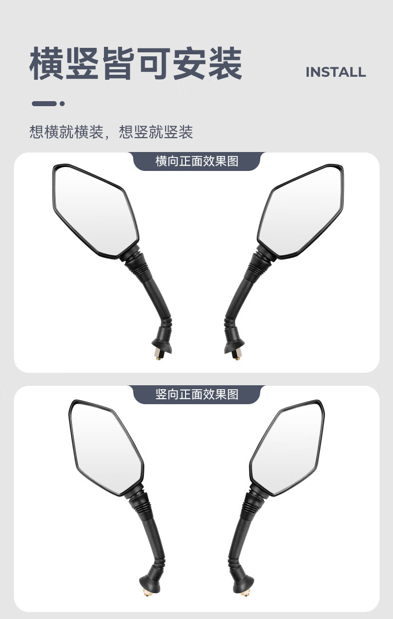 酷改(Coolchange)电动车后视镜反光镜通用电瓶三轮摩托车倒后镜倒车镜小圆镜子改装 菱形款凸面镜8mm+配套镜座一对