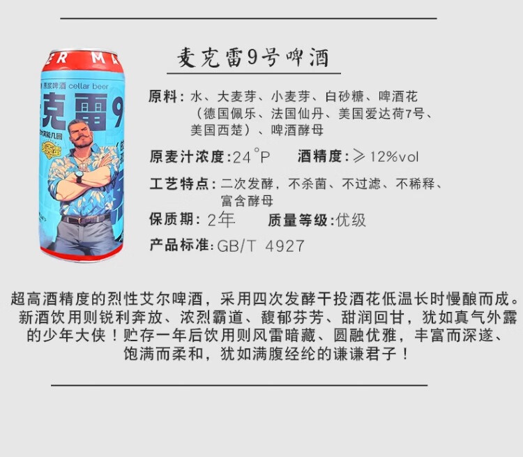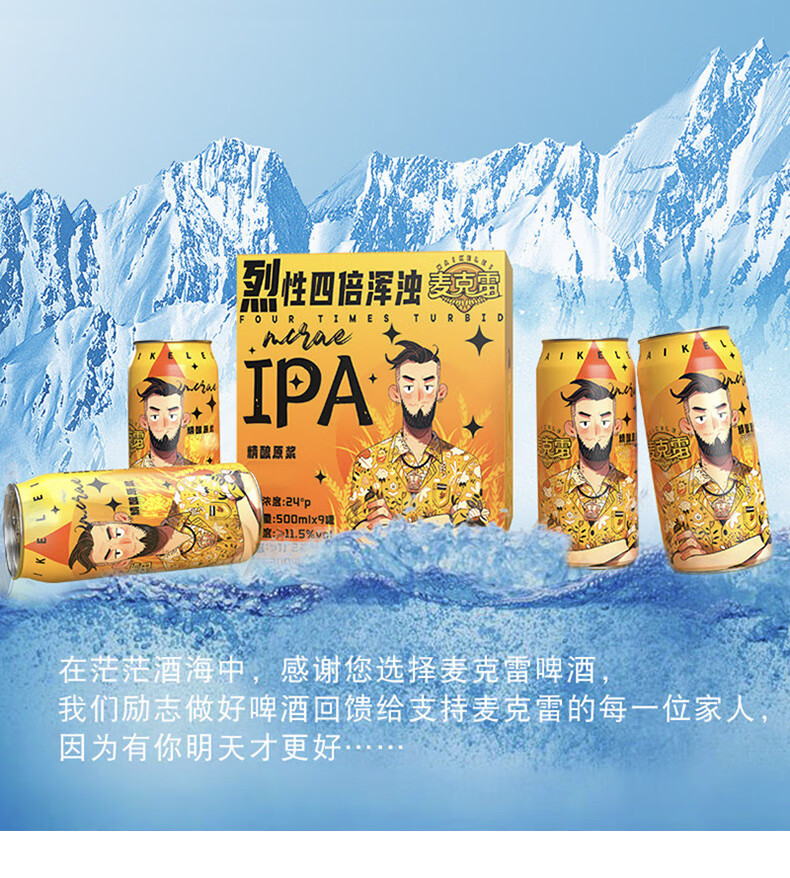 麦克雷烈性啤酒IPA四倍浑浊24°P度精酿原浆清新德式赛松干啤全家福整箱 【整箱】IPA烈性啤酒500ml*9罐