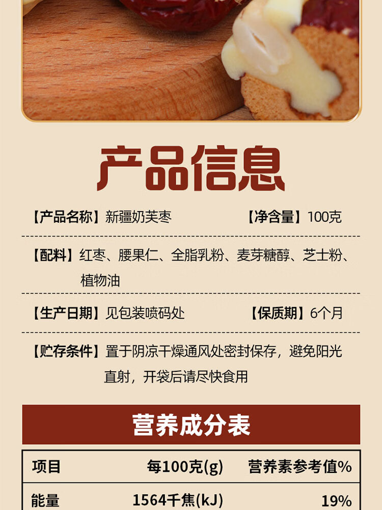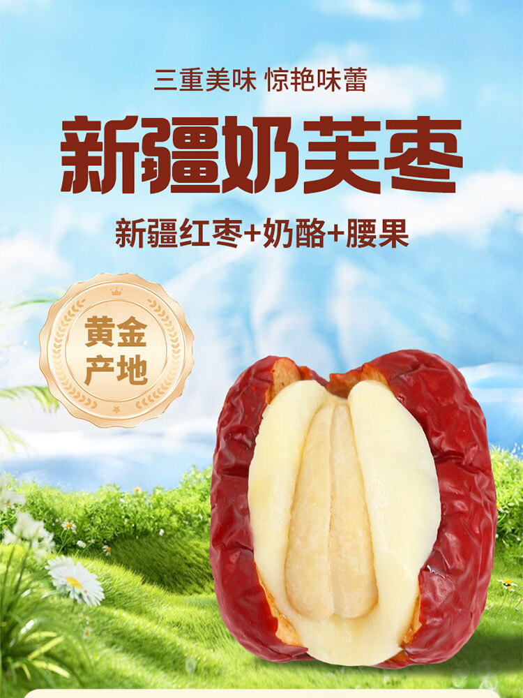 一品玉新疆奶芙枣 100g/袋 红枣夹心奶酪夹腰果仁零食 休闲零食 奶芙枣100g*3袋