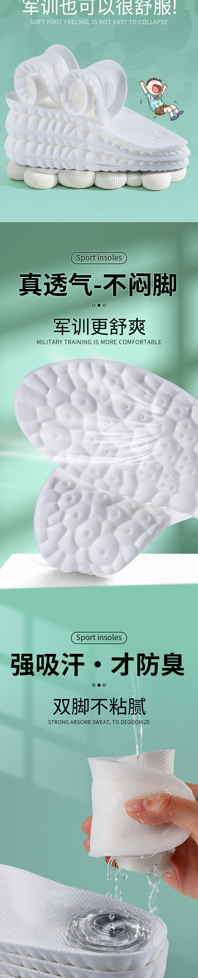 步云除臭鞋垫男抗菌防臭透气吸汗净味运动防磨耐磨防滑皮鞋垫四季款 20双装(三代) 43