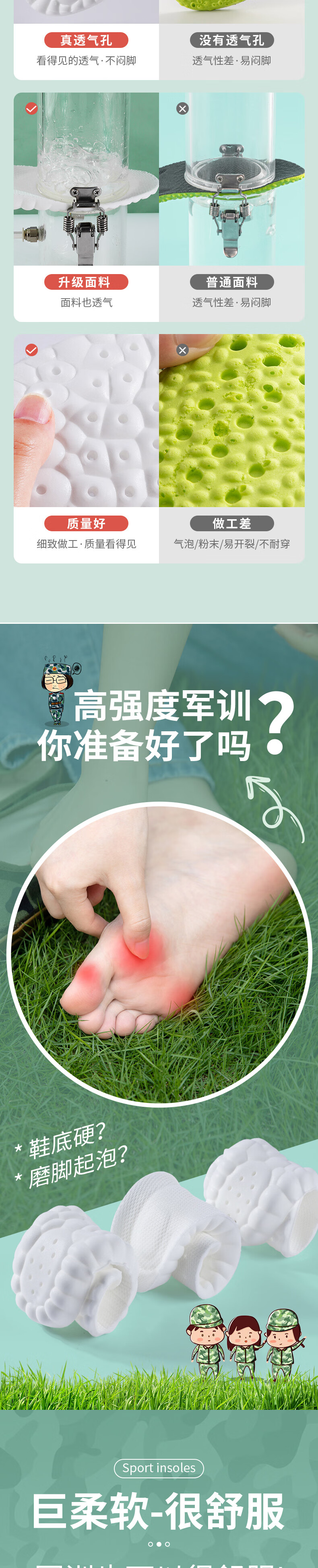 乐拓行运动鞋垫男超软防痛踩屎感站久不累运动减震女吸汗防臭透气不闷脚 2双装-白灰】超软防痛-久站不累 4142码