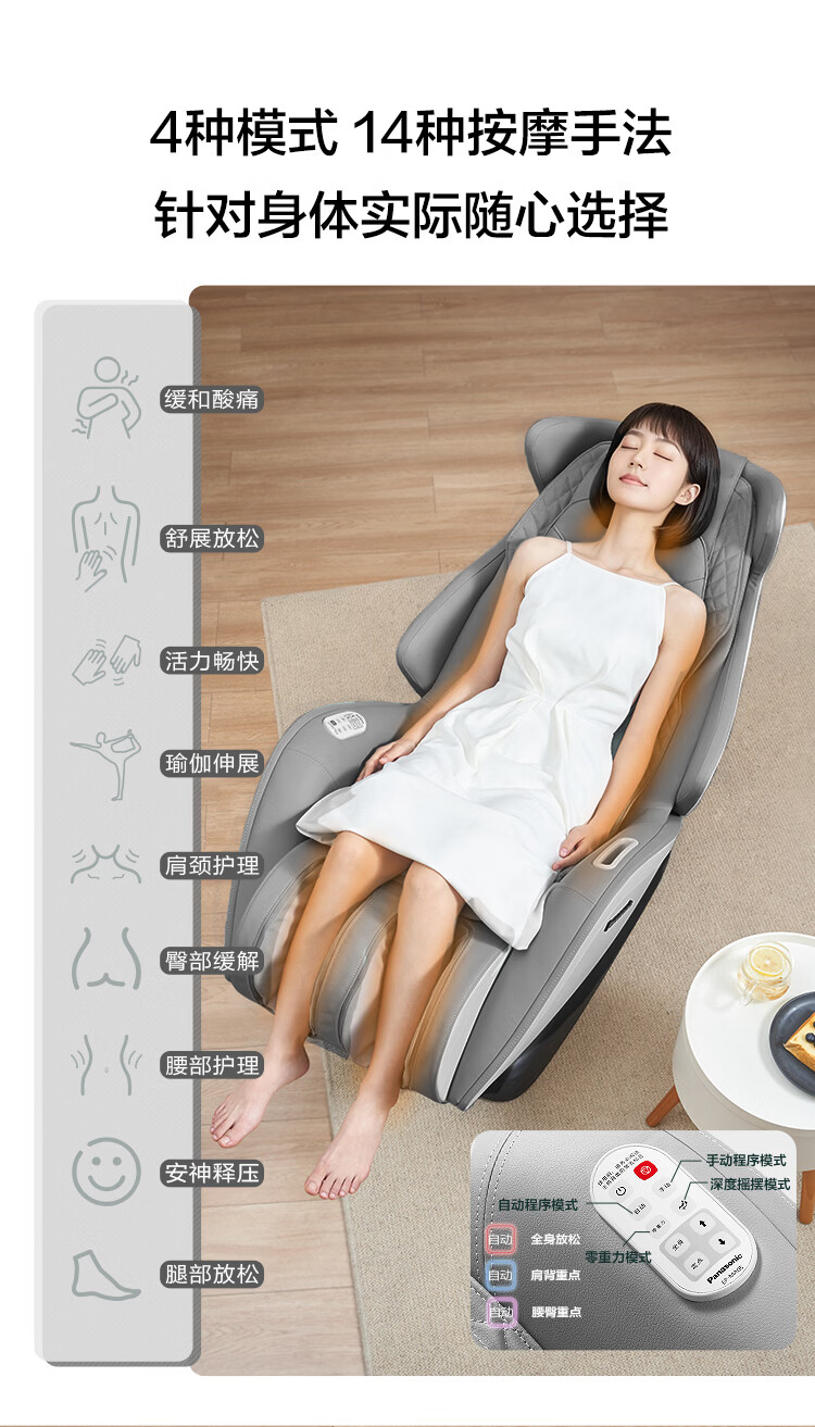 松下(Panasonic)家电国家补贴按摩椅家用小型太空舱多功能全身抖动按摩睡眠椅养生健康沙发椅送父母新年生日礼物 EP-MA06薄荷绿【新型抖动机芯+六手按摩】