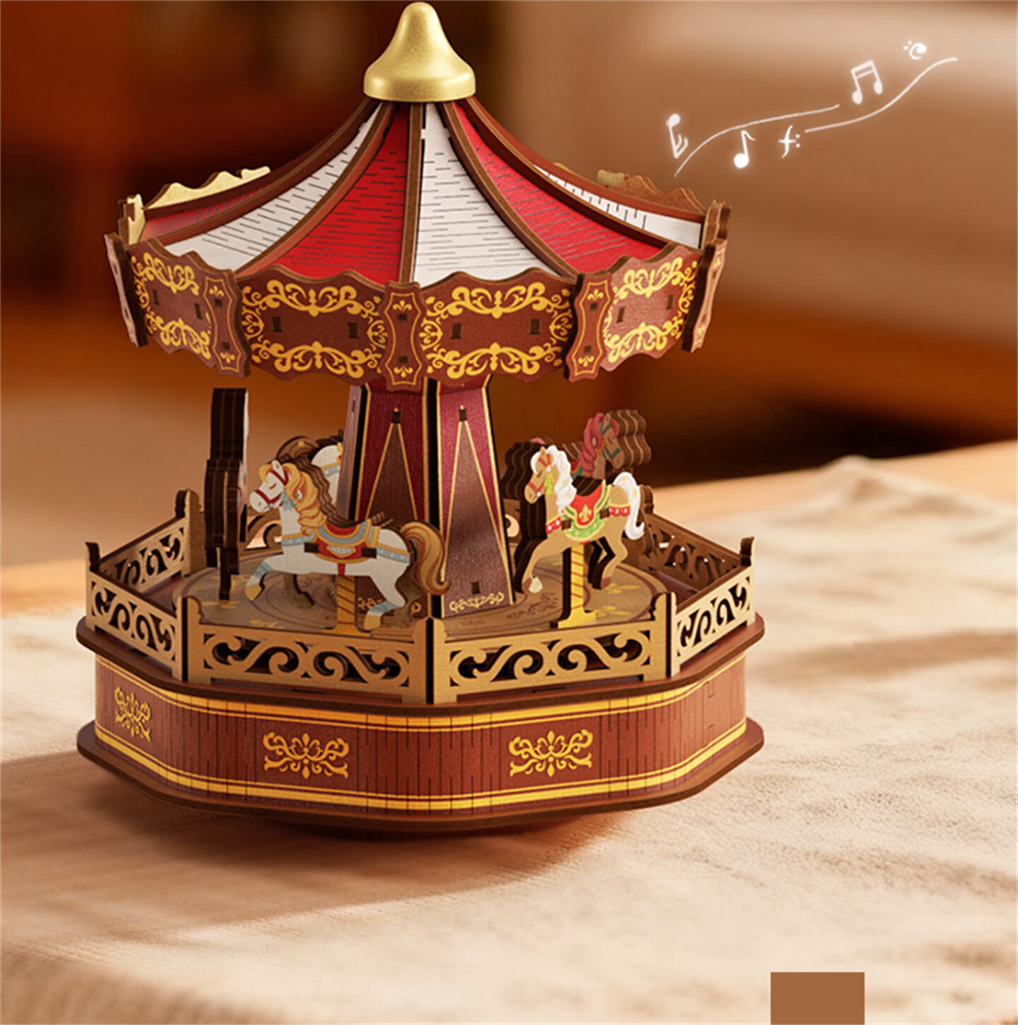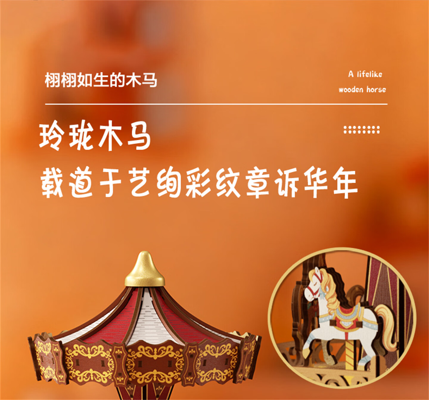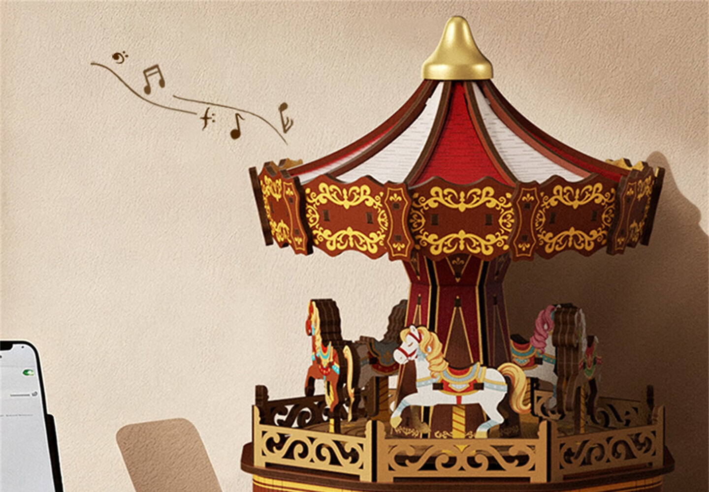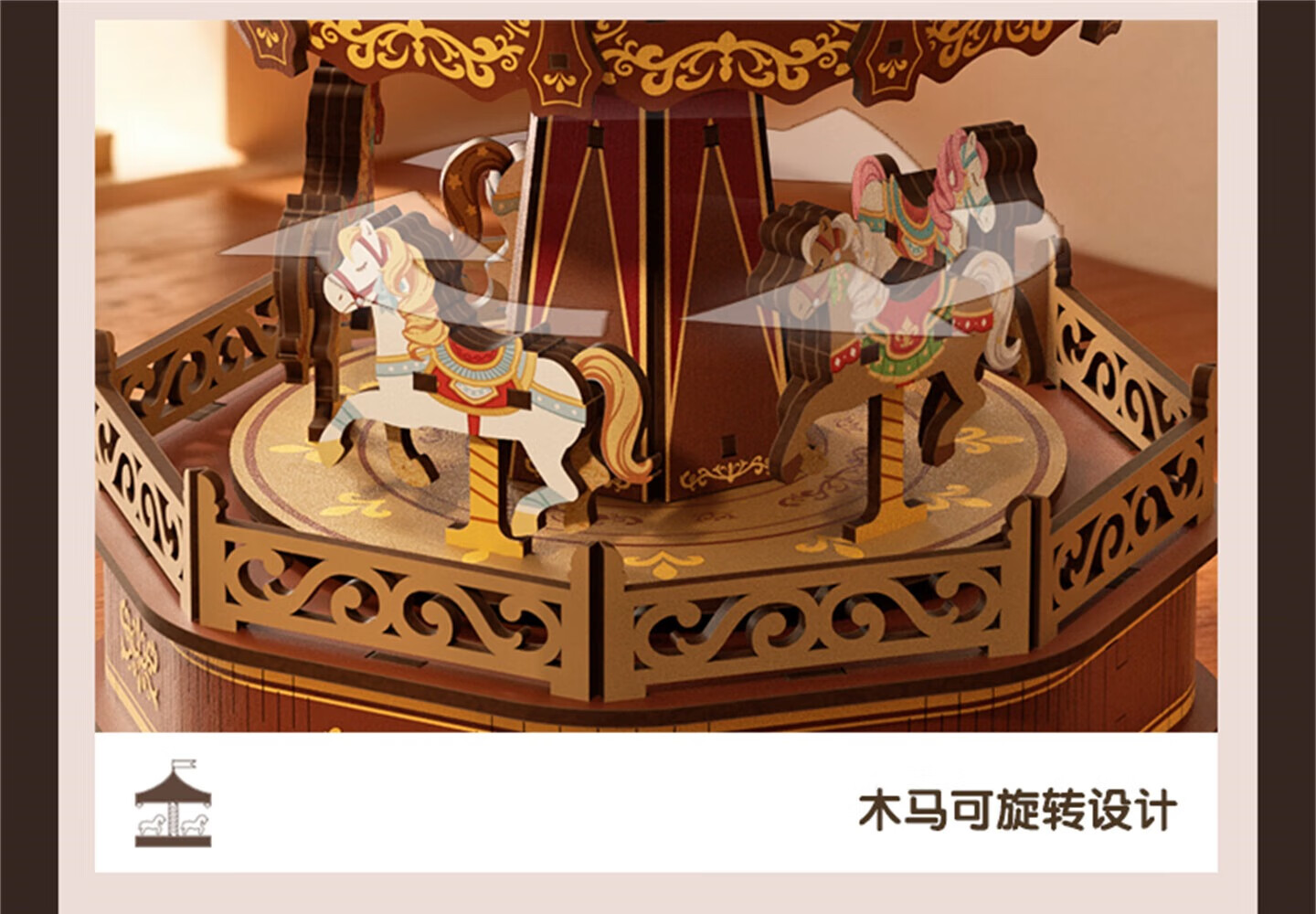 铭塔留声机积木八音盒拼装小颗粒积木diy模型可旋转玩具礼物 【进阶款】经典乐园·旋转木马