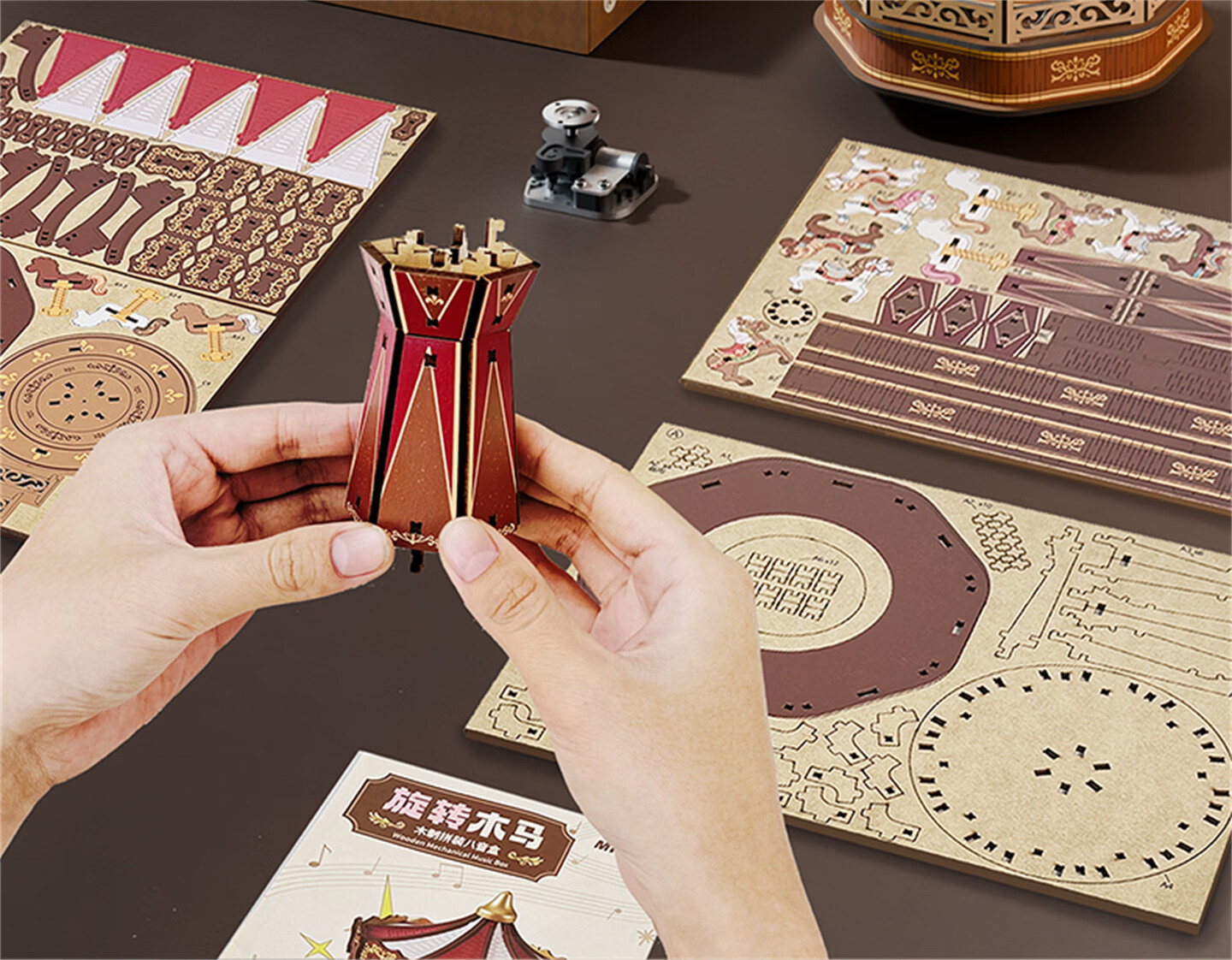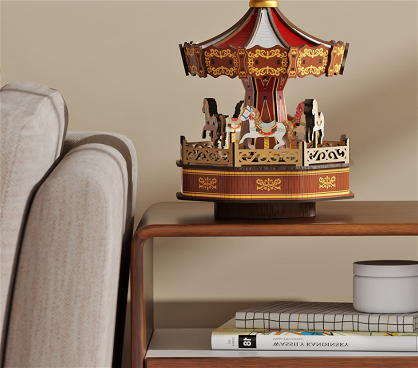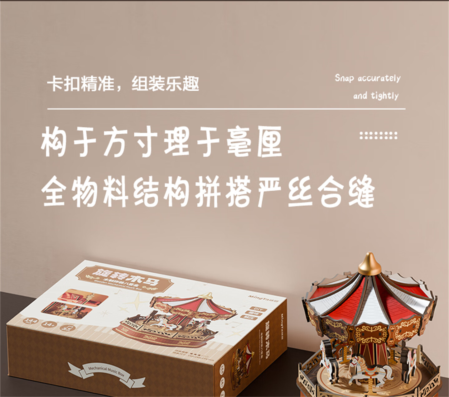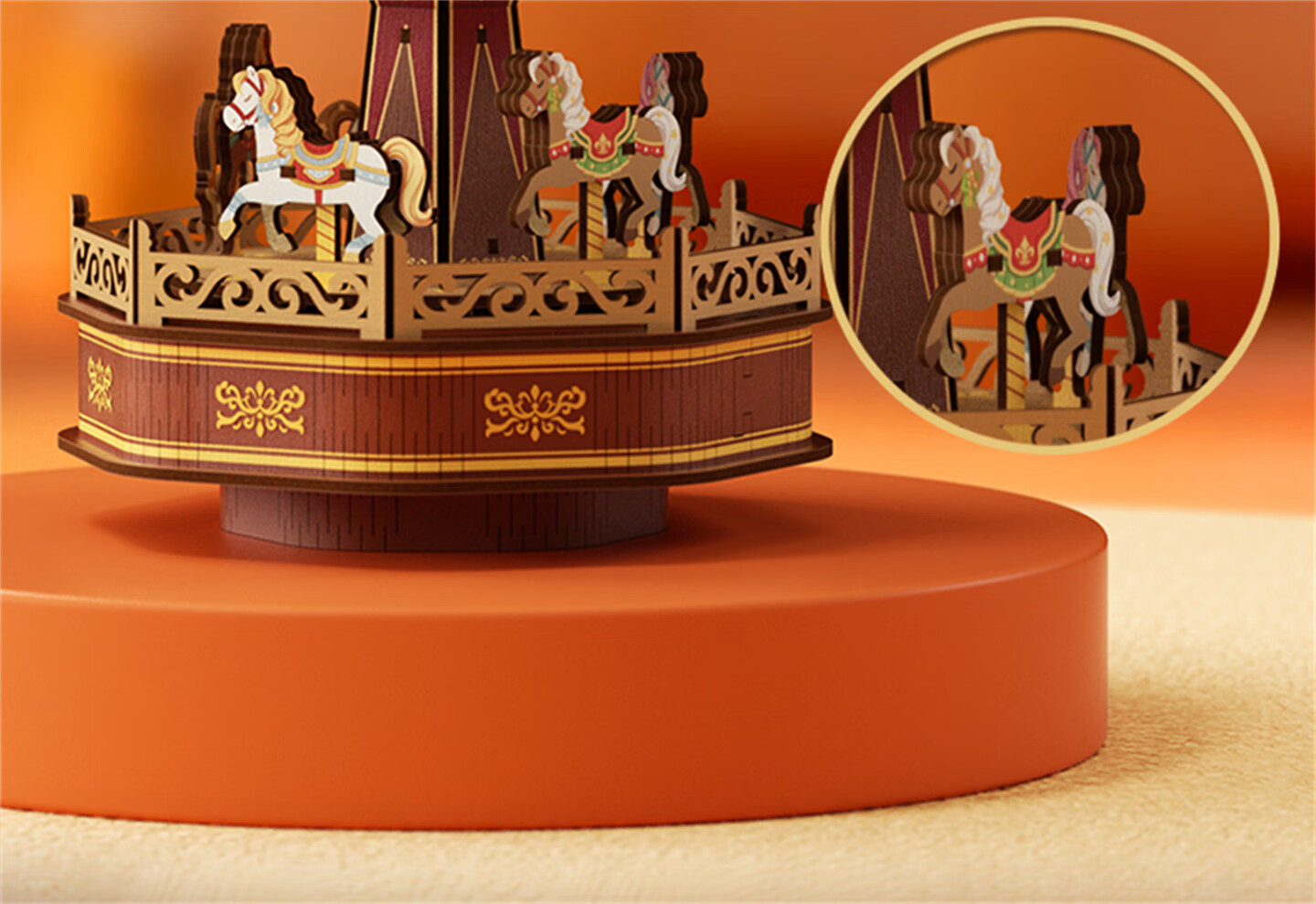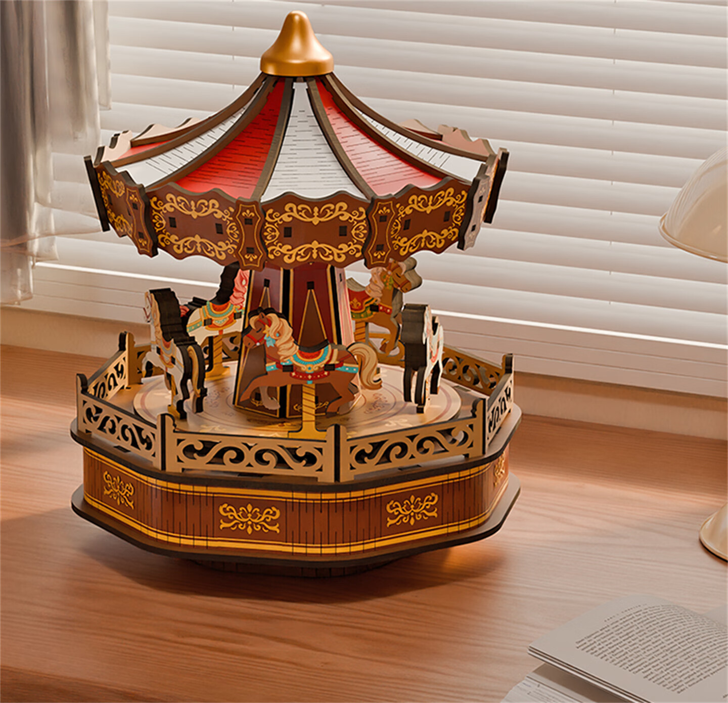 铭塔留声机积木八音盒拼装小颗粒积木diy模型可旋转玩具礼物 【进阶款】经典乐园·旋转木马
