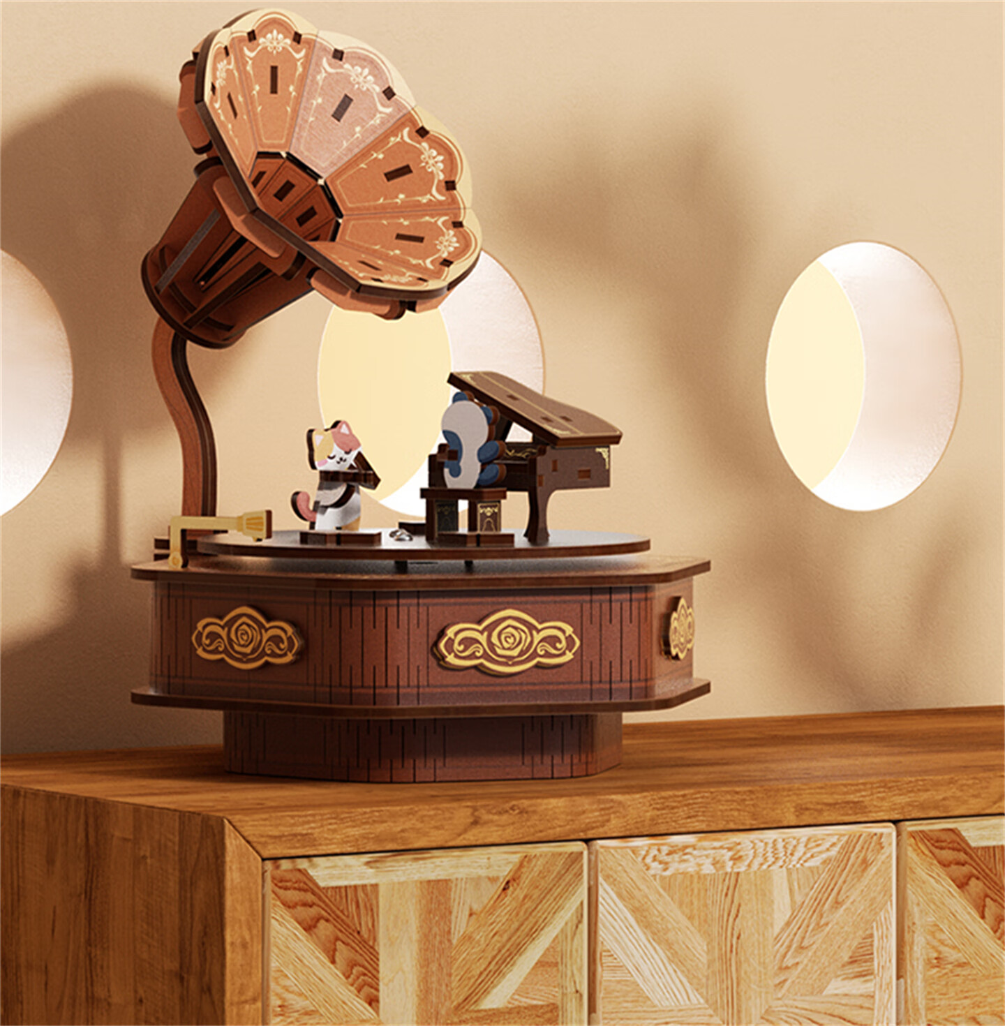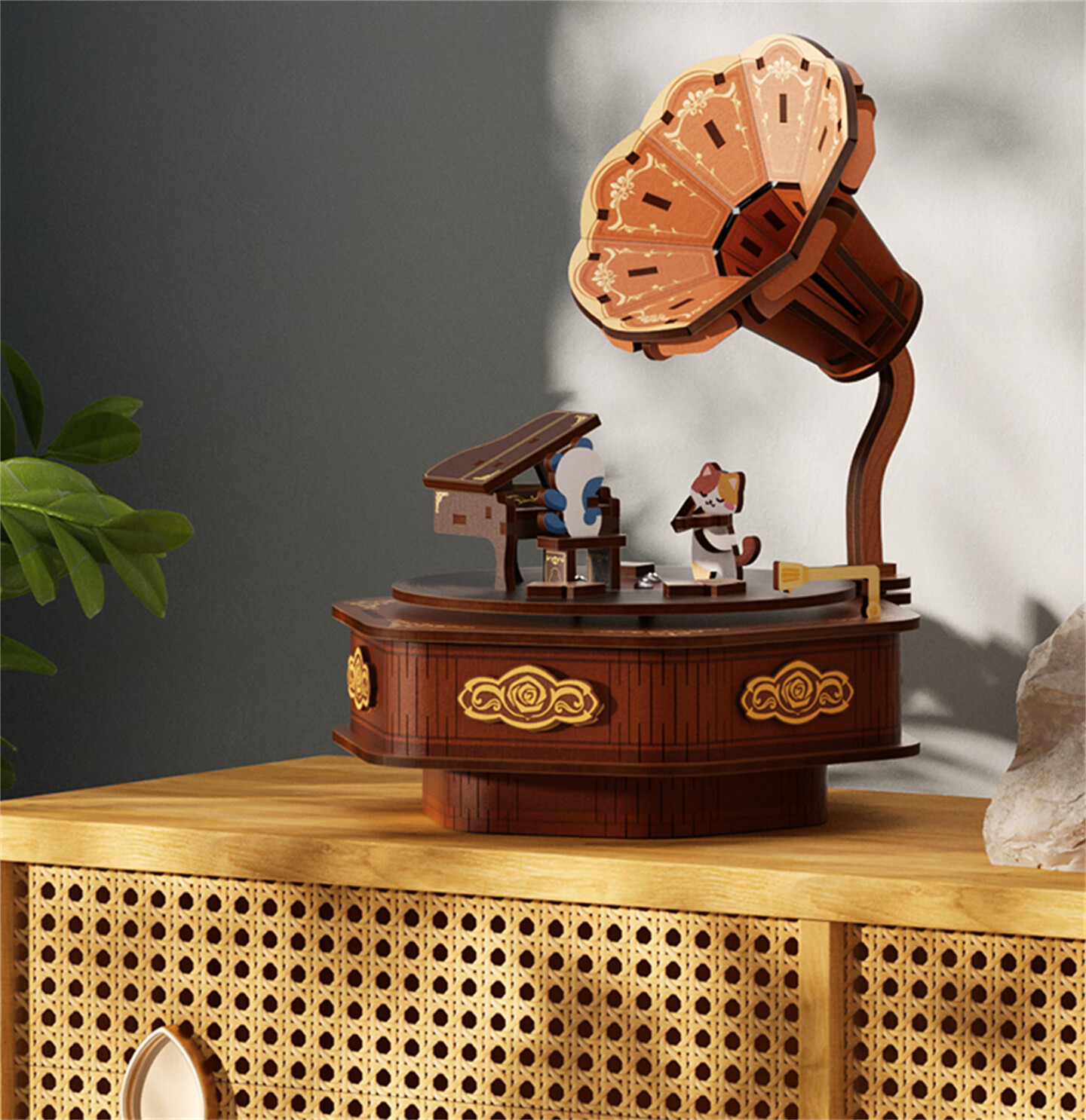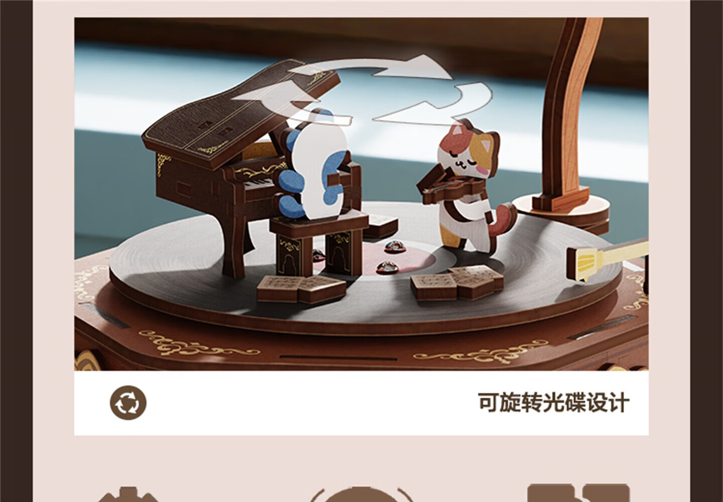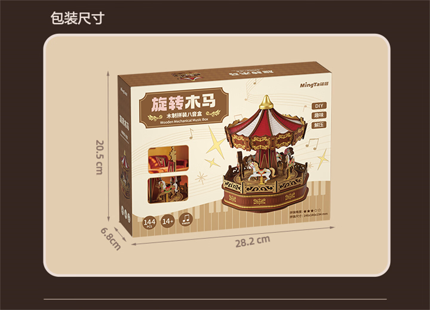 铭塔留声机积木八音盒拼装小颗粒积木diy模型可旋转玩具礼物 【进阶款】经典乐园·旋转木马