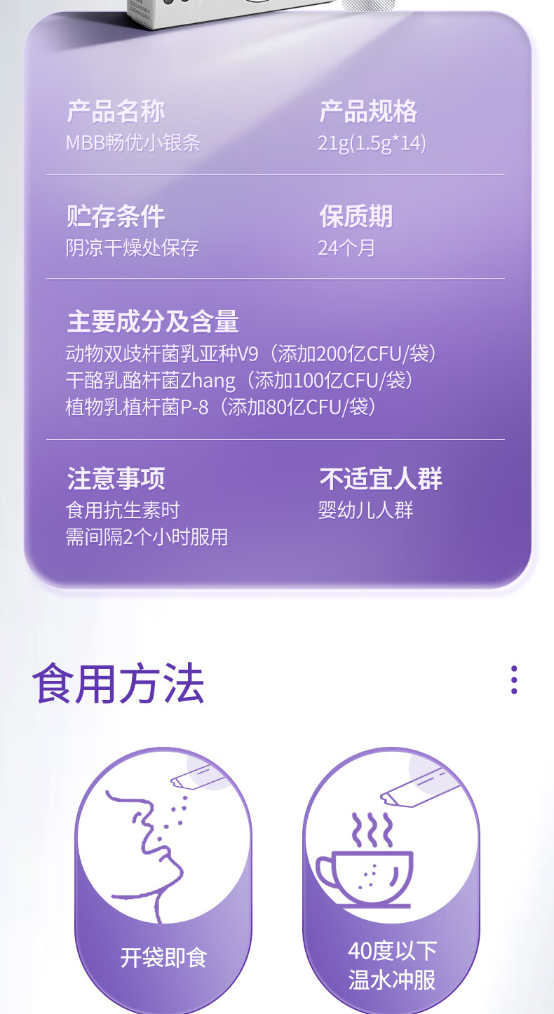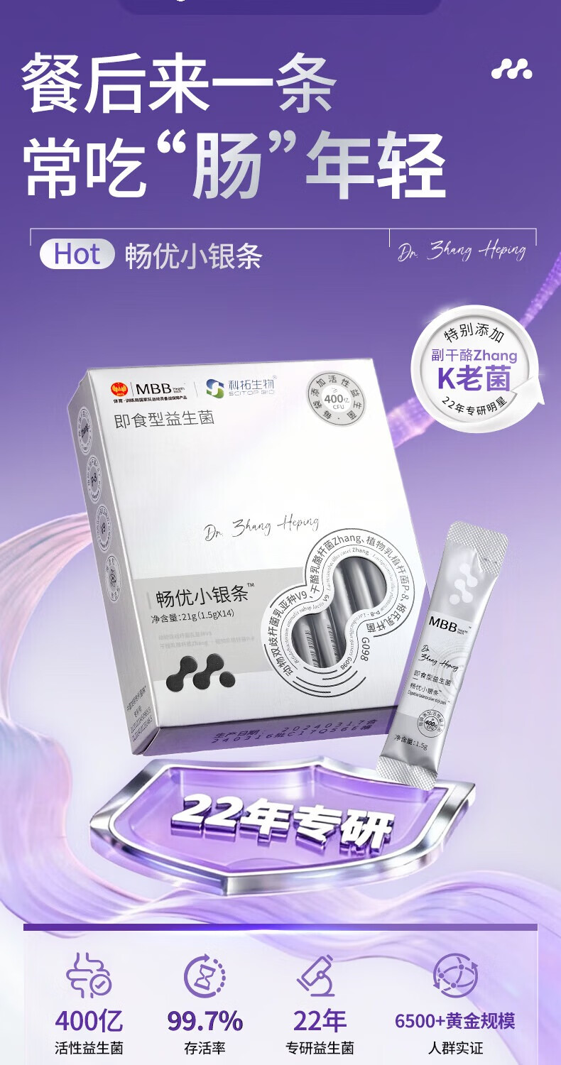 MBB科拓生物小银条益生菌粉成人肠胃肠道活性菌调菌群理益生元正品 小银条8盒
