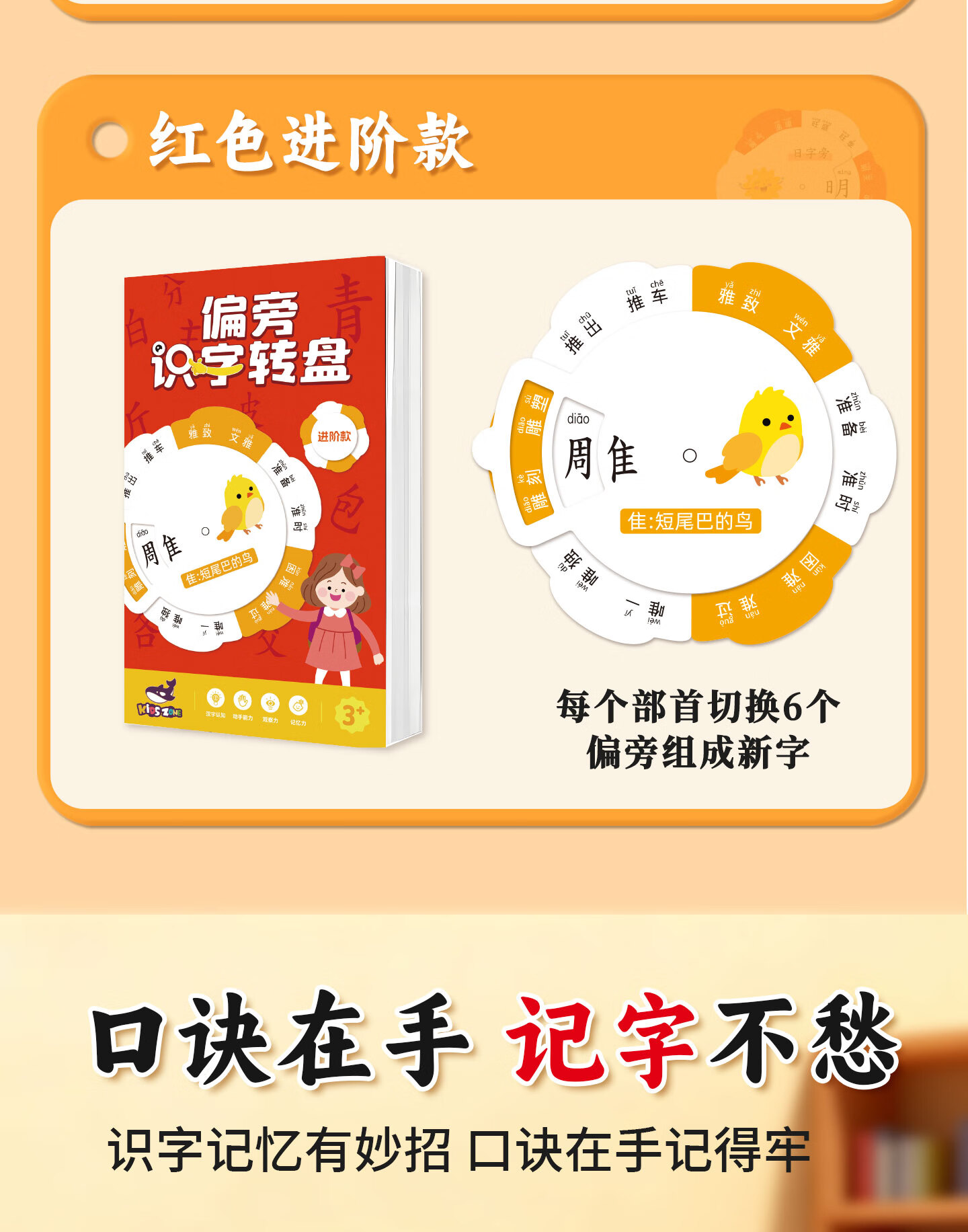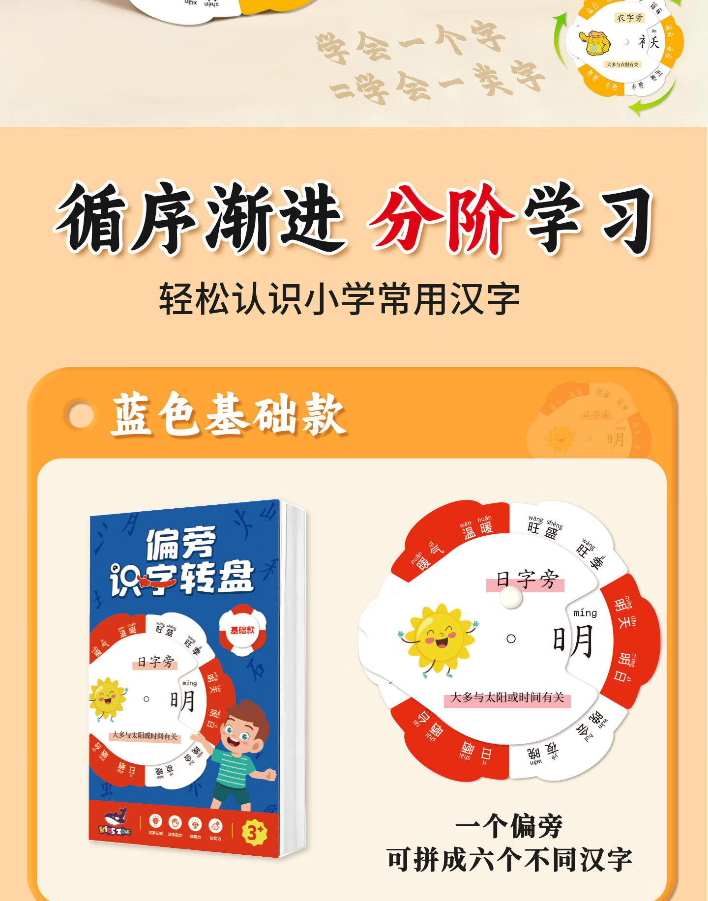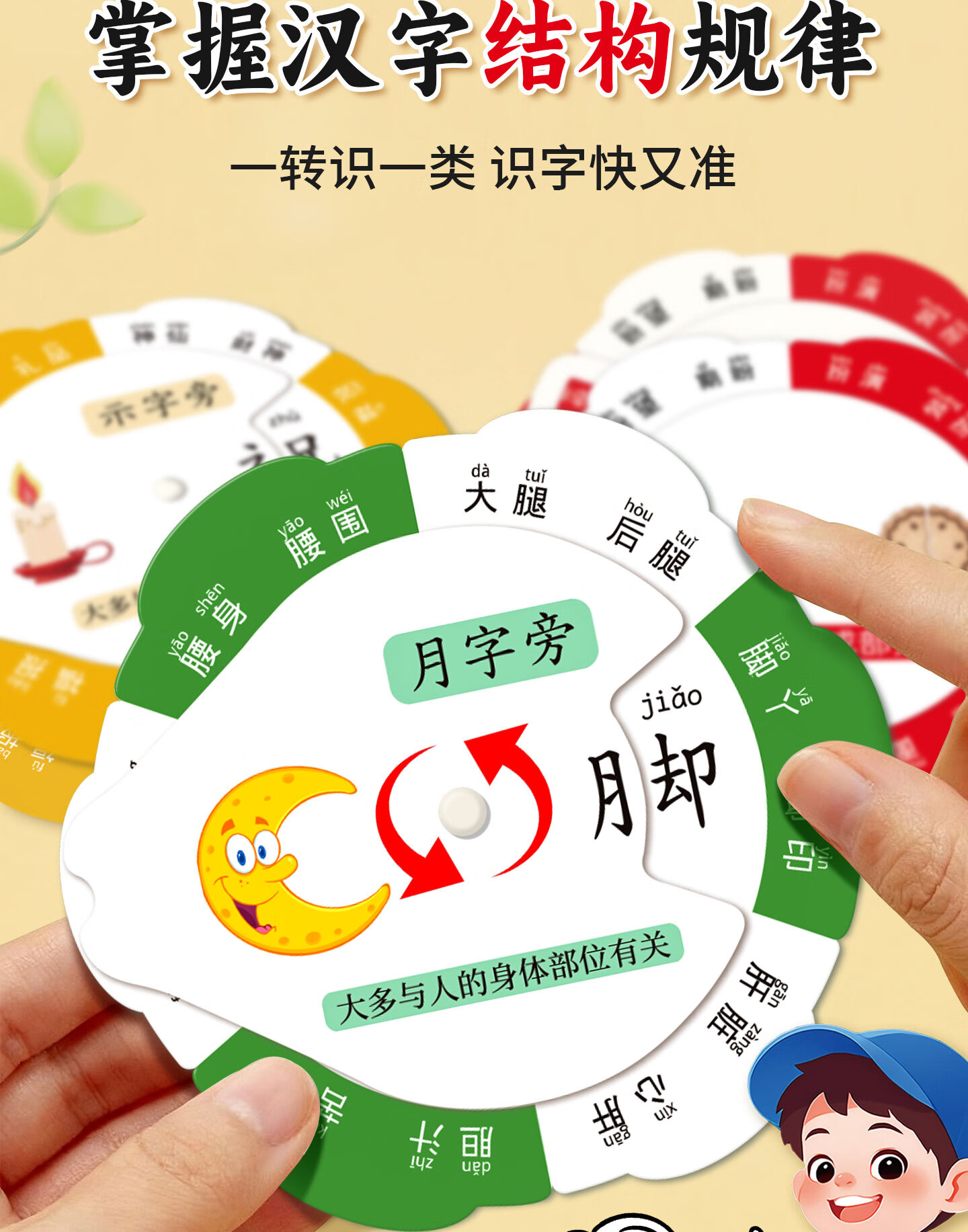 嘟乐仔儿童偏旁识字转盘幼小衔接偏旁部首卡片幼儿园识字游戏玩具全套 【基础款】偏旁识字转盘