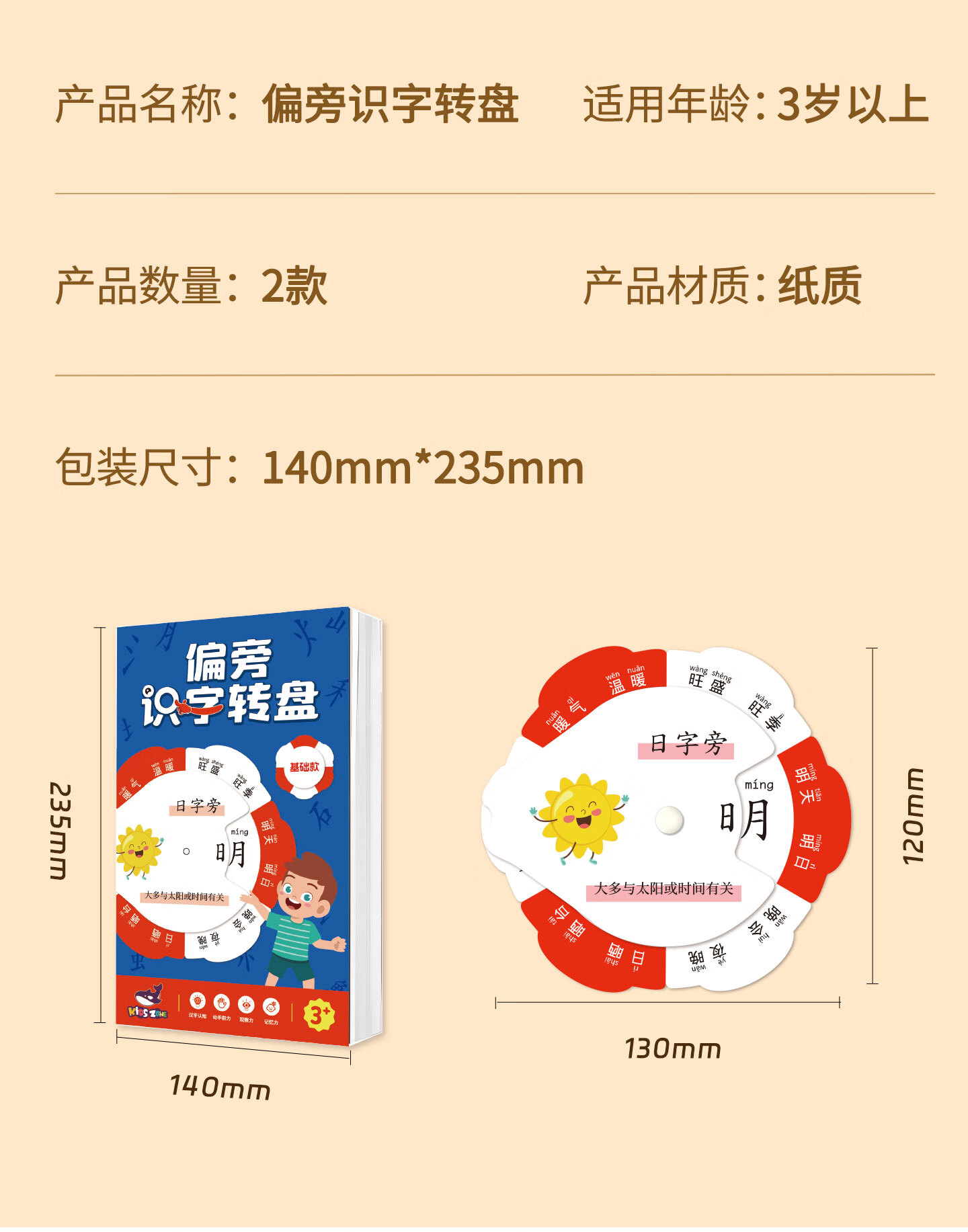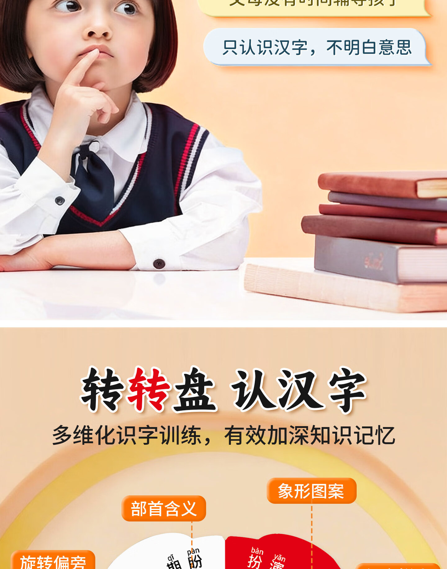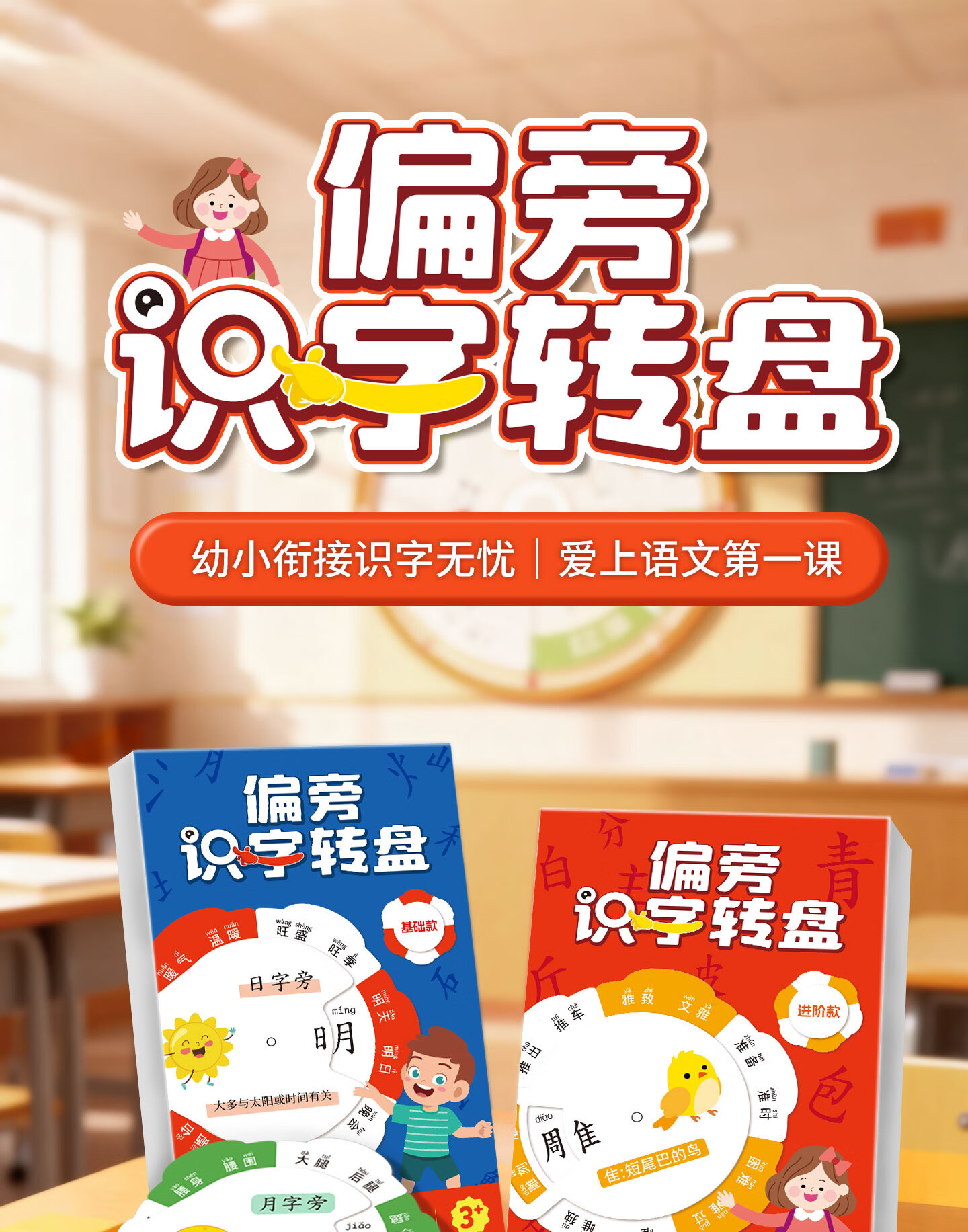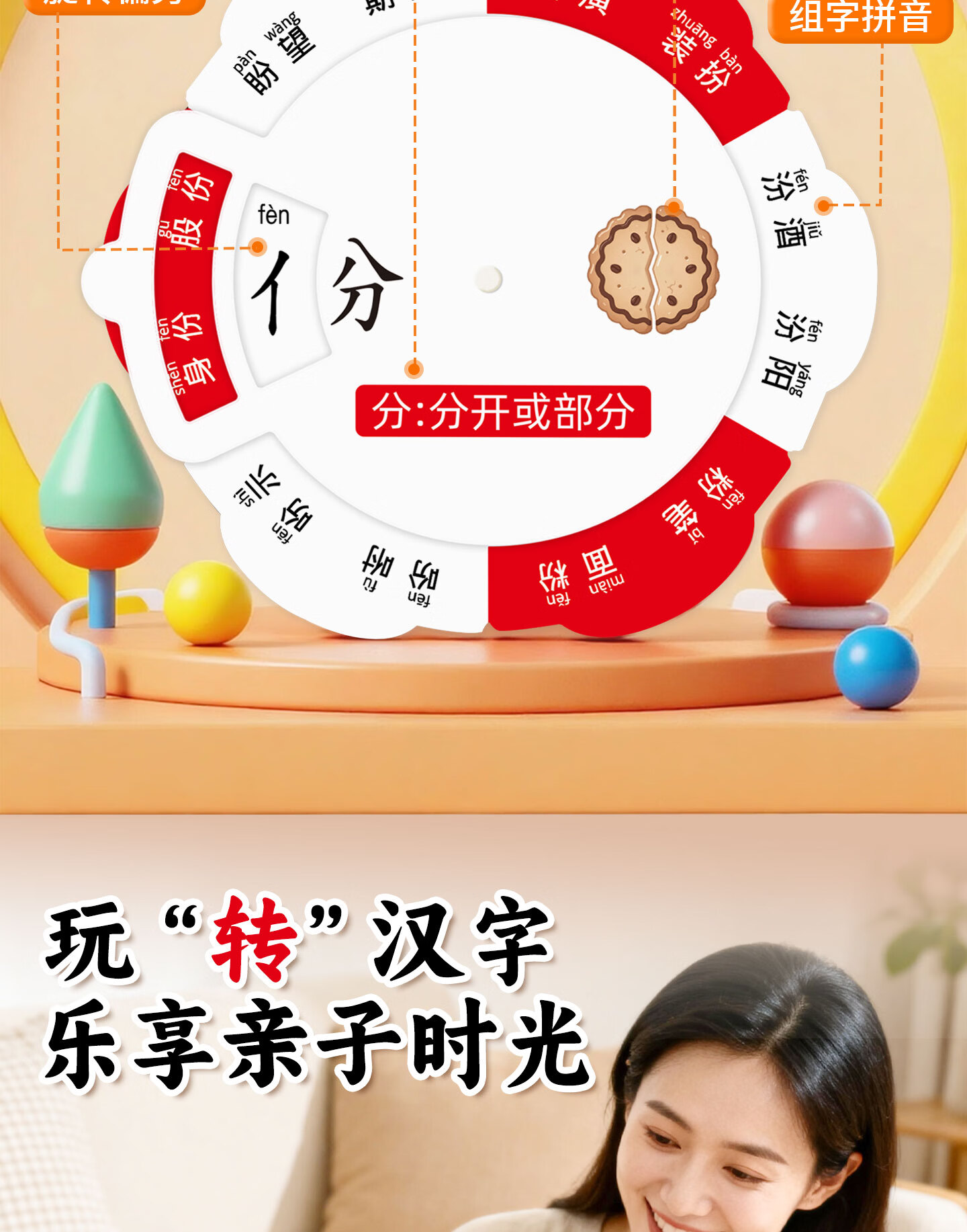 嘟乐仔儿童偏旁识字转盘幼小衔接偏旁部首卡片幼儿园识字游戏玩具全套 【基础款】偏旁识字转盘