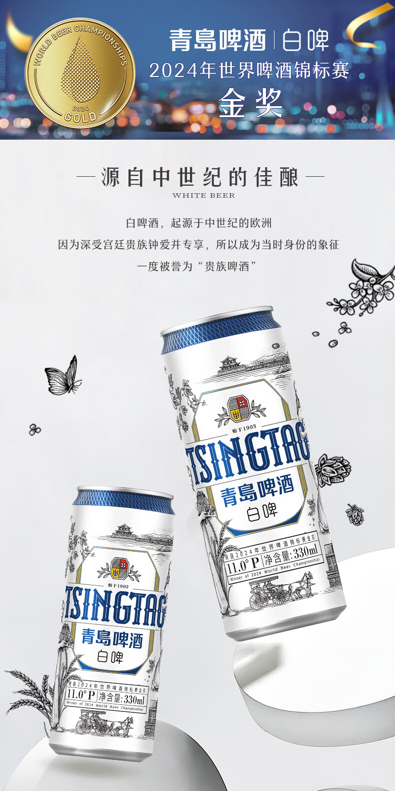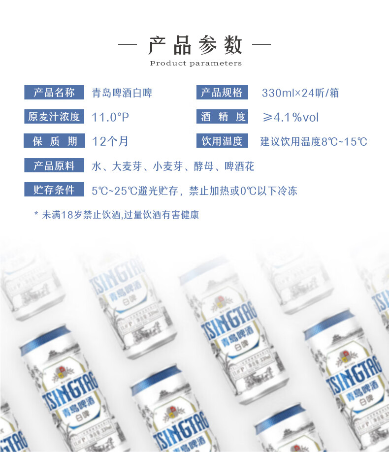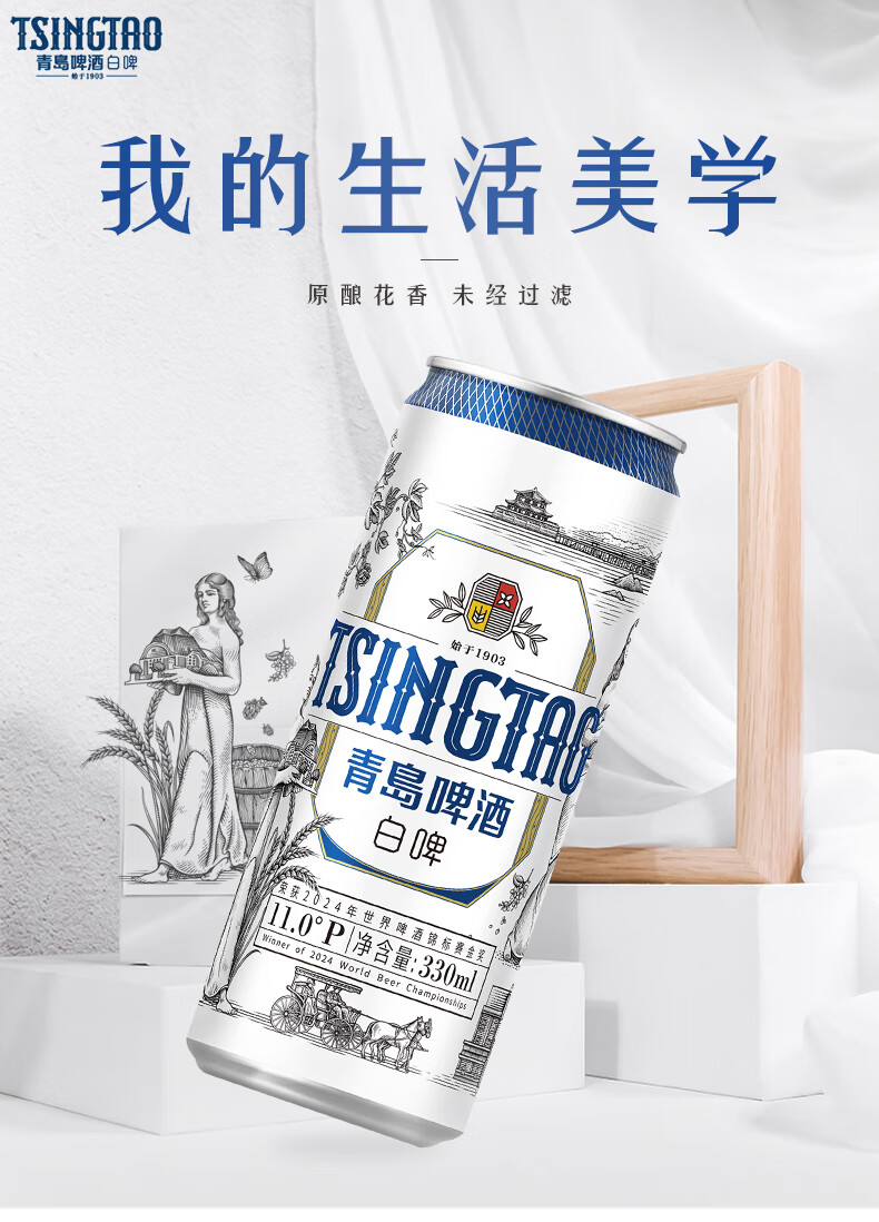 青岛啤酒 白啤全麦白啤便携灌装整箱 330mL 24罐 (20版)