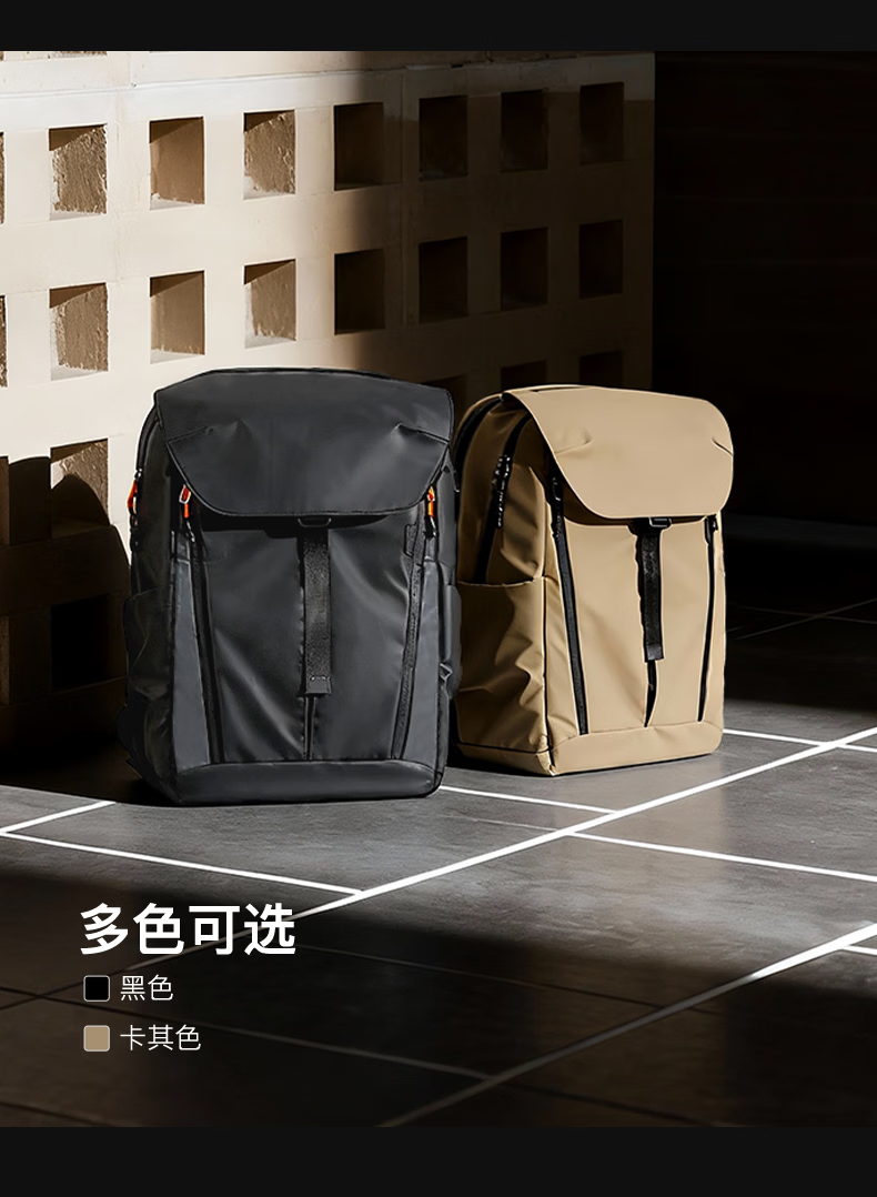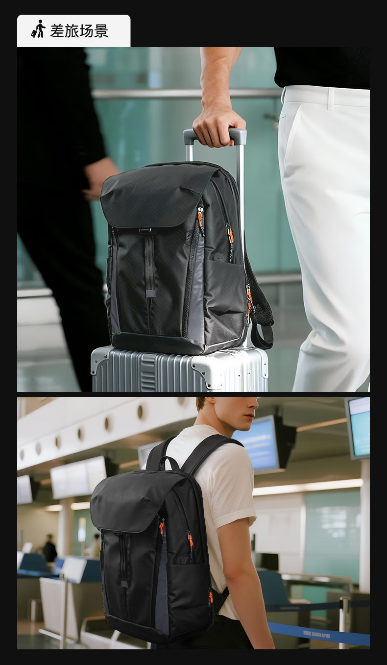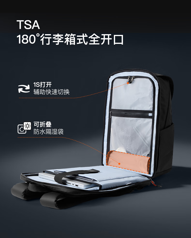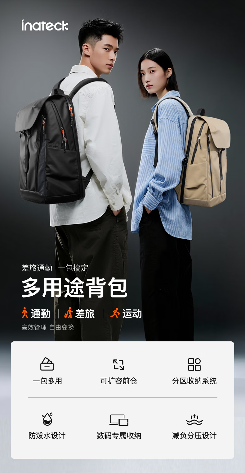 inateck大容量旅行包双肩包男女轻量化背包轻便休闲防泼水通勤商务出差 幻夜黑 | 25L大容量 | 180°开合