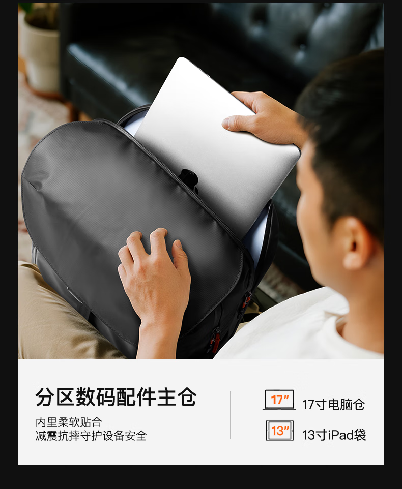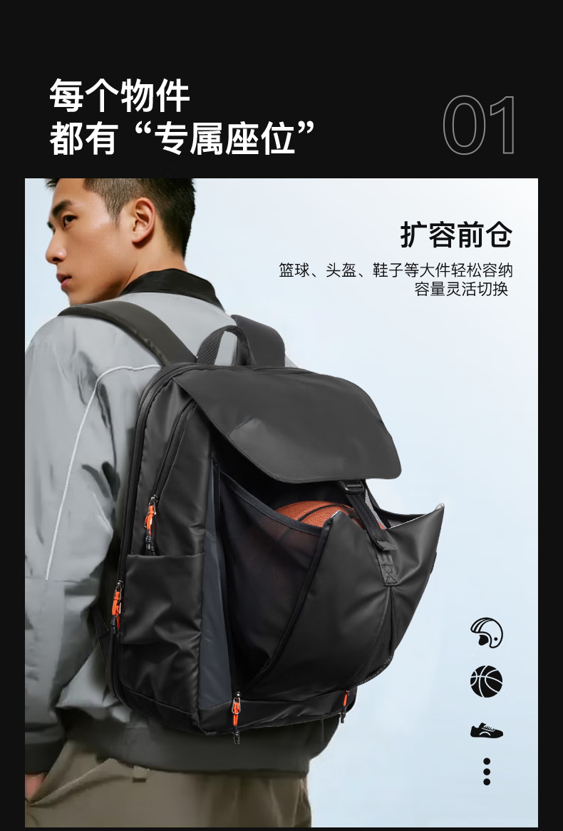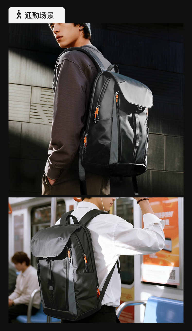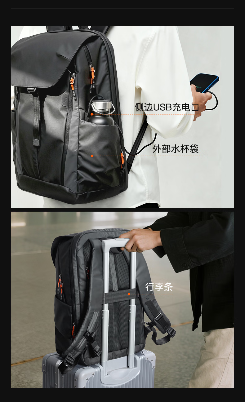 inateck大容量旅行包双肩包男女轻量化背包轻便休闲防泼水通勤商务出差 幻夜黑 | 25L大容量 | 180°开合