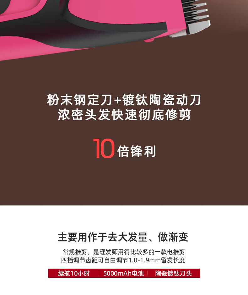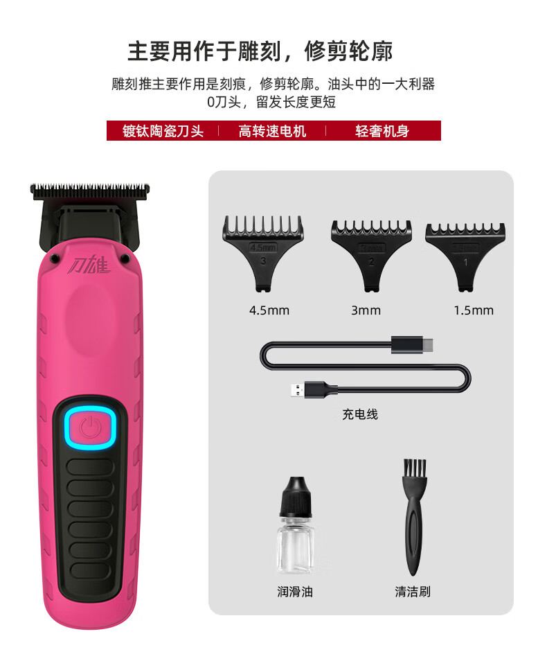 刀雄理发器雕刻油头推剪增白器发型师专用发廊快剪套装剪头发推子 战神1雕刻推粉色 无规格