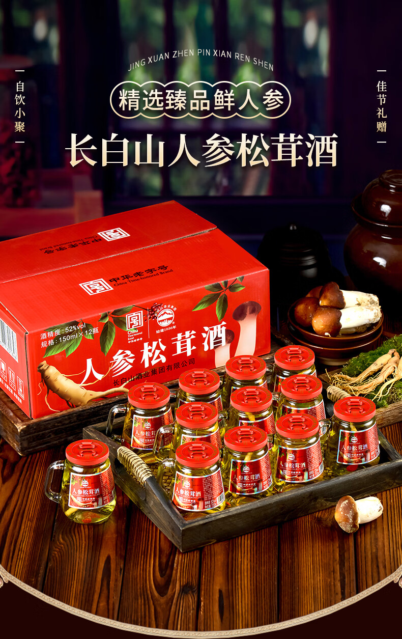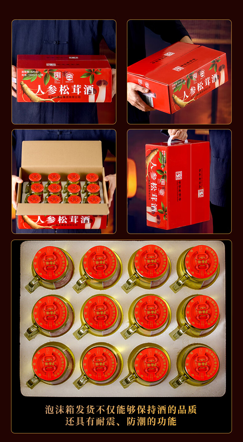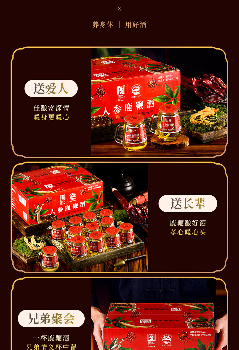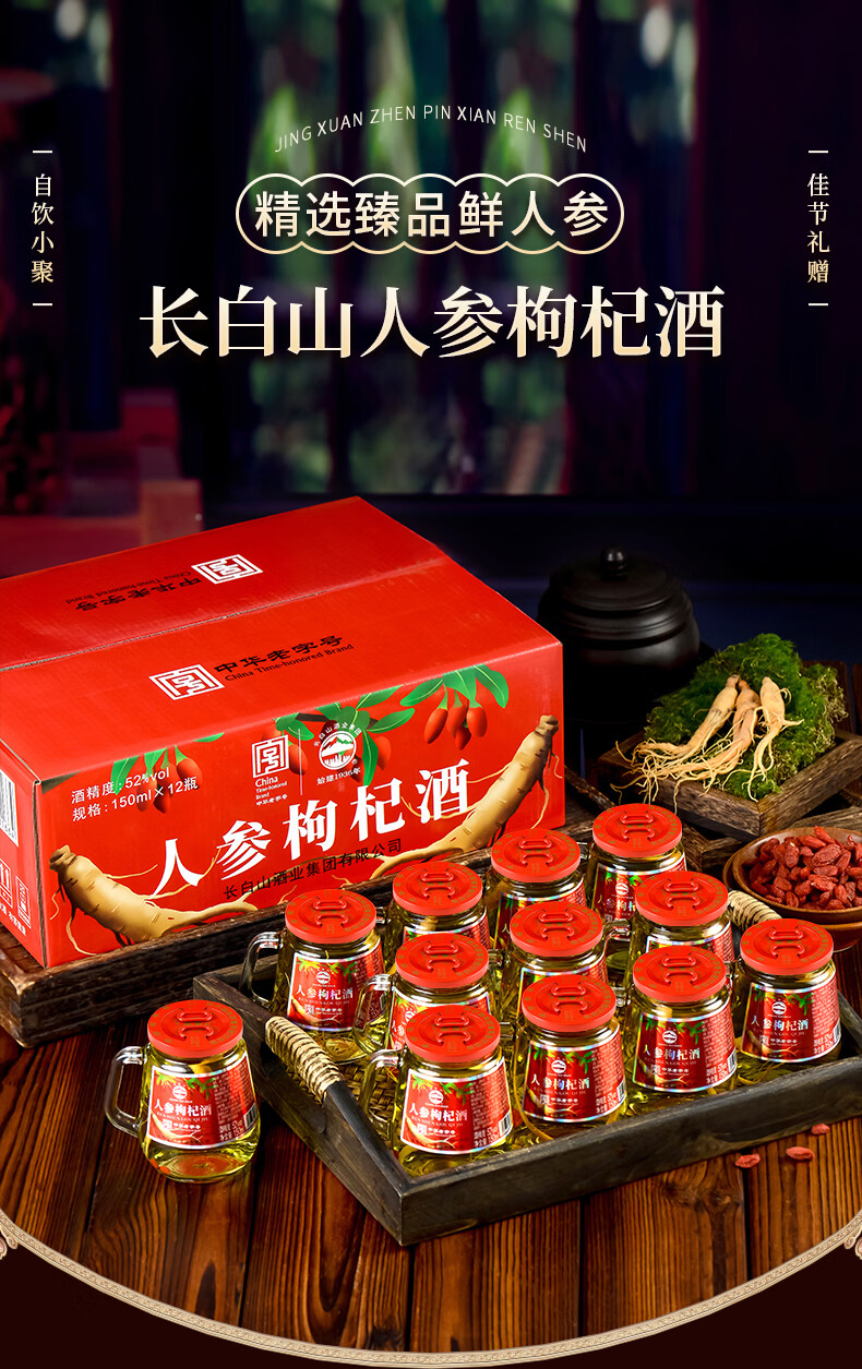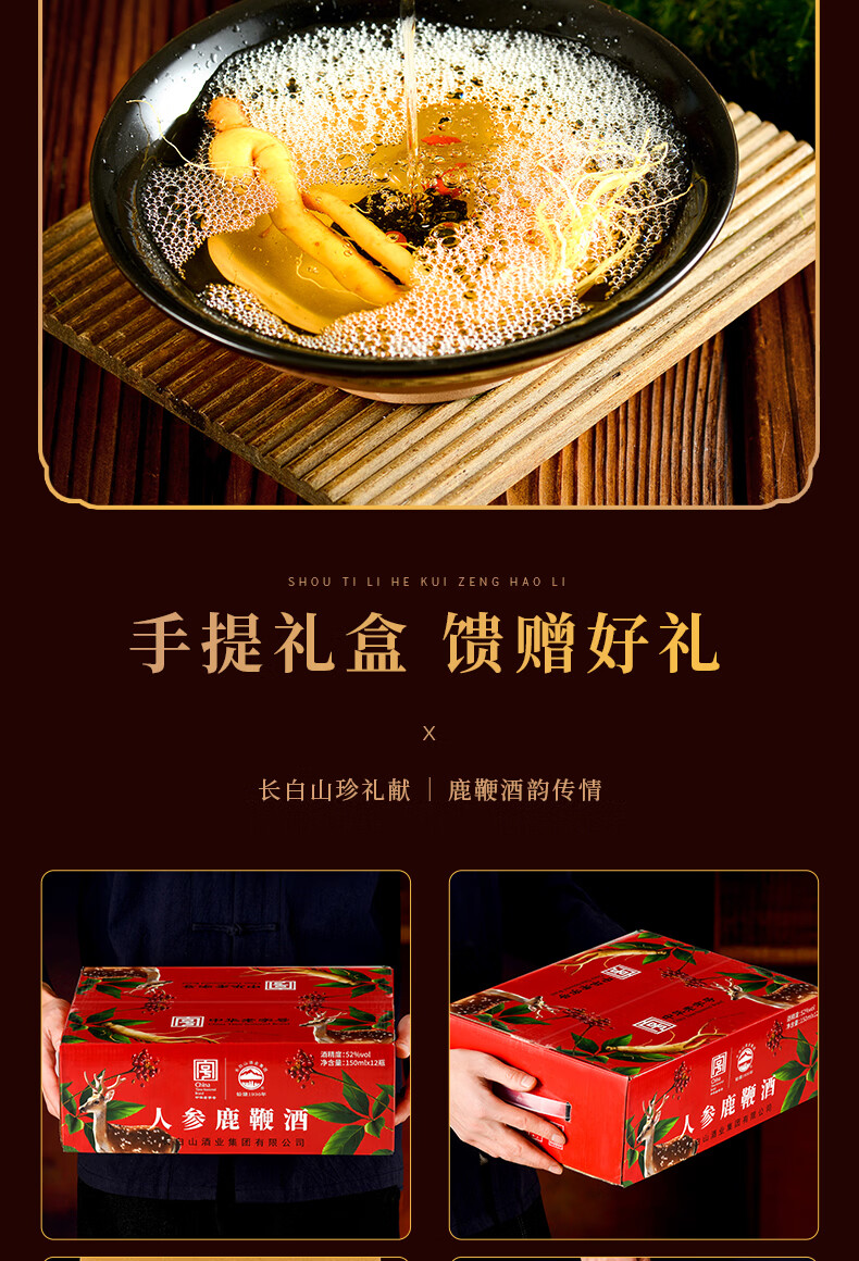 长白山人参酒枸杞酒松茸酒鹿鞭酒52度养生滋补高粱酒礼盒年货节送长辈 93%的选择-男士之宝人参鹿鞭酒 52度150ml*12瓶