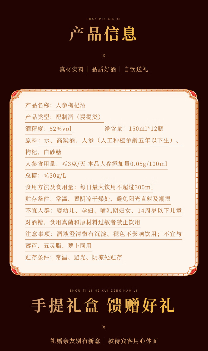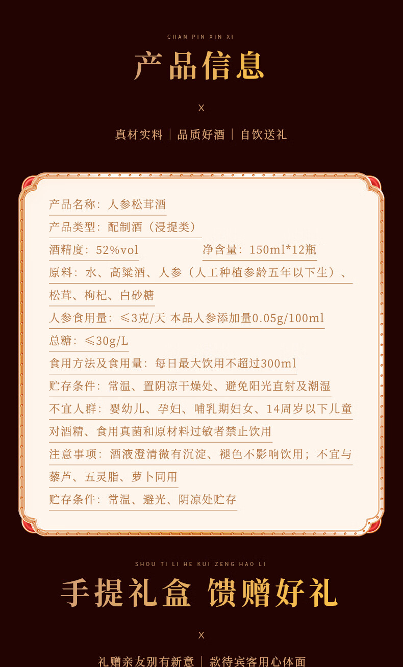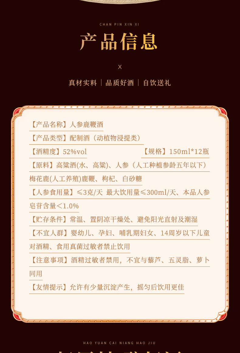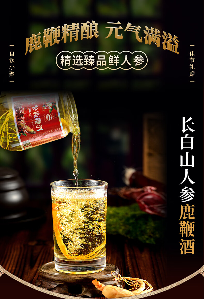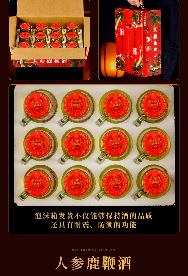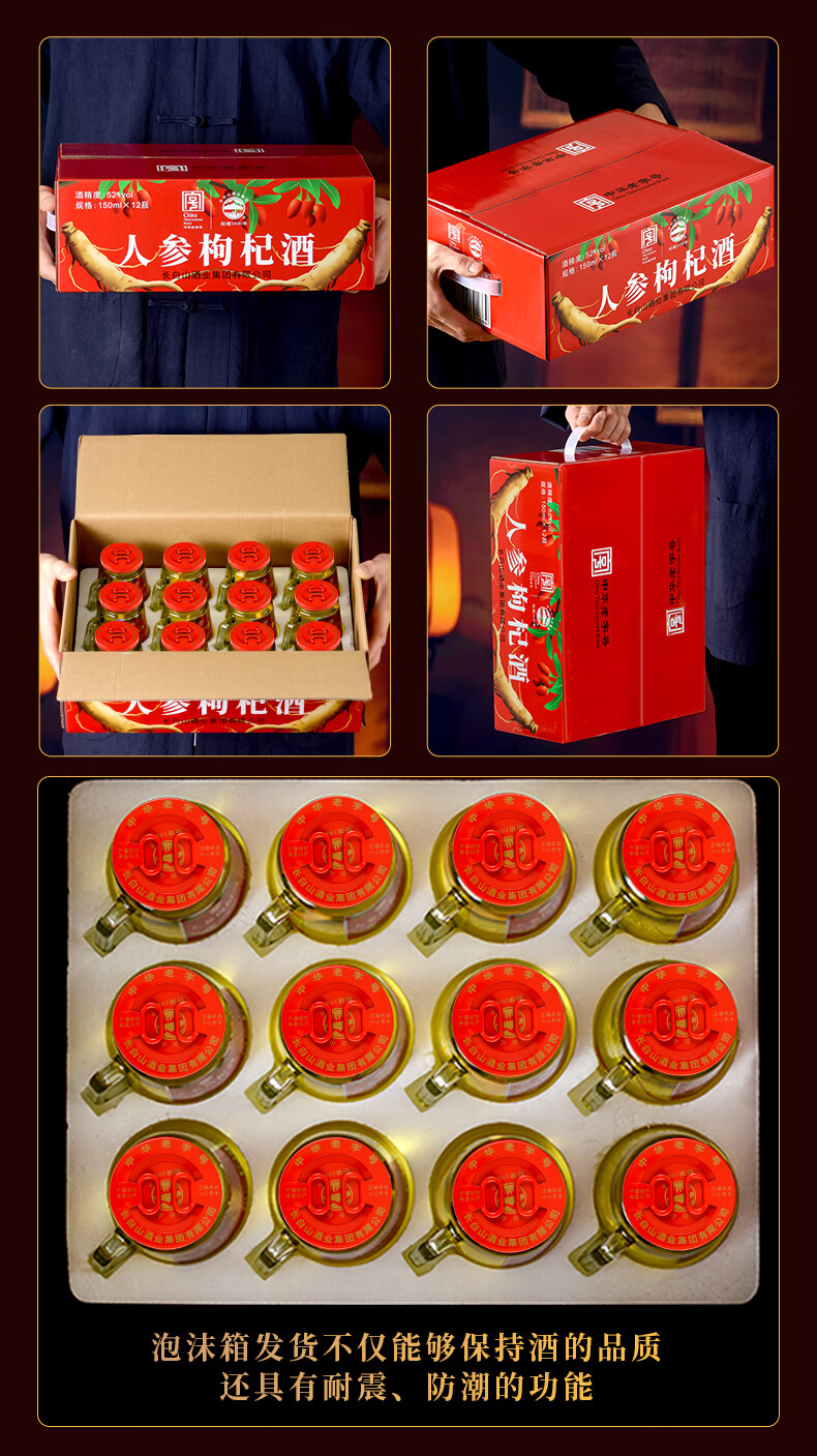 长白山人参酒枸杞酒松茸酒鹿鞭酒52度养生滋补高粱酒礼盒年货节送长辈 93%的选择-男士之宝人参鹿鞭酒 52度150ml*12瓶