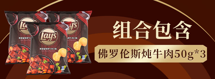 乐事(Lay's)薯片佛罗伦萨炖牛肉味50g*3 台湾产 休闲零食膨化食品