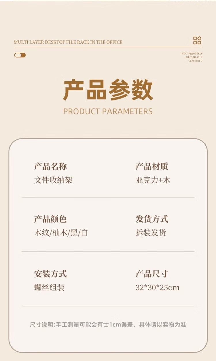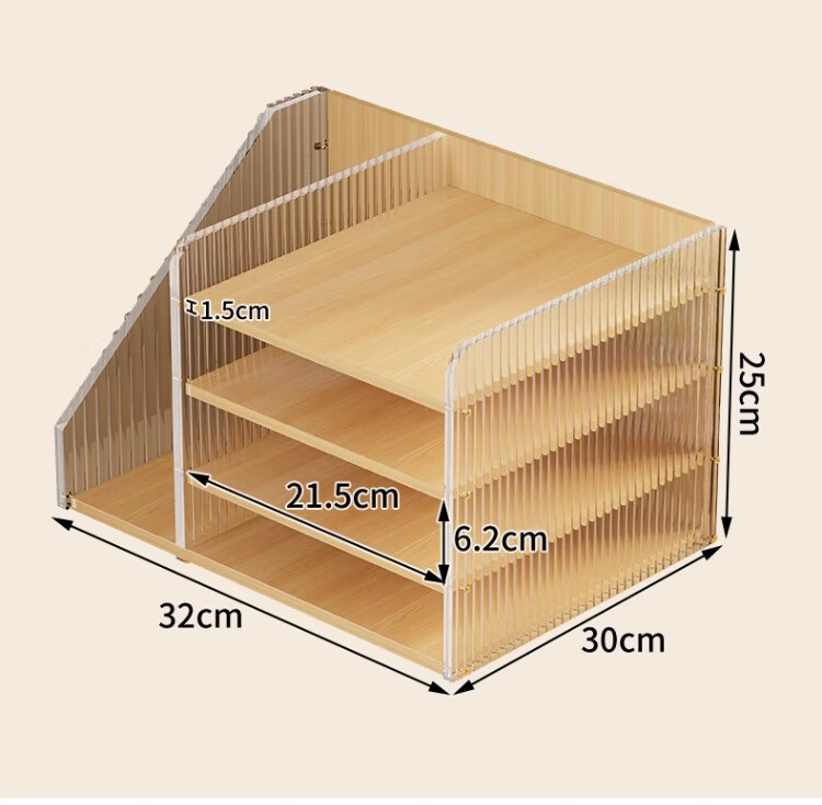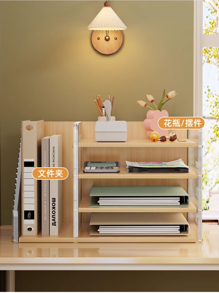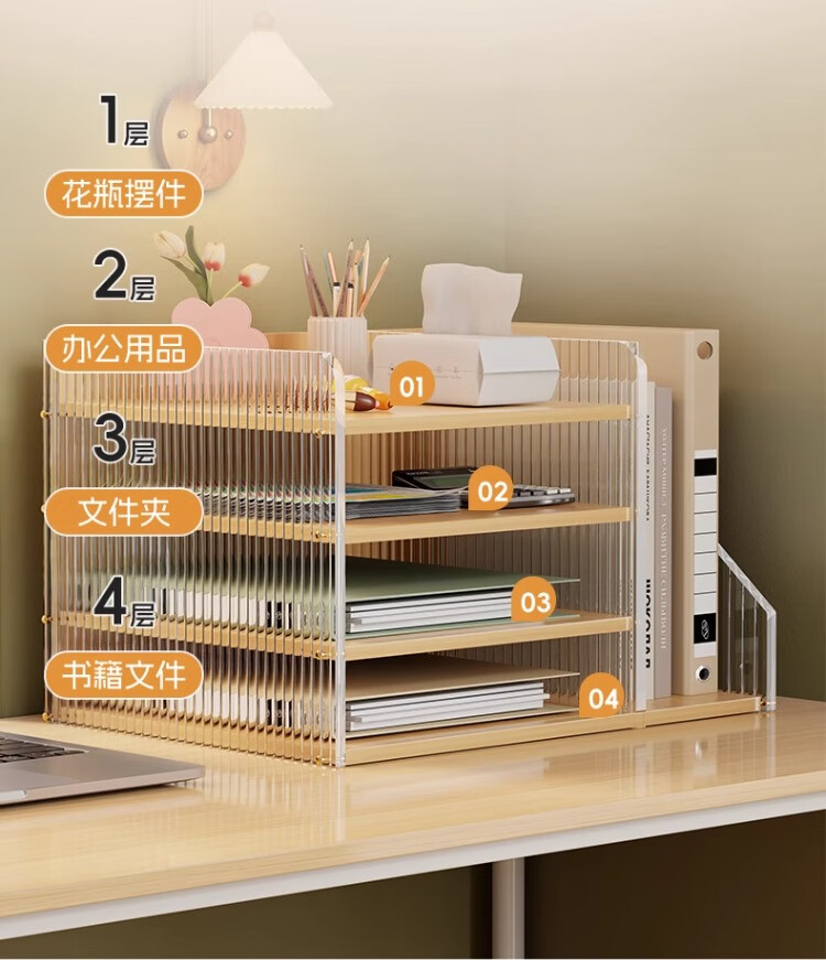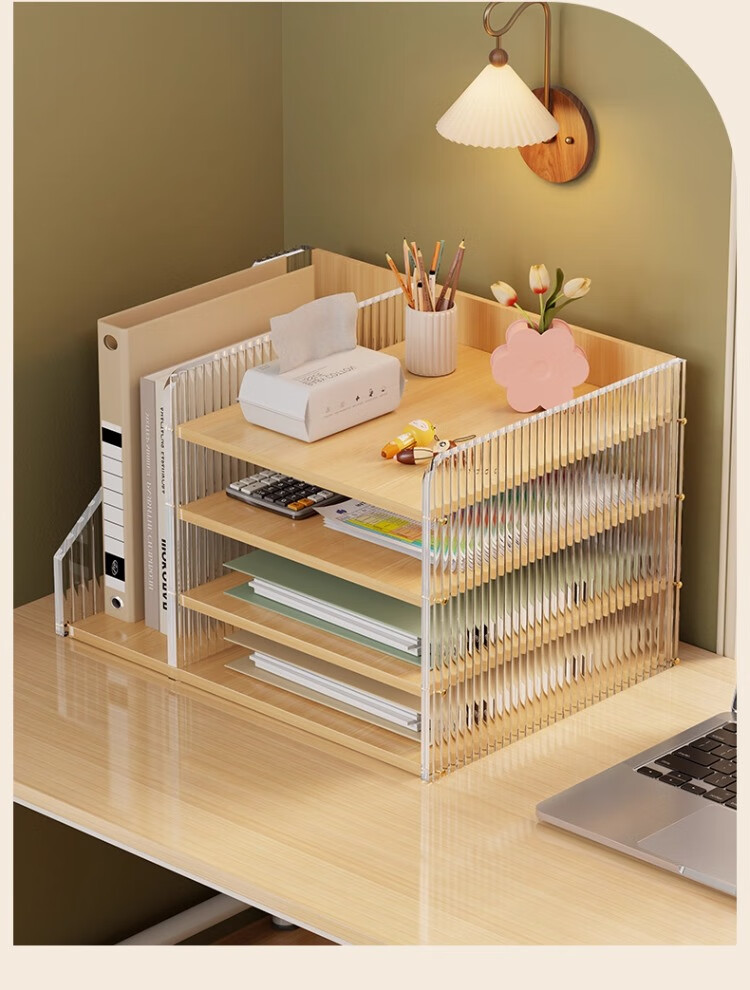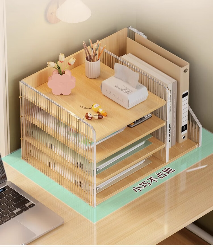 尔思家桌面置物架亚克力储物架立式多层办公桌收纳架工位桌面改造神器 木纹-波纹款