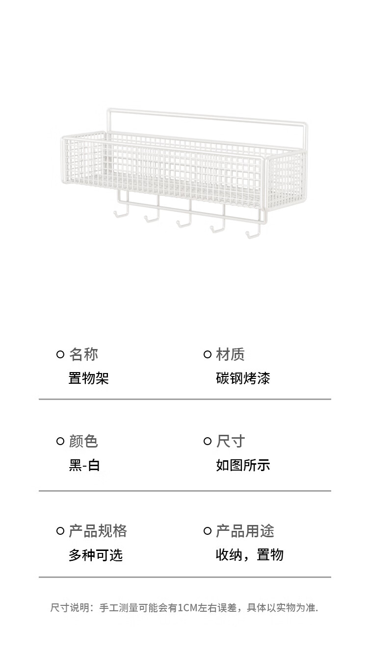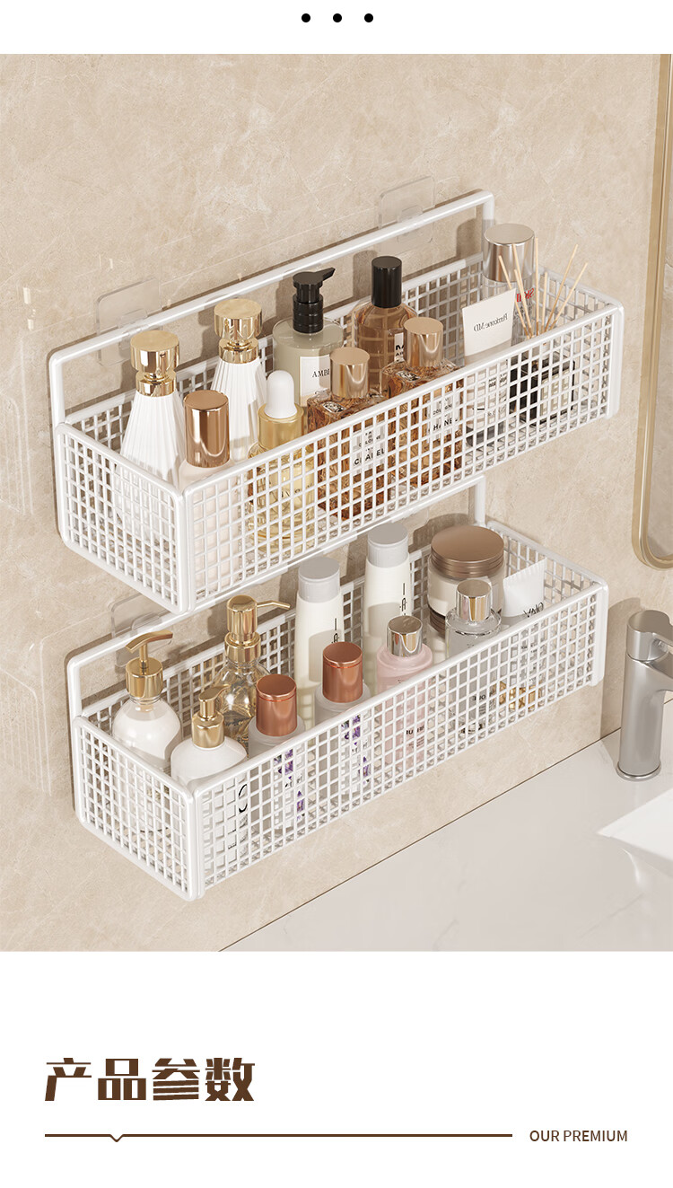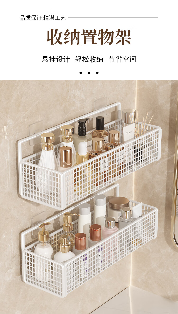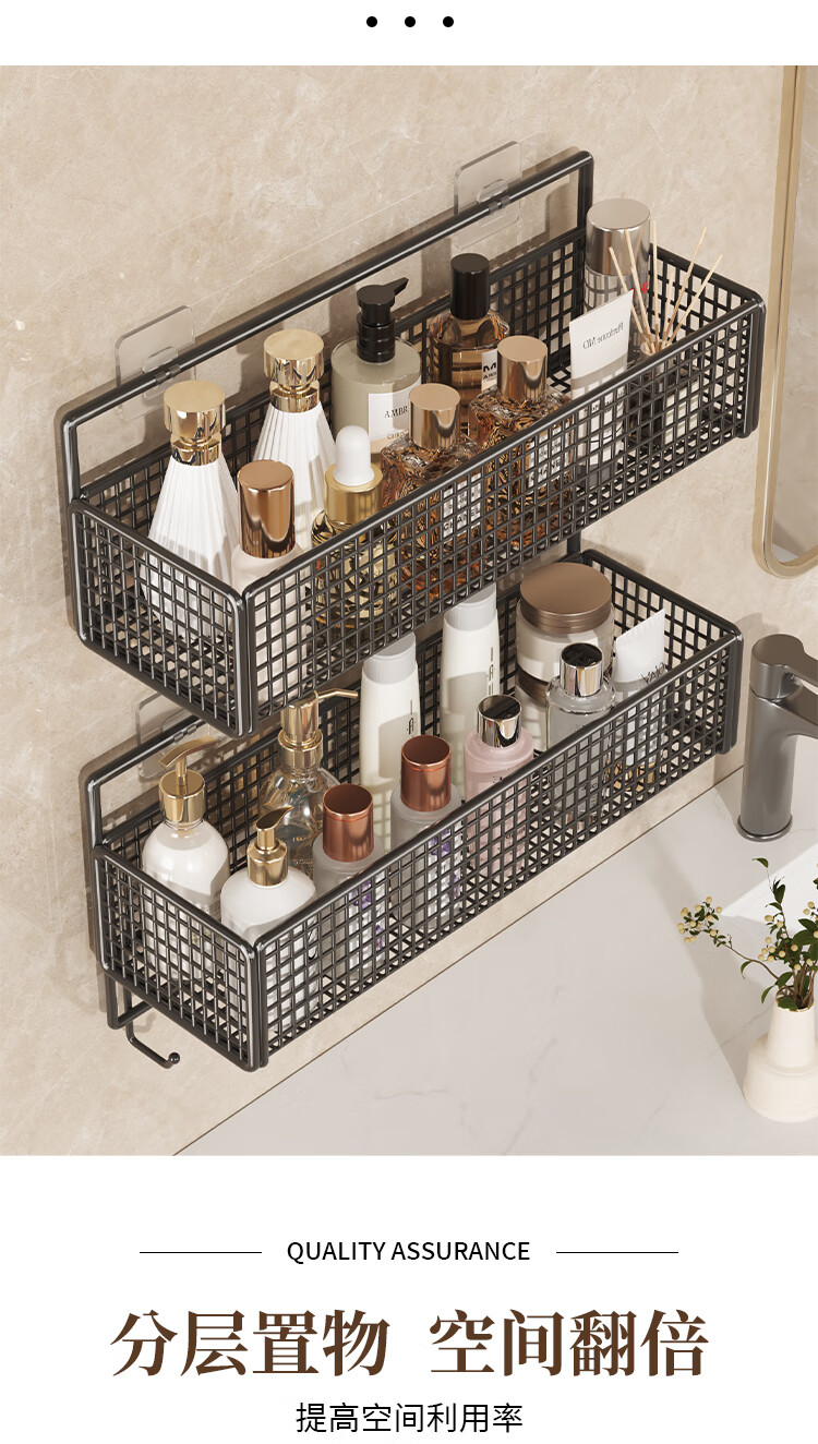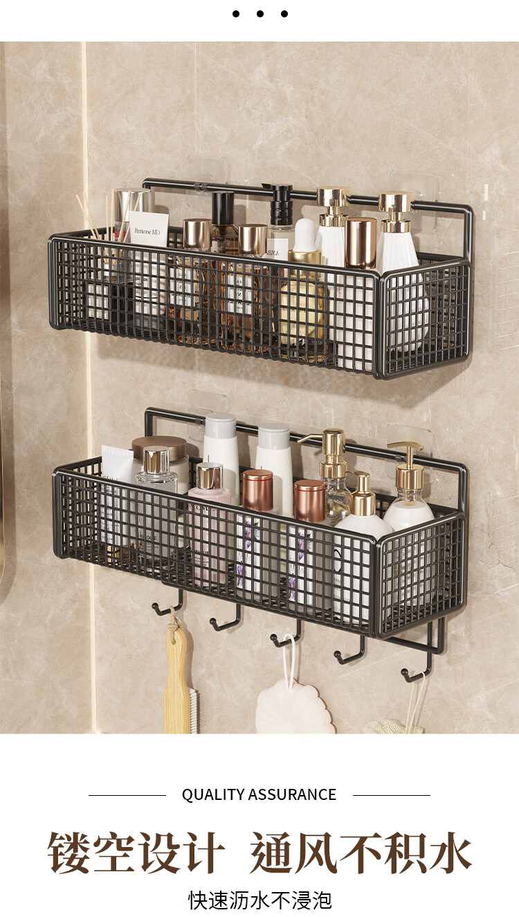 馨婺家卫生间置物架浴室厕所壁挂收纳架子阳台洗手间挂墙架洗漱台免打孔 黑色-中号【加粗网格】
