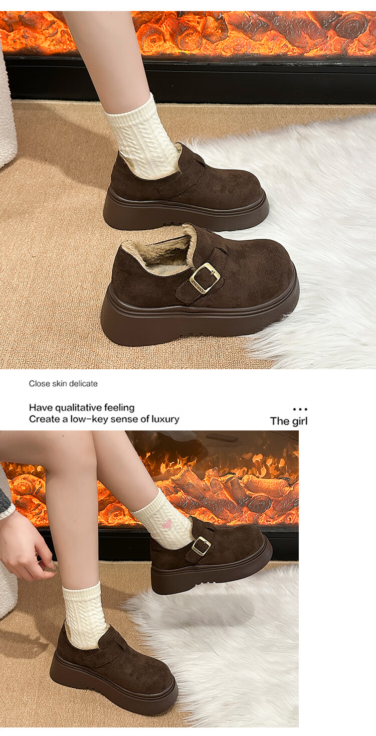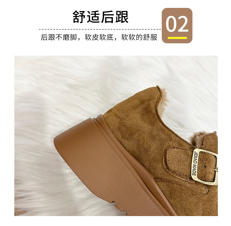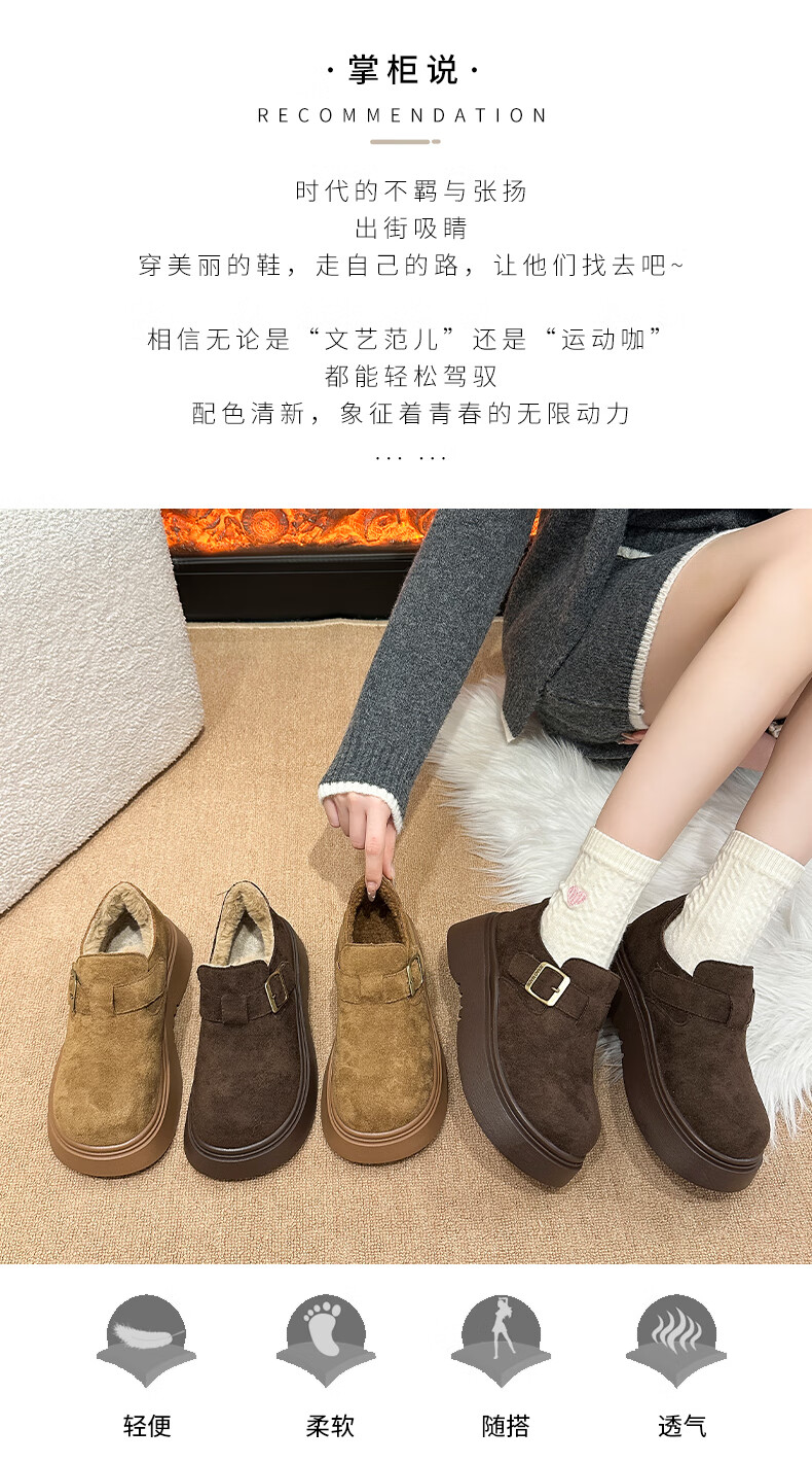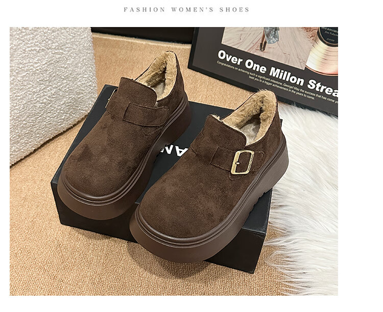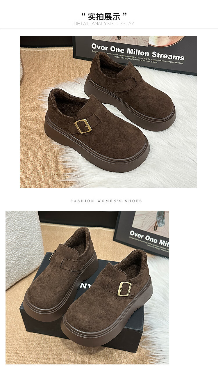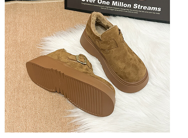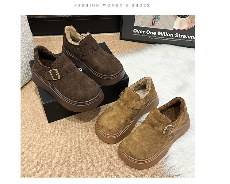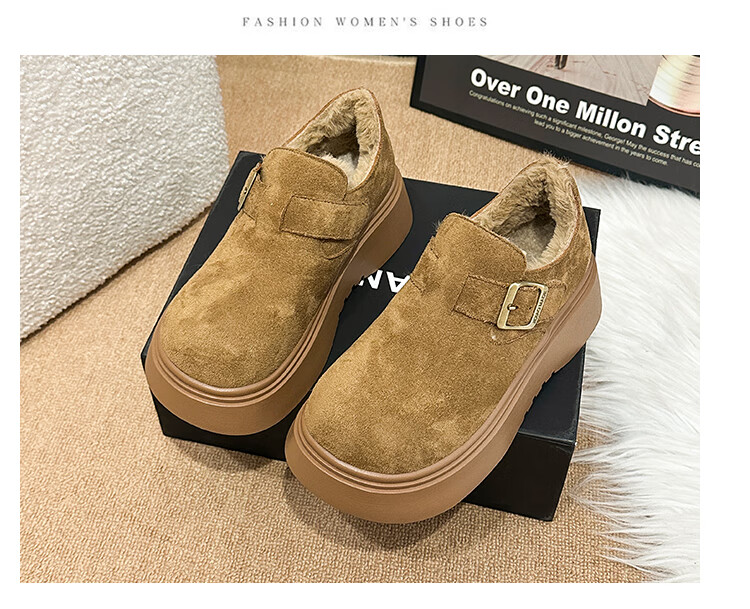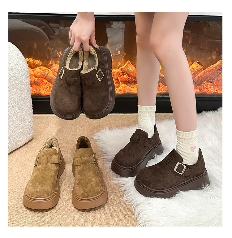 稻草人(MEXICAN)厚底增高全包勃肯鞋女加绒真皮2026新款一脚蹬雪地靴休闲博肯棉鞋 棕色【升级版】二棉底厚5CM 35