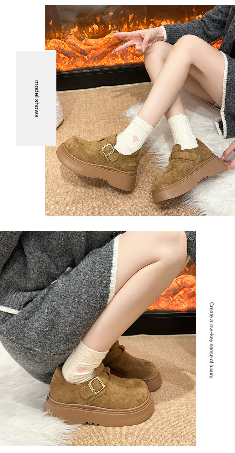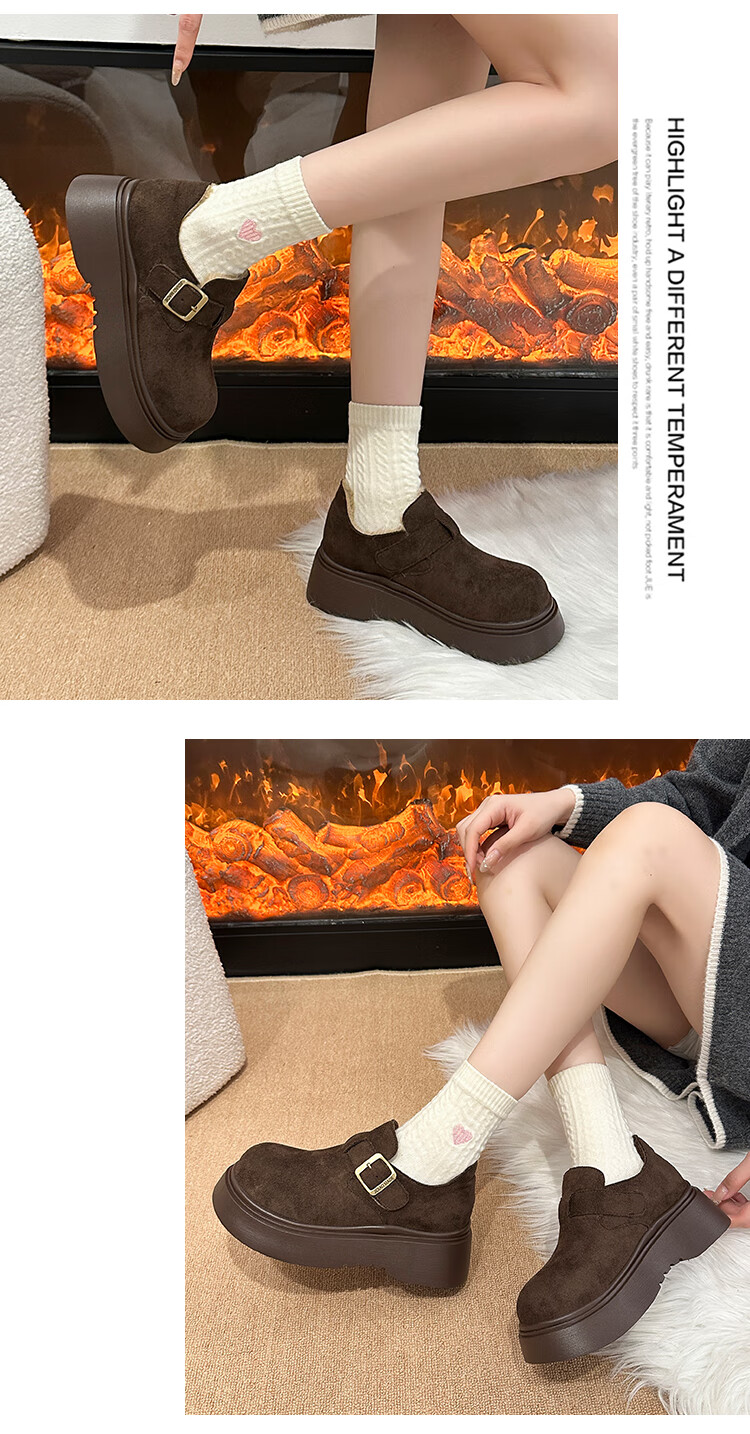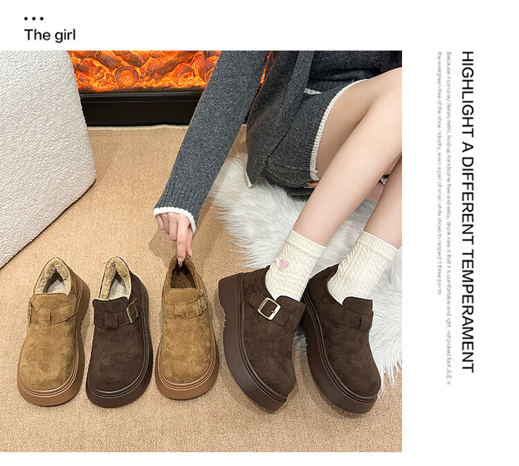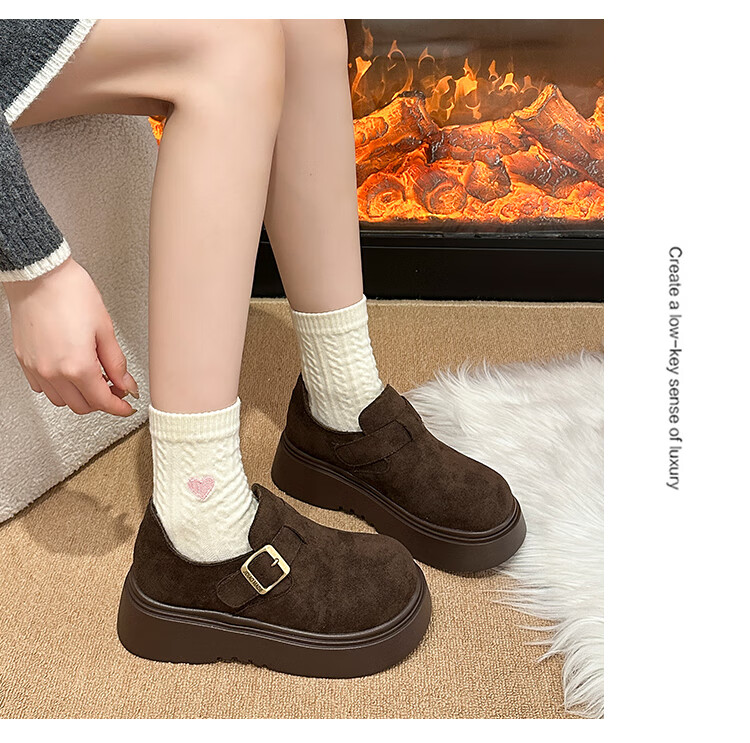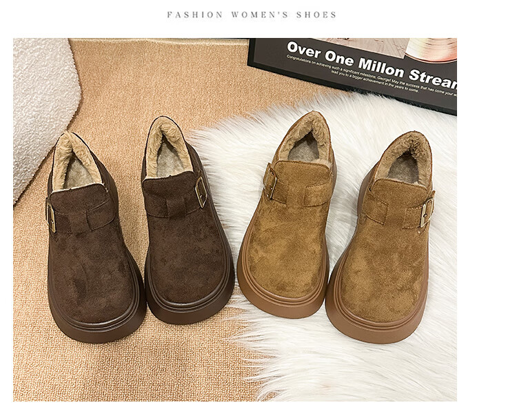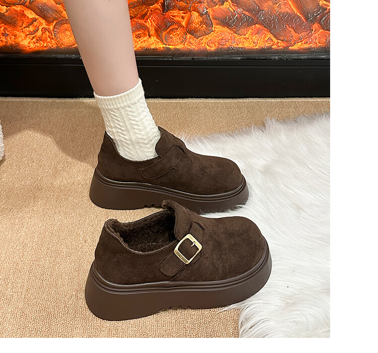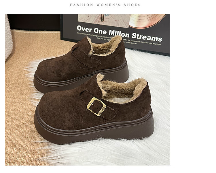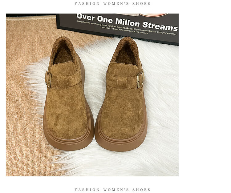 稻草人(MEXICAN)厚底增高全包勃肯鞋女加绒真皮2026新款一脚蹬雪地靴休闲博肯棉鞋 棕色【升级版】二棉底厚5CM 35