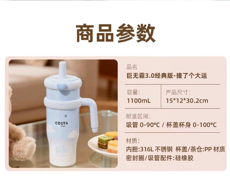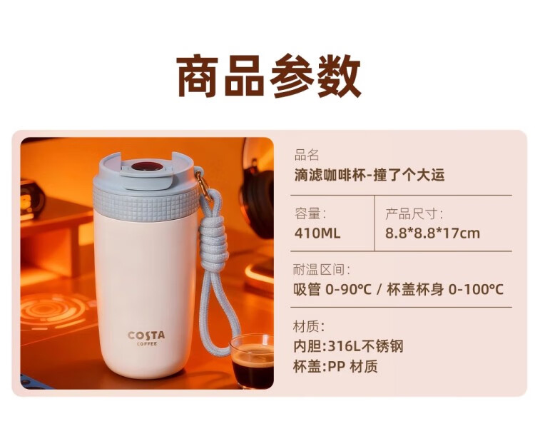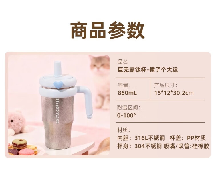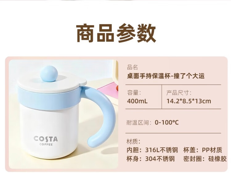 COSTA 2026新品【撞了个大运】大容量保温杯316L不锈钢水杯车载便携
