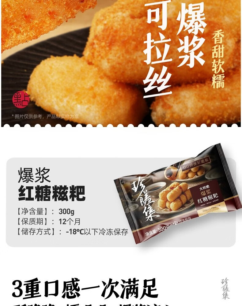 大希地爆浆红糖糍粑纯糯米年糕油炸点心食材半成品冷冻食品 红糖糍粑300g*3袋