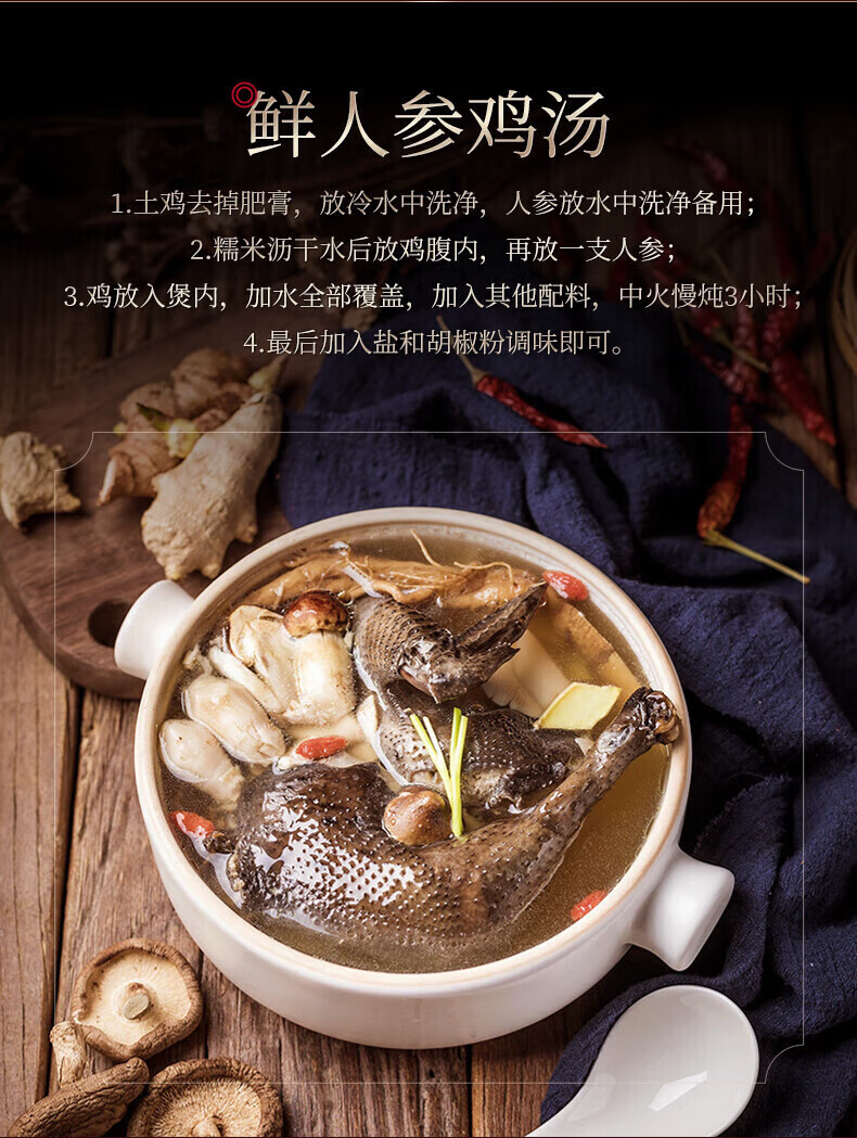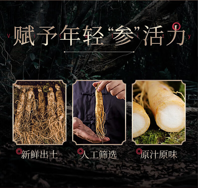 长白山人参酒浸保鲜人参单支18克3支装,约5年鲜人参泡酒材料泡酒煲汤保鲜参
