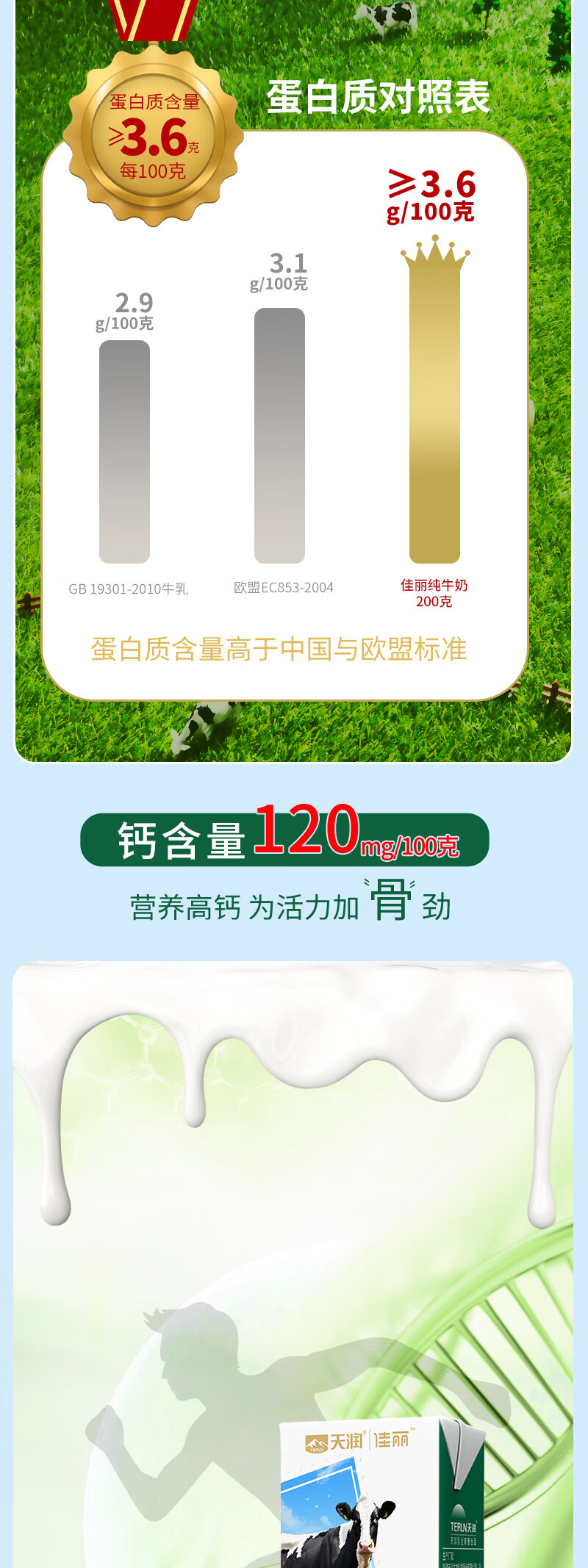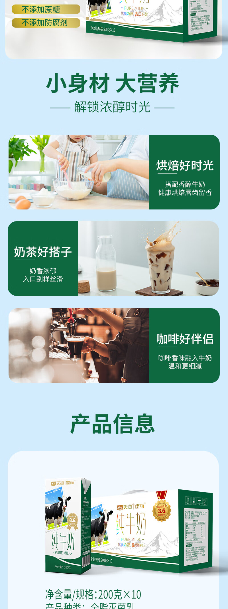 佳丽全脂纯牛奶整箱装3.6g乳蛋白200g*10盒 天润出品 定期购