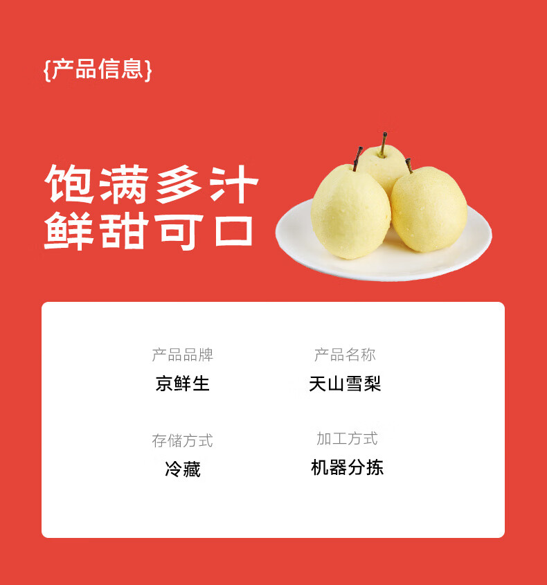 京鲜生 天山雪梨 净重10斤装 单果200g起 精选雪梨 新鲜水果