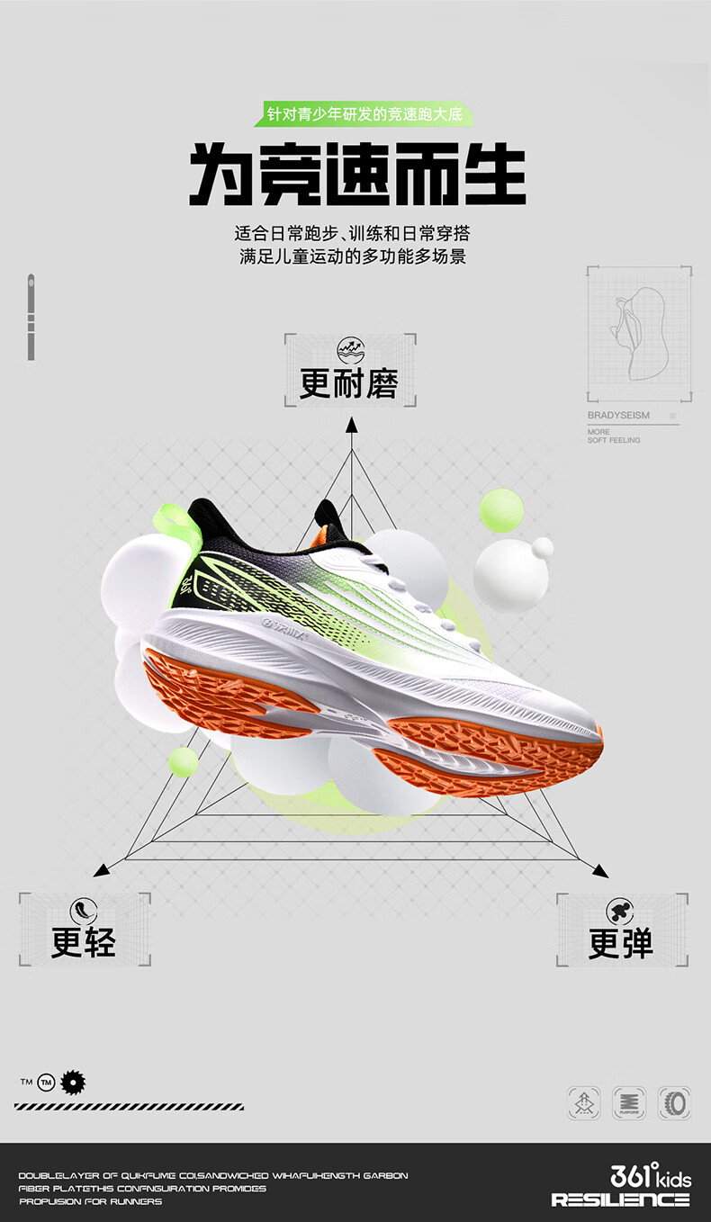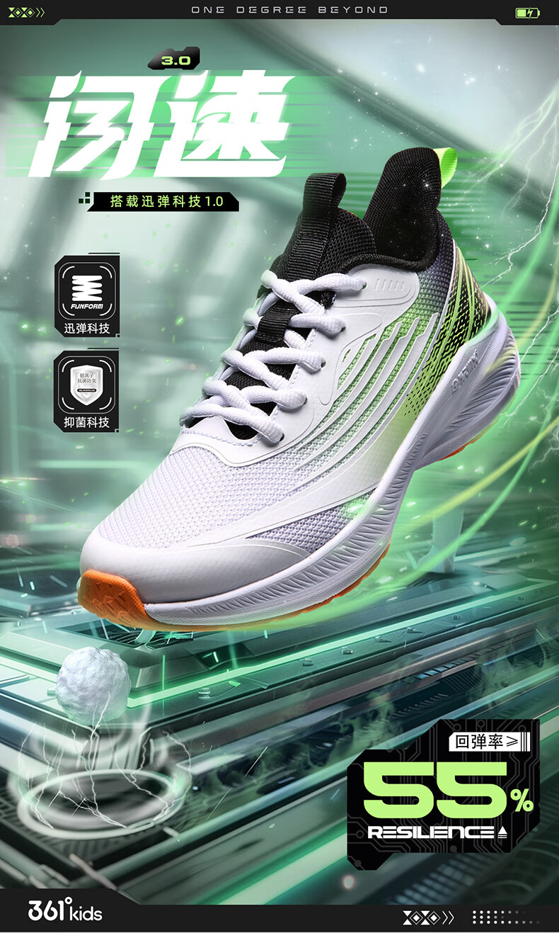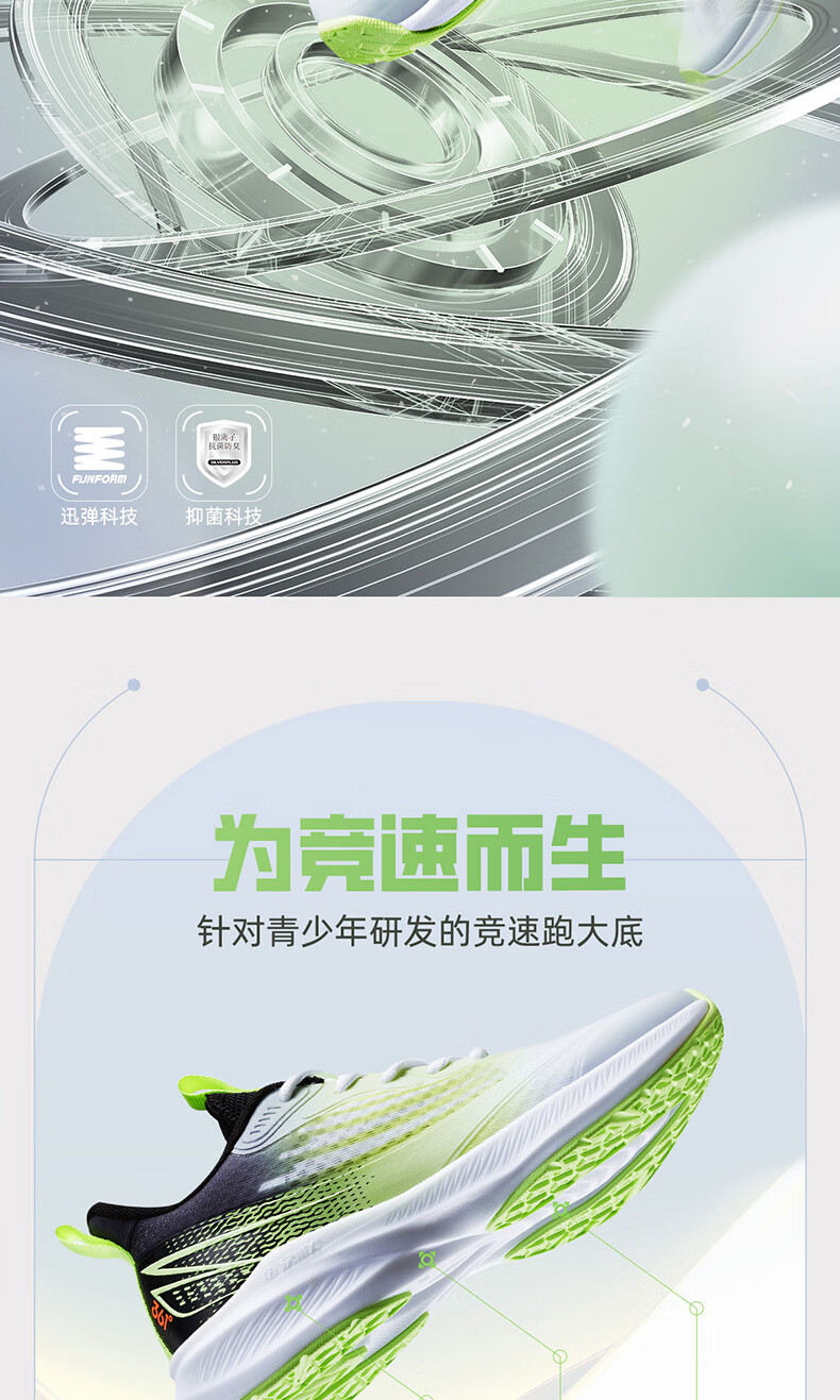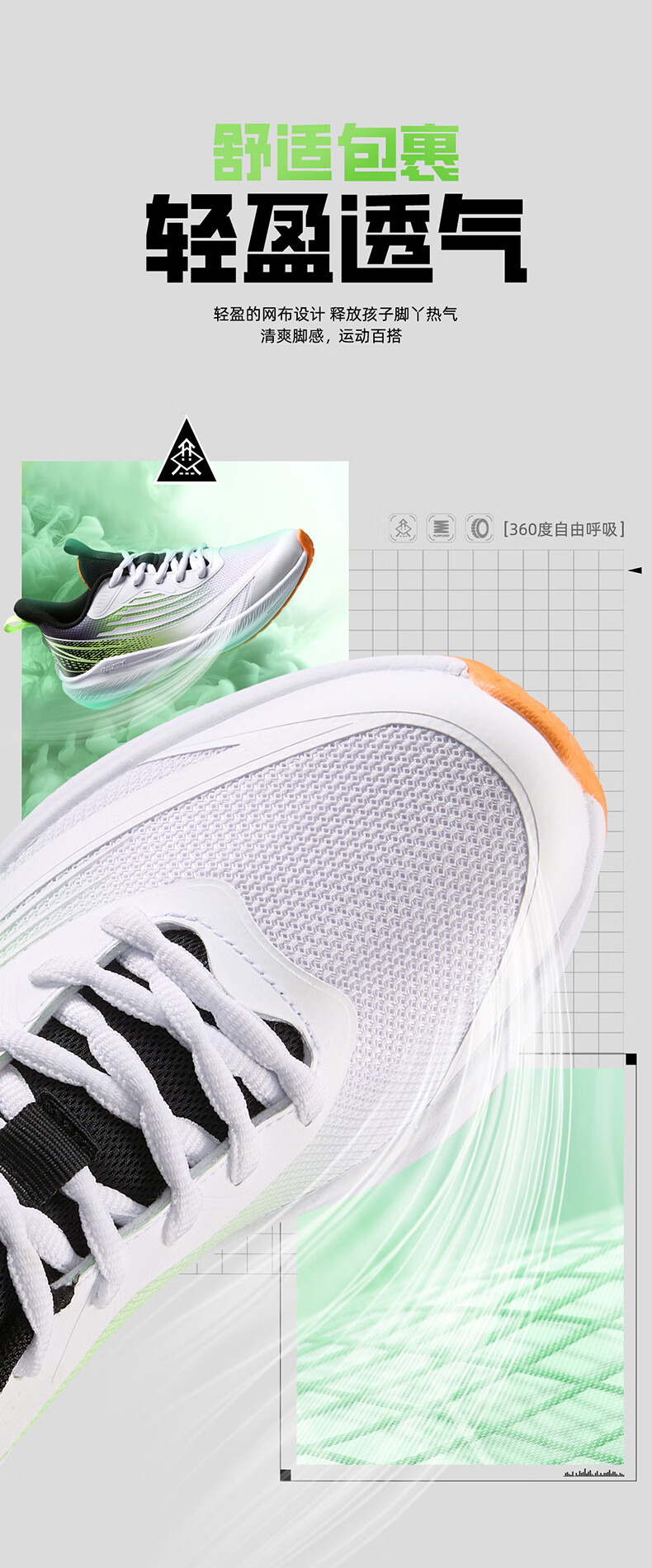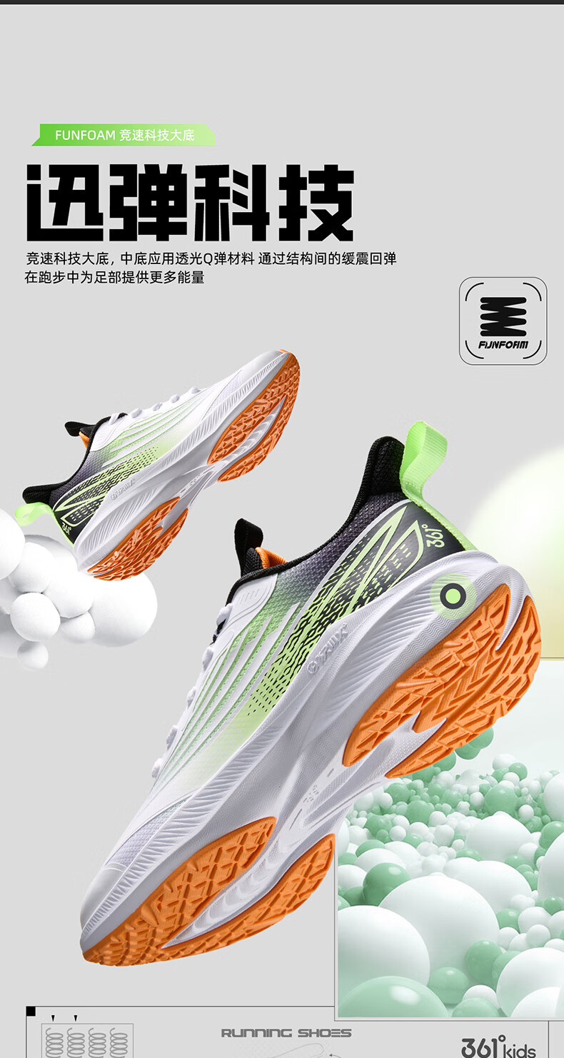 361°闪速3.0儿童竞速跑鞋25四季青少年抑菌迅弹运动体考鞋 白41