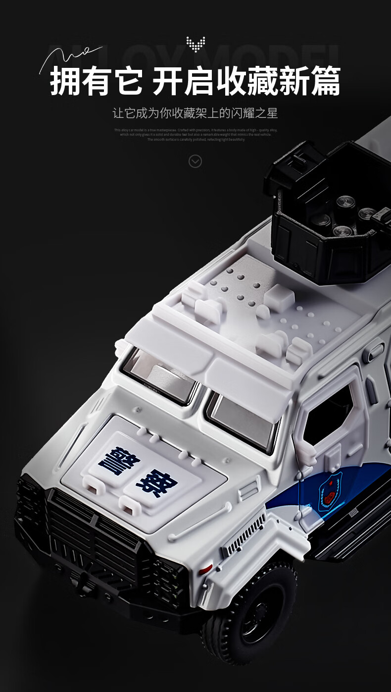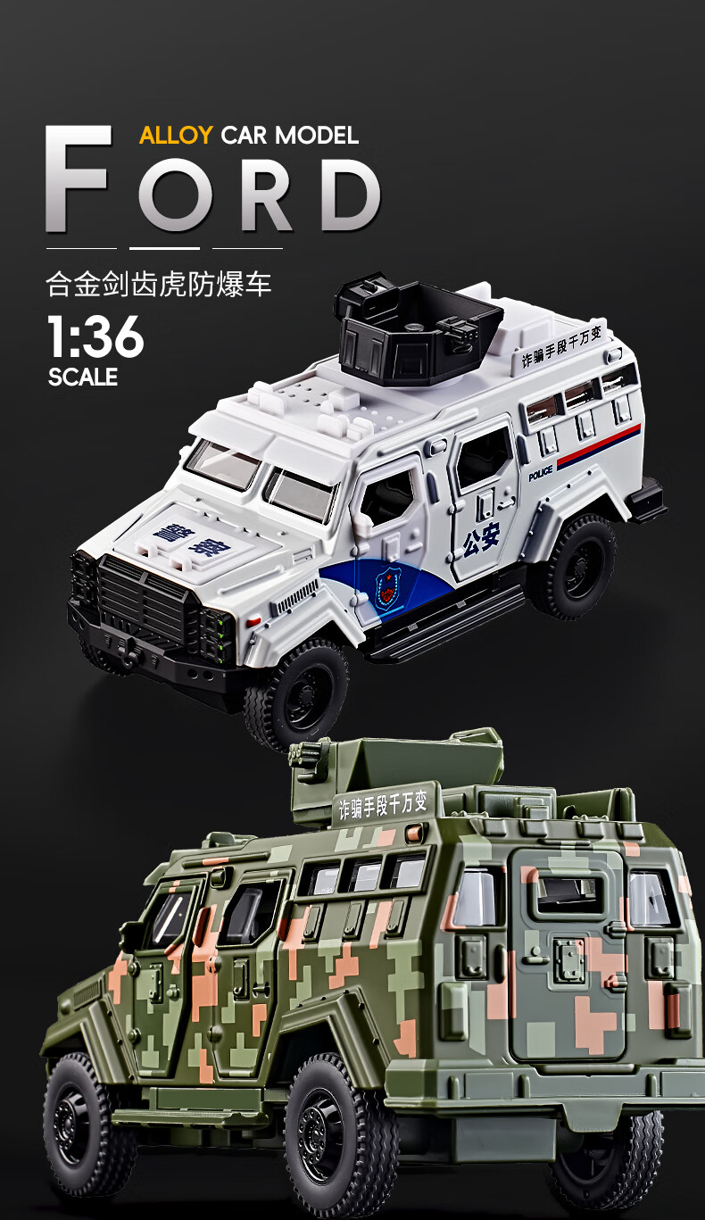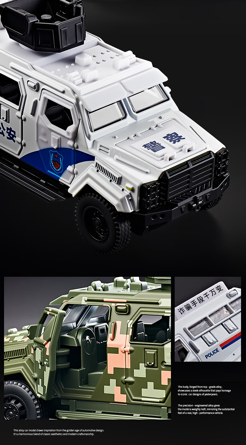 中精质造大号剑齿虎装甲车模型合金警车防爆特警车110儿童小汽车玩具男孩 剑齿虎特警防爆车/超大号 四开门+回力功能+礼盒