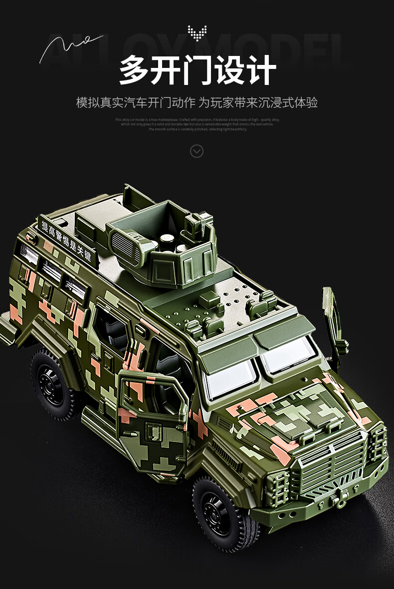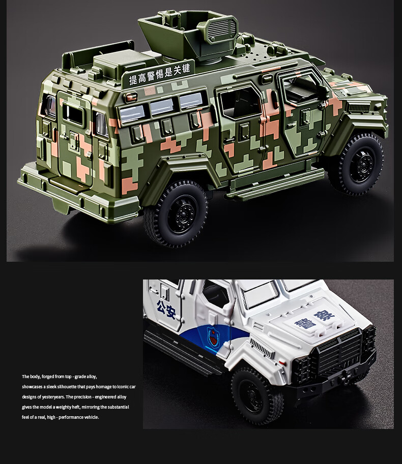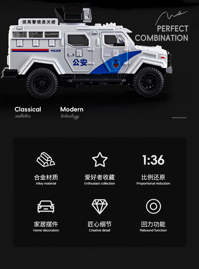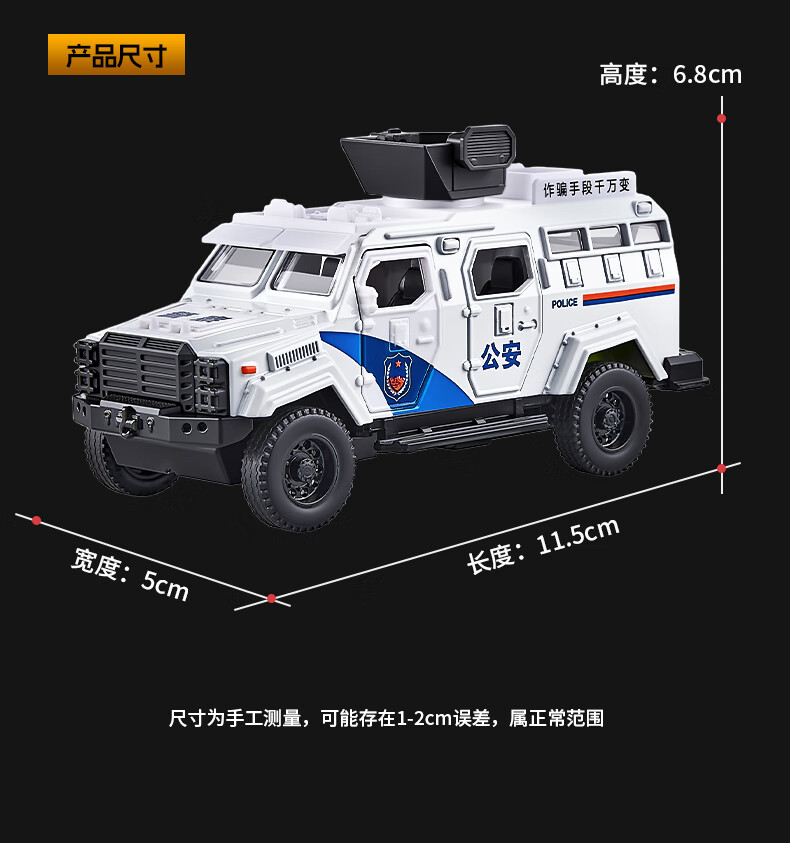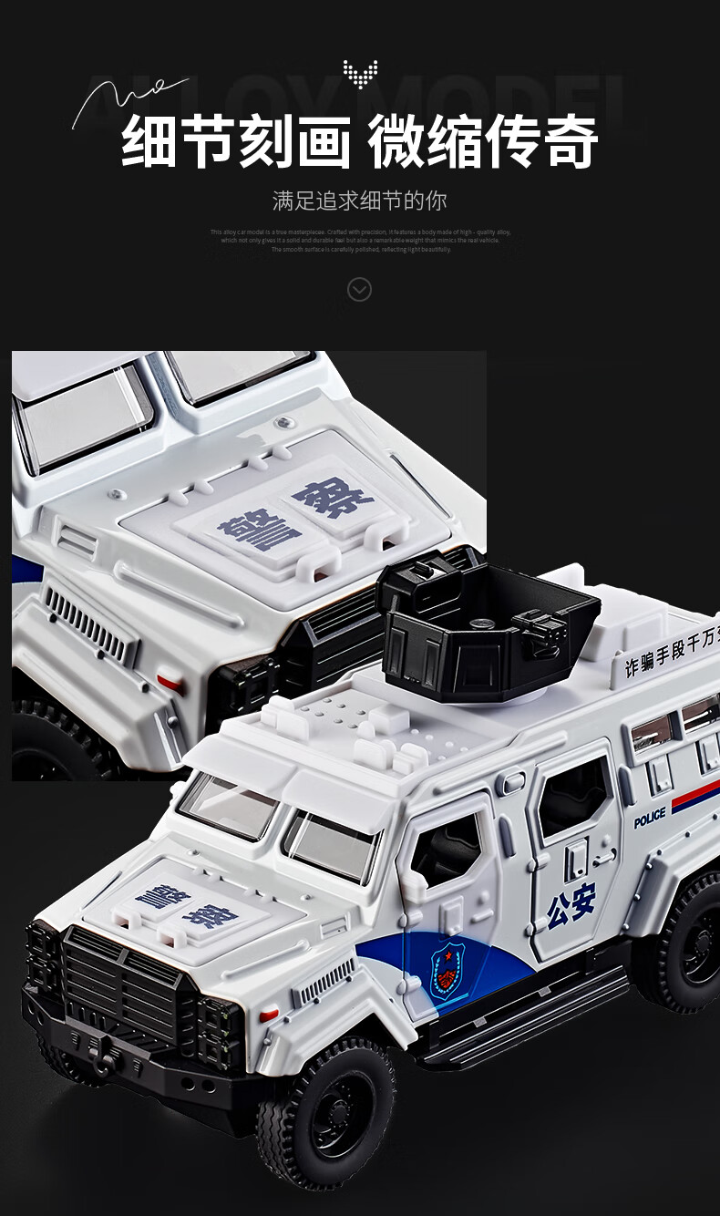 中精质造大号剑齿虎装甲车模型合金警车防爆特警车110儿童小汽车玩具男孩 剑齿虎特警防爆车/超大号 四开门+回力功能+礼盒