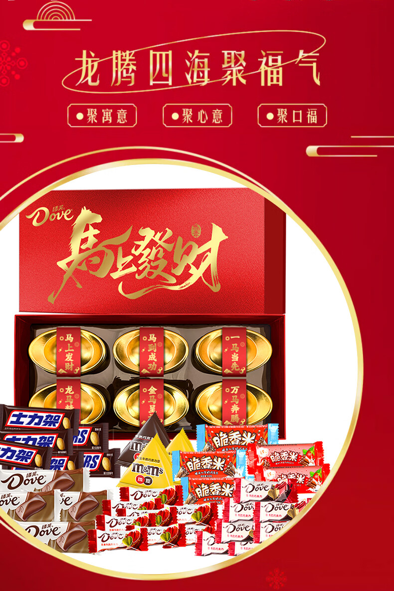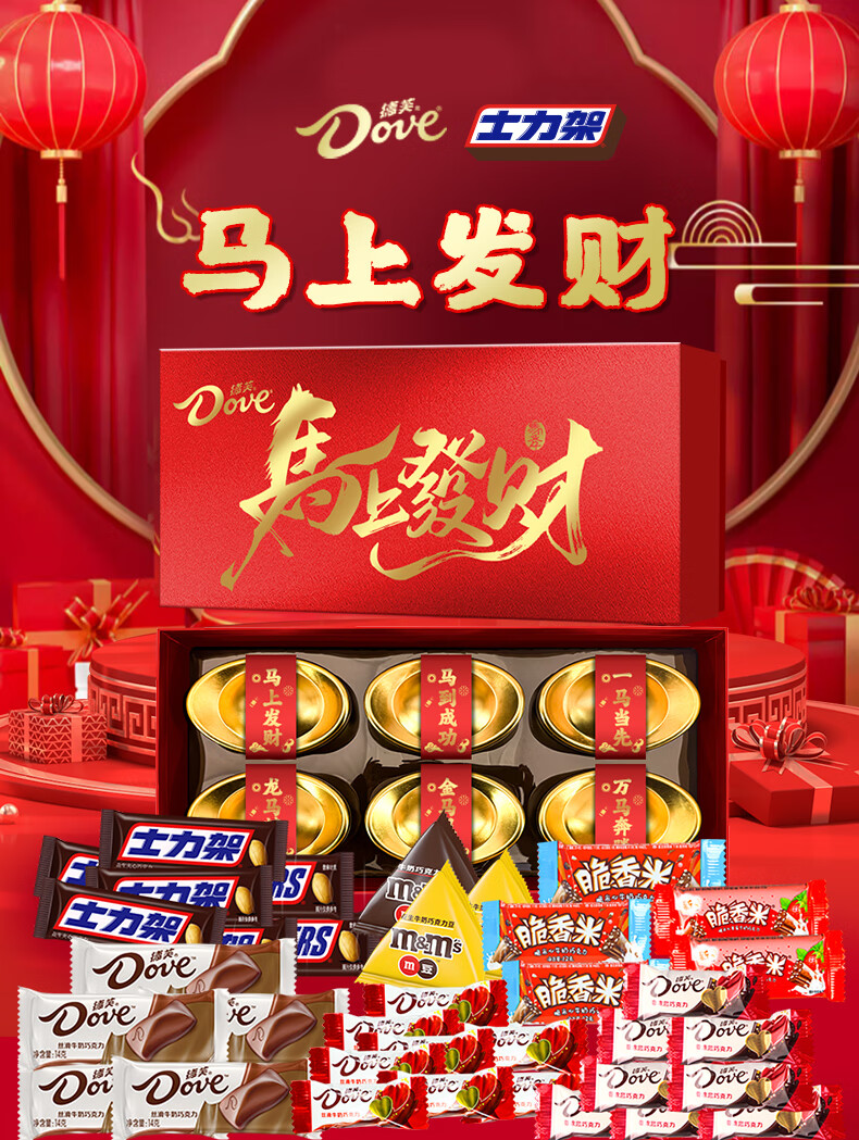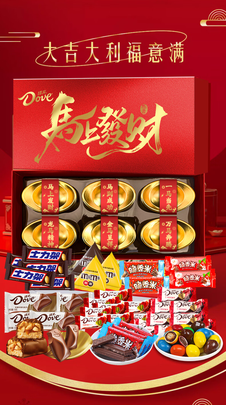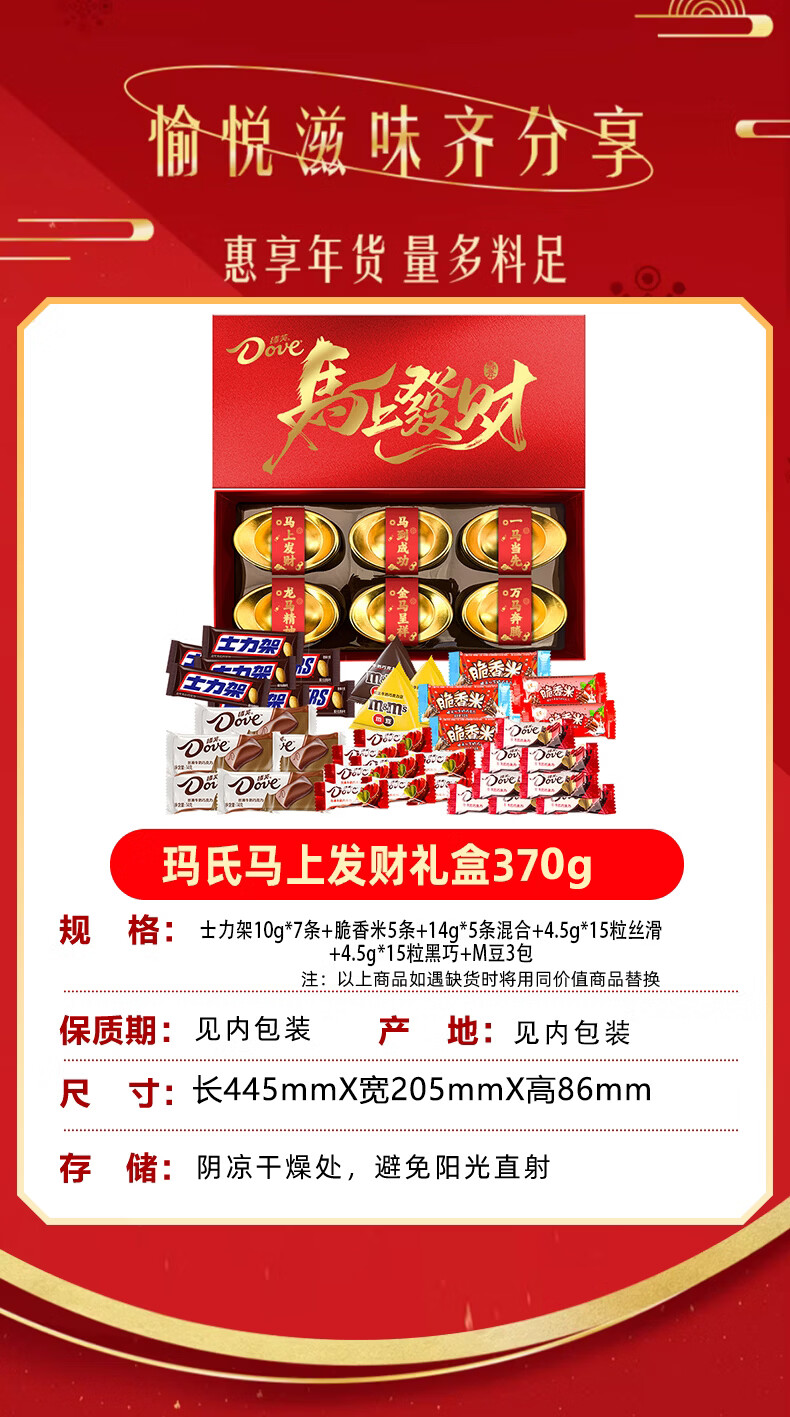 德芙【新年礼盒】玛氏马上发财金元宝礼盒370g士力架年货送家人亲戚C 玛氏德芙马上有钱礼盒370g*1