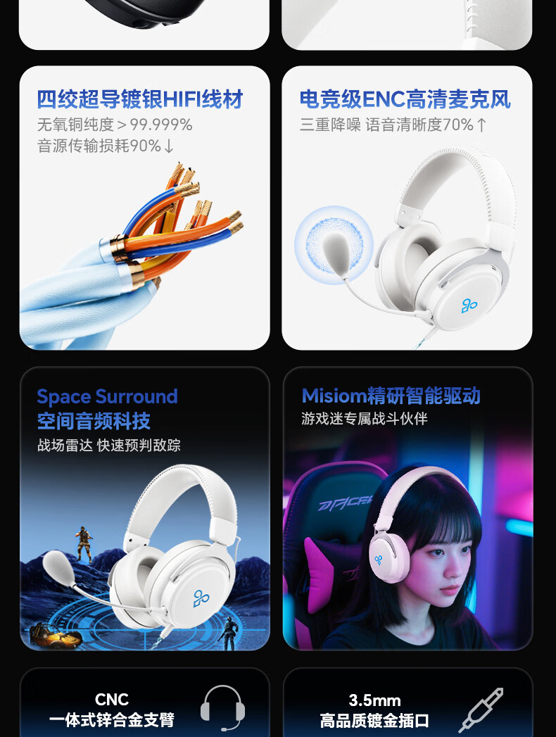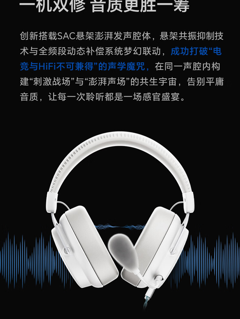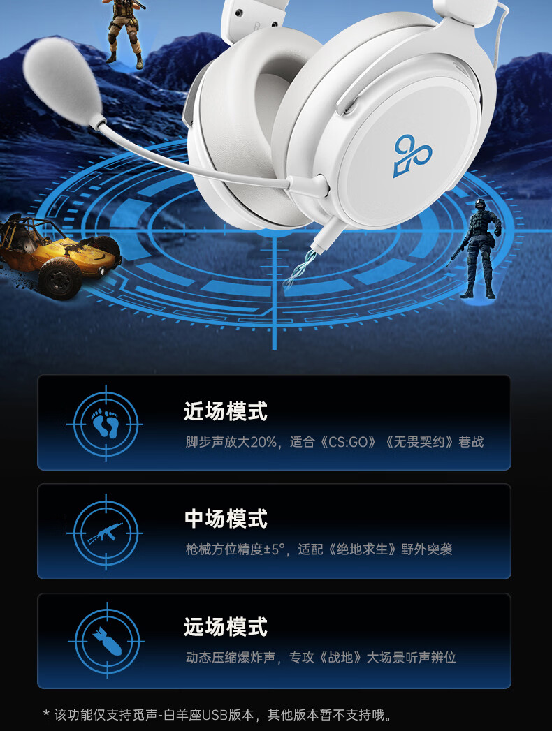觅声白羊座游戏耳机头戴式HiFi有线三角洲行动吃鸡专业听声辨位fps电脑电竞专用虚拟7.1声道降噪耳麦 USB接口雪域白-赠耳机支架-集成星云声卡芯片