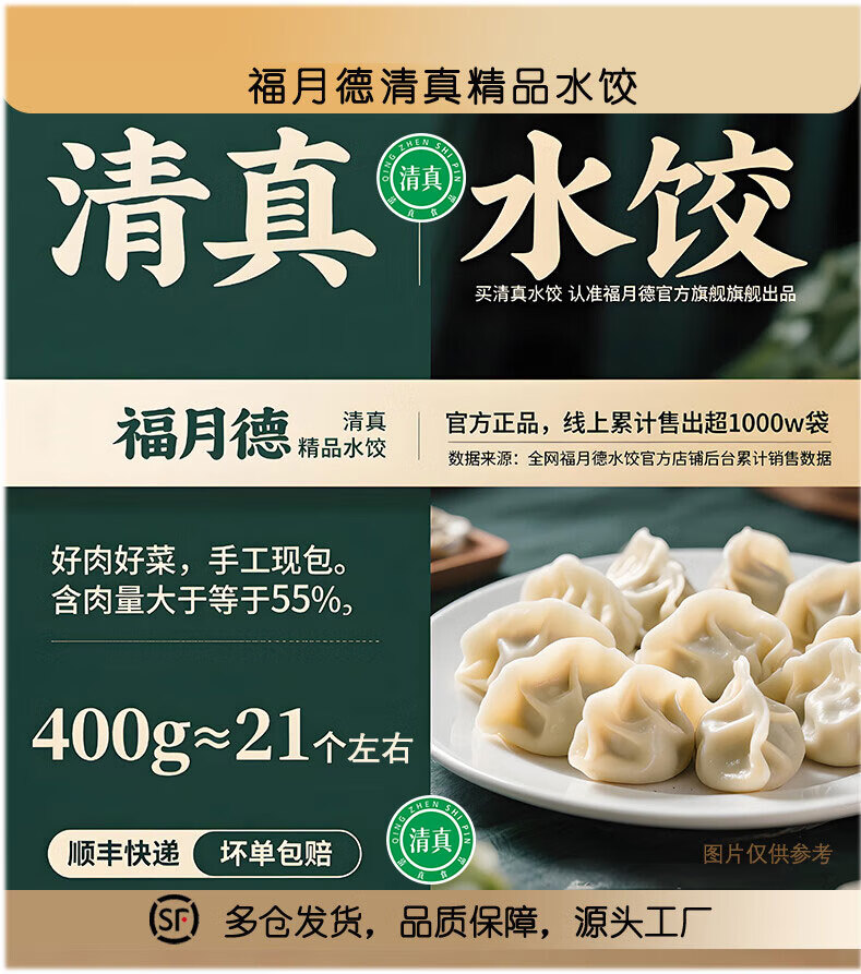 福月德【顺丰到家】 清真手工牛肉羊肉大水饺每袋400g鲜嫩可口皮薄馅大 六种口味尝鲜装