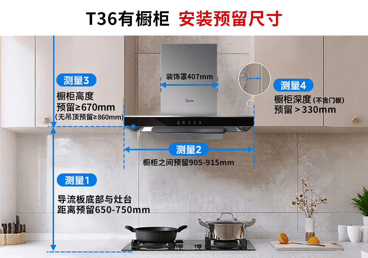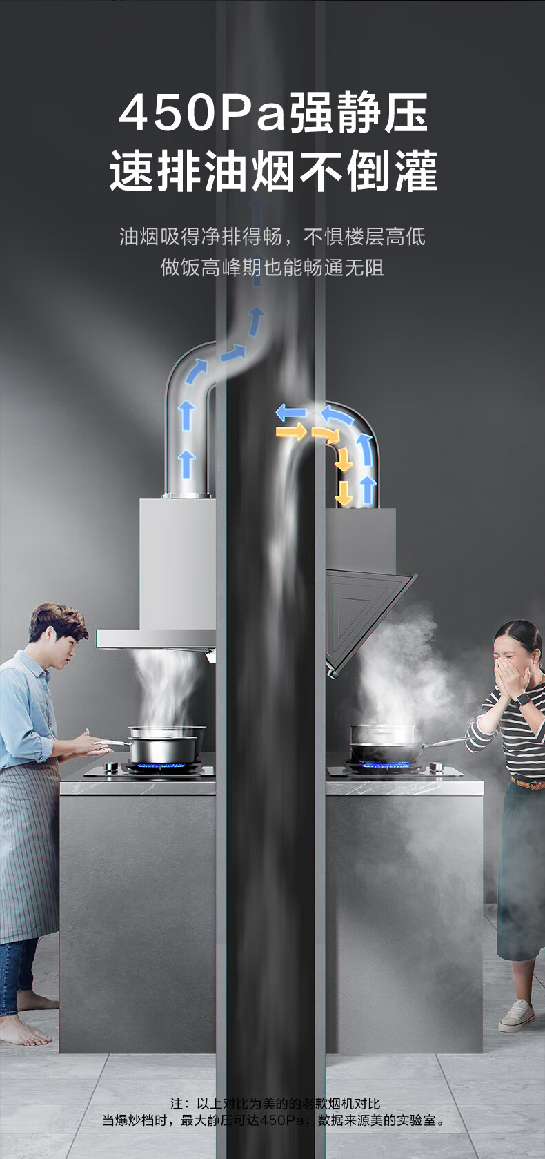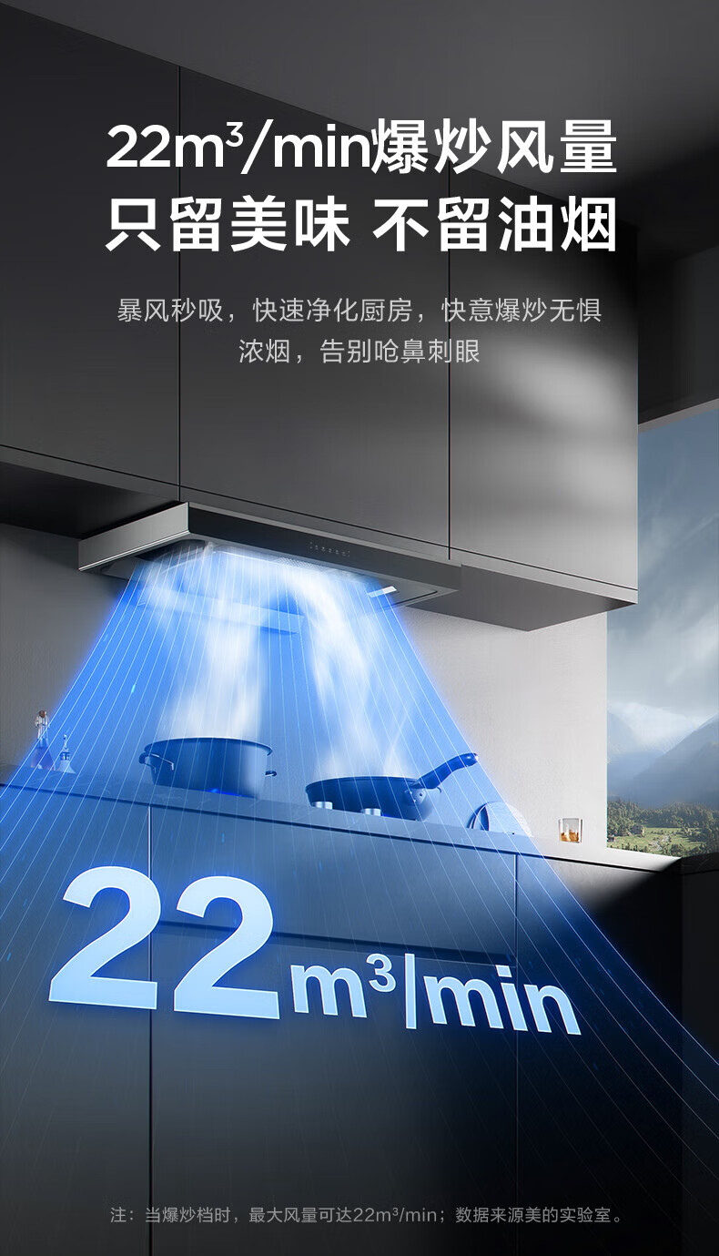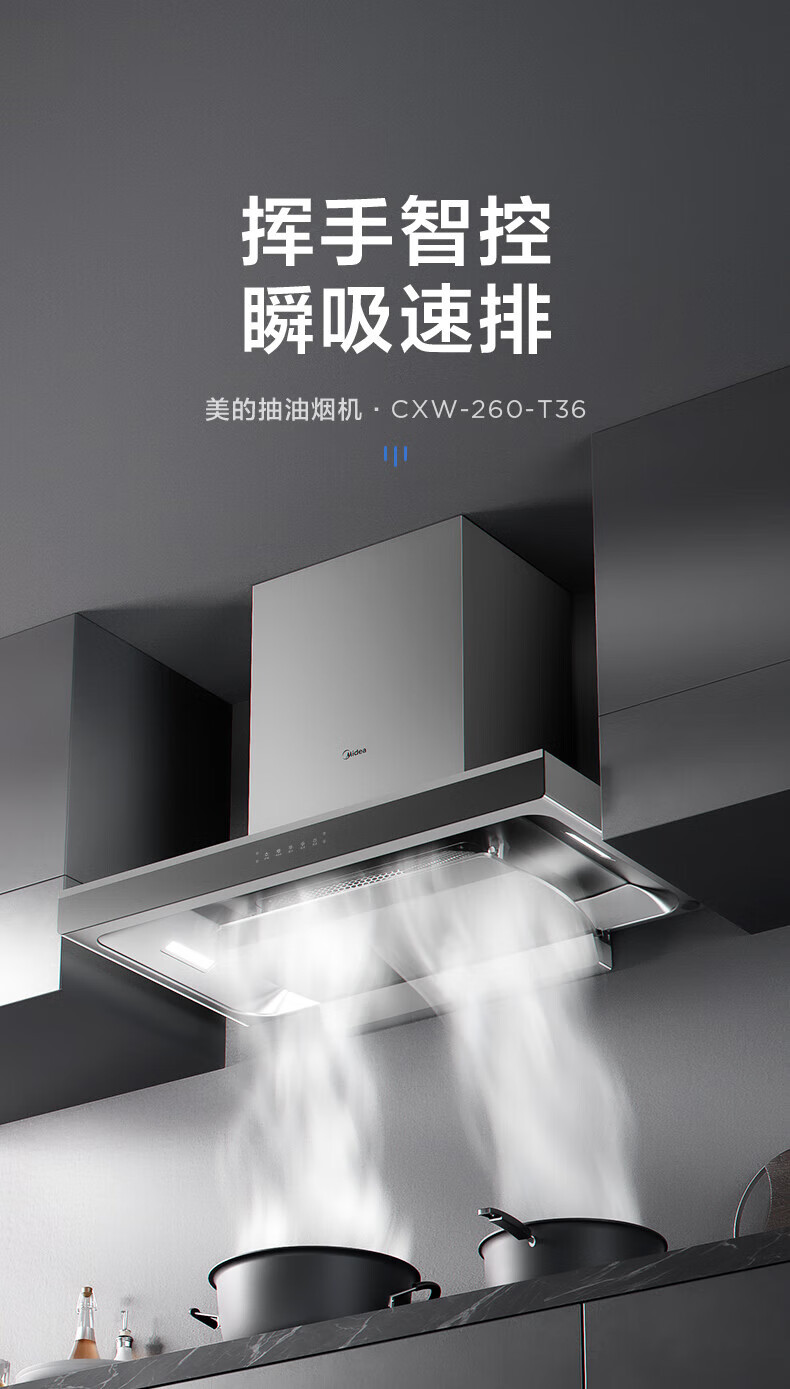 美的(Midea)抽吸排油烟机家用顶吸欧式吸油烟机22立方大吸力油烟机 挥手智控 抽烟机T36可配燃气灶