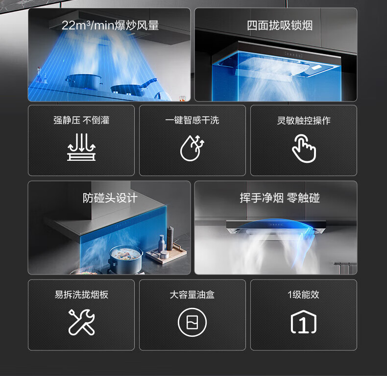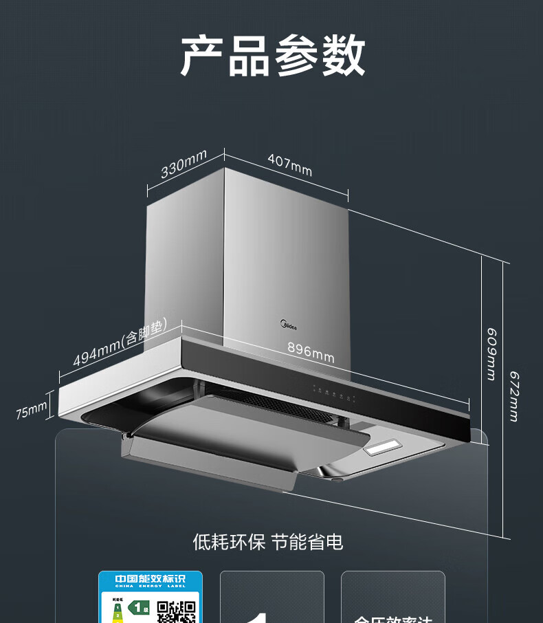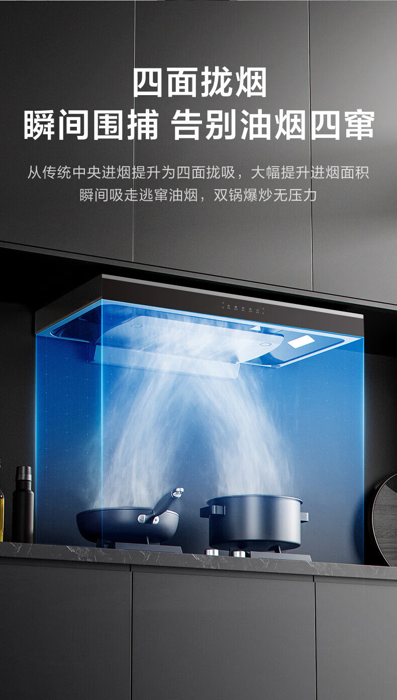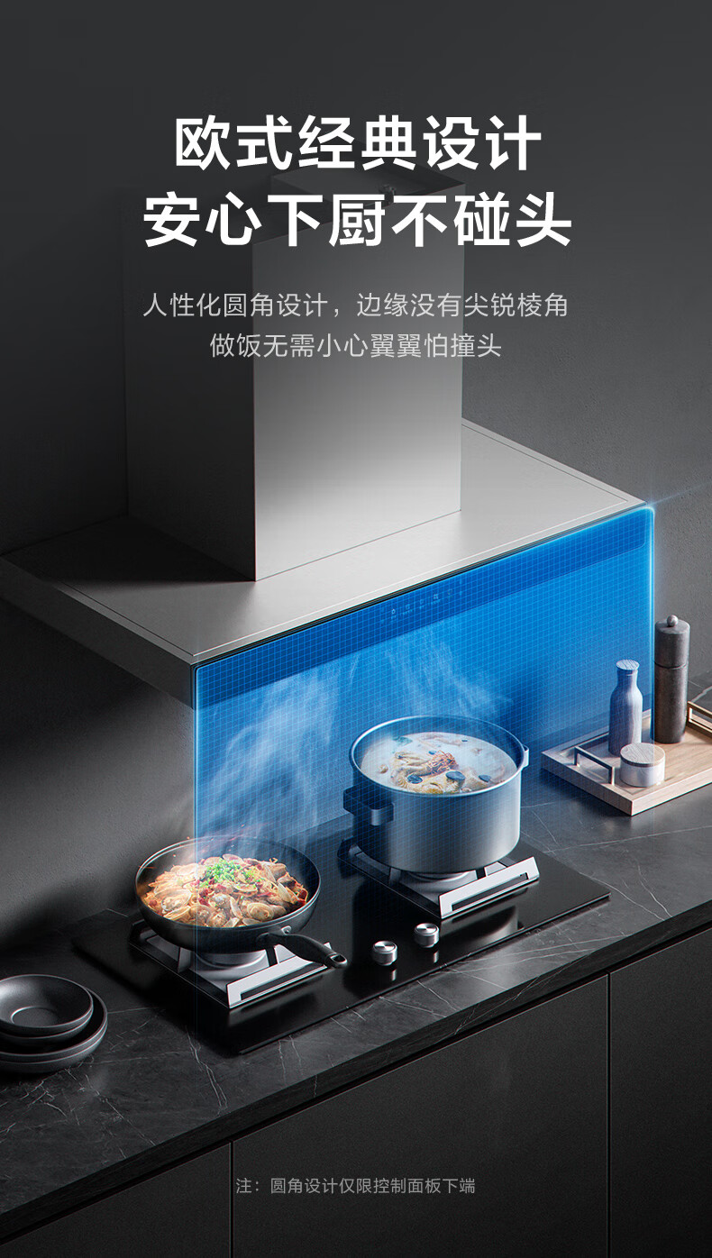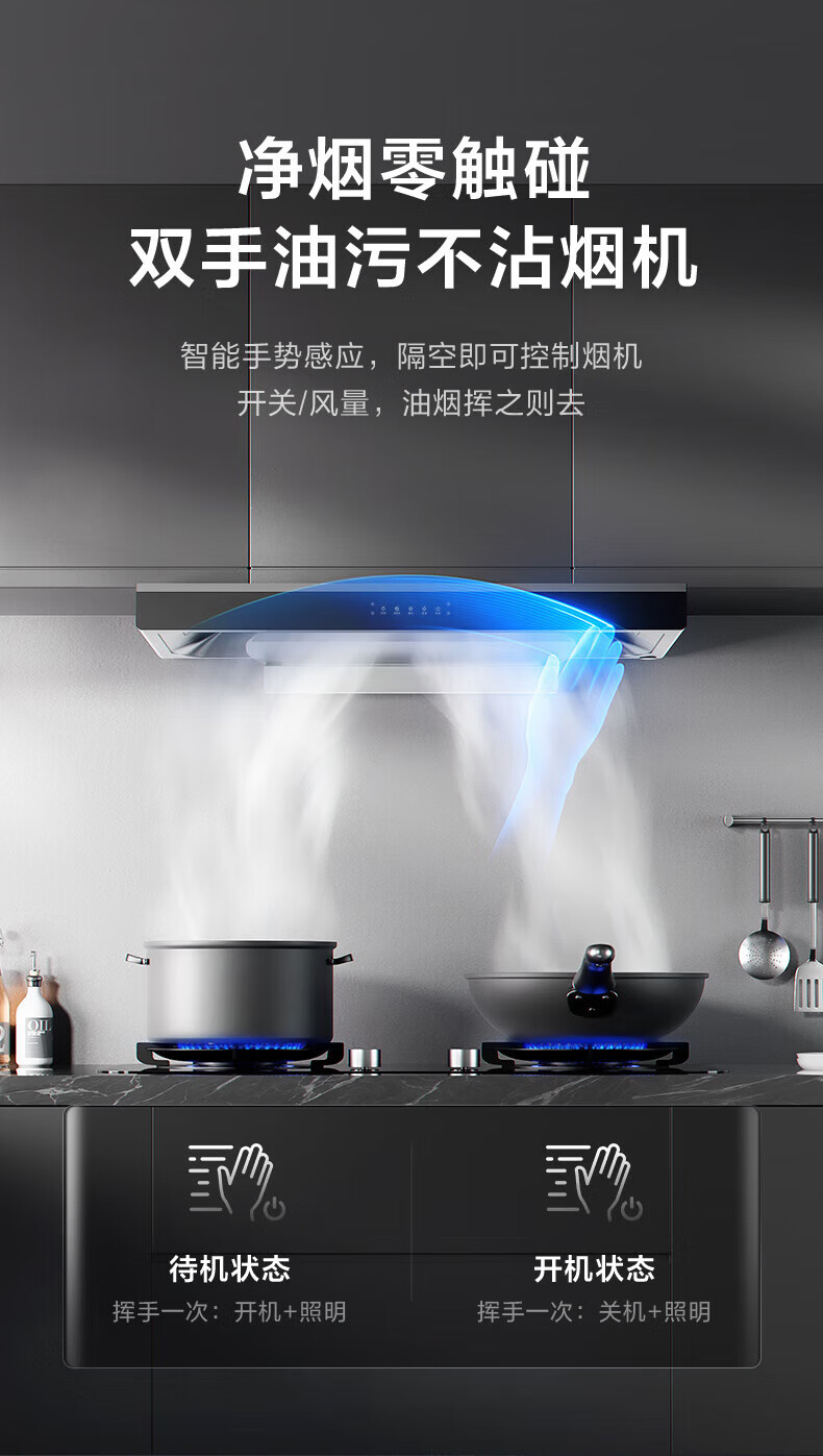 美的(Midea)抽吸排油烟机家用顶吸欧式吸油烟机22立方大吸力油烟机 挥手智控 抽烟机T36可配燃气灶